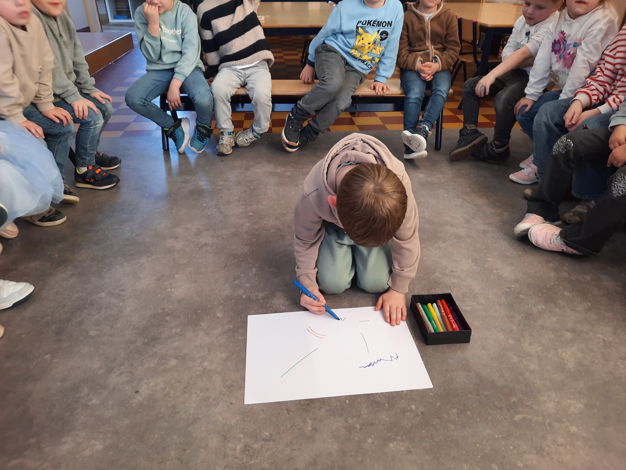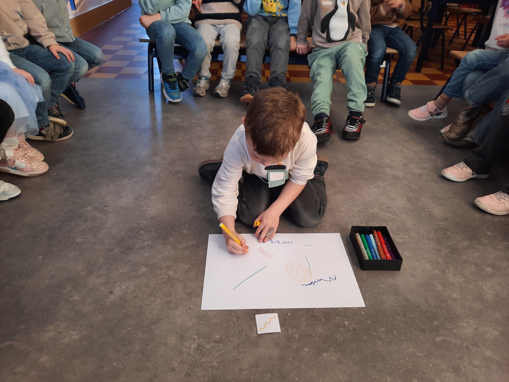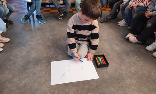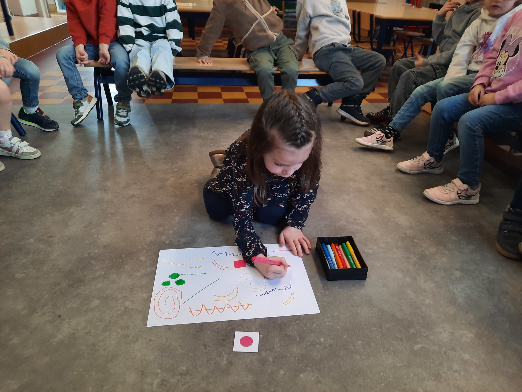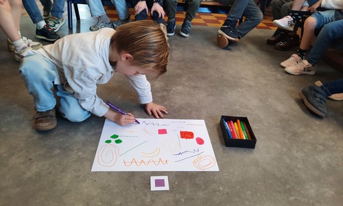 2KC: Groepswerk: tekenen in de stijl van Kandinsky (Teken wat op het kaartje staat)