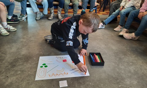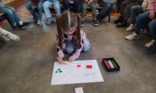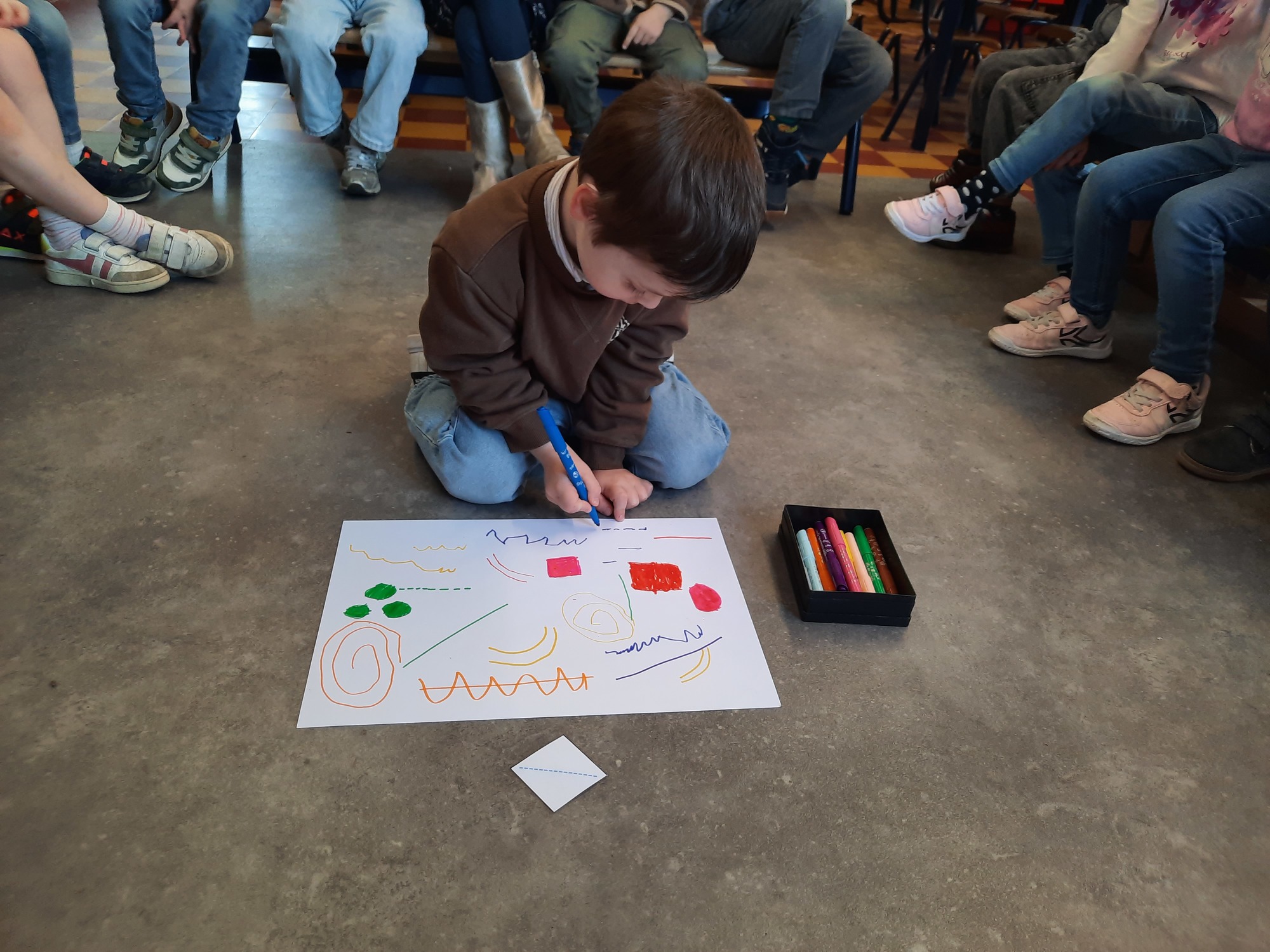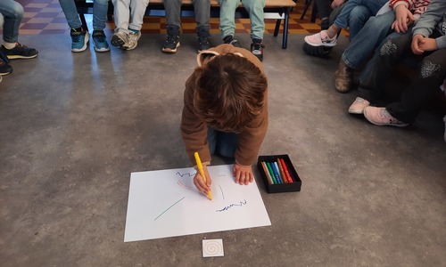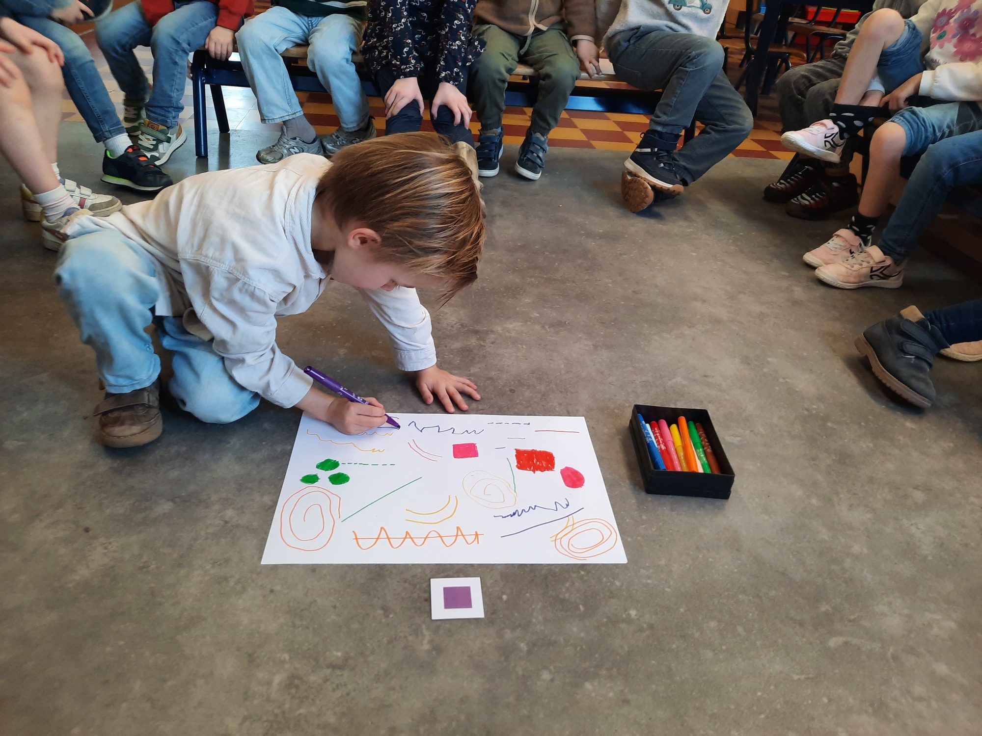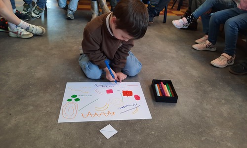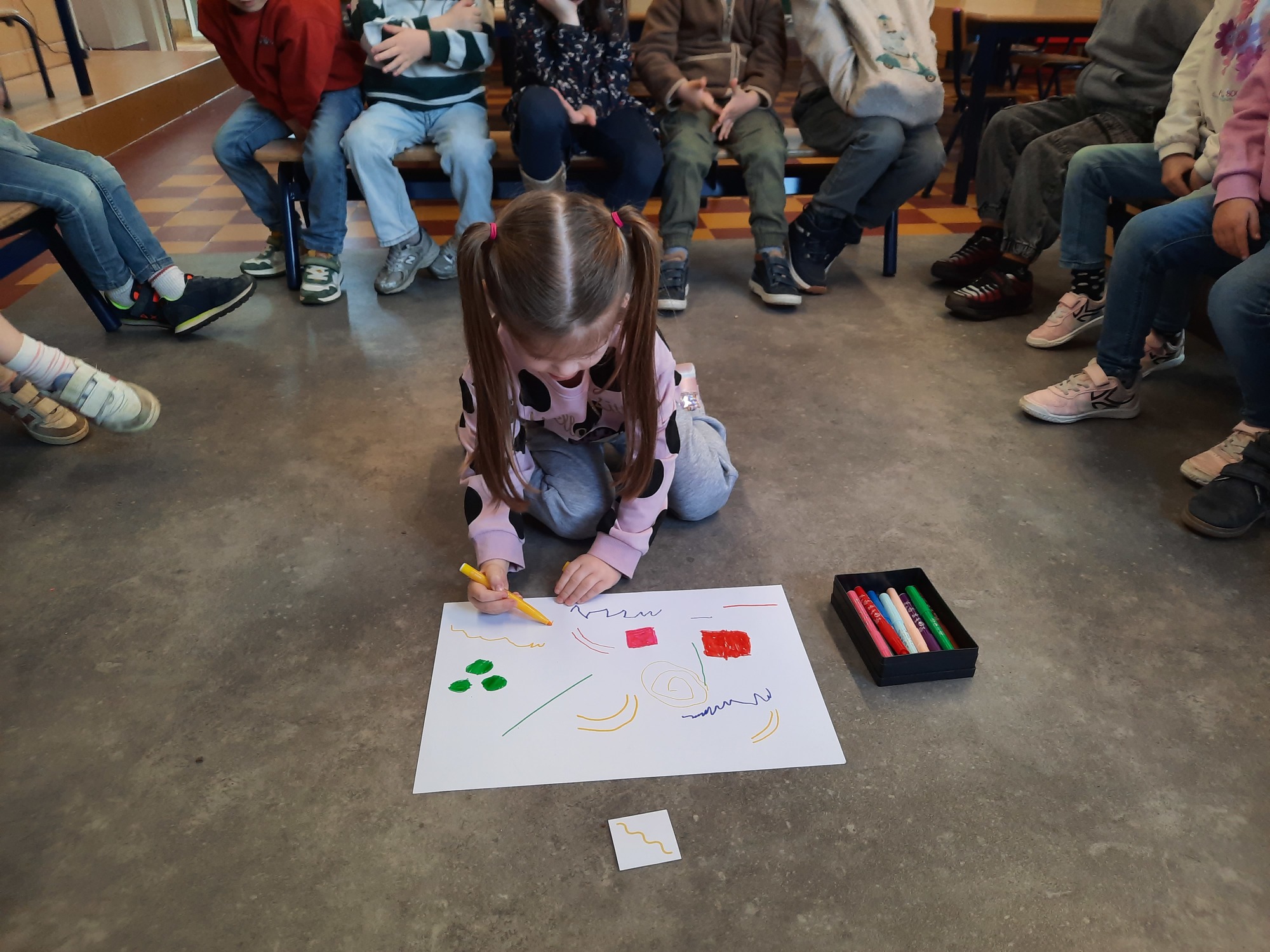 2KC: Groepswerk: tekenen in de stijl van Kandinsky (Teken wat op het kaartje staat)