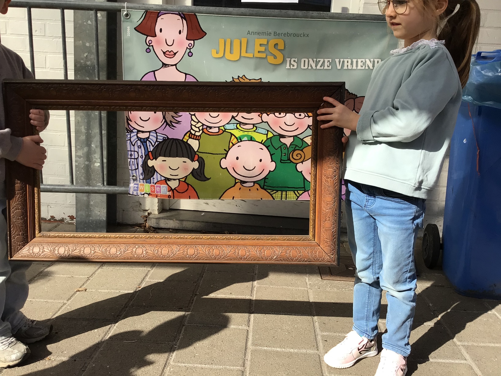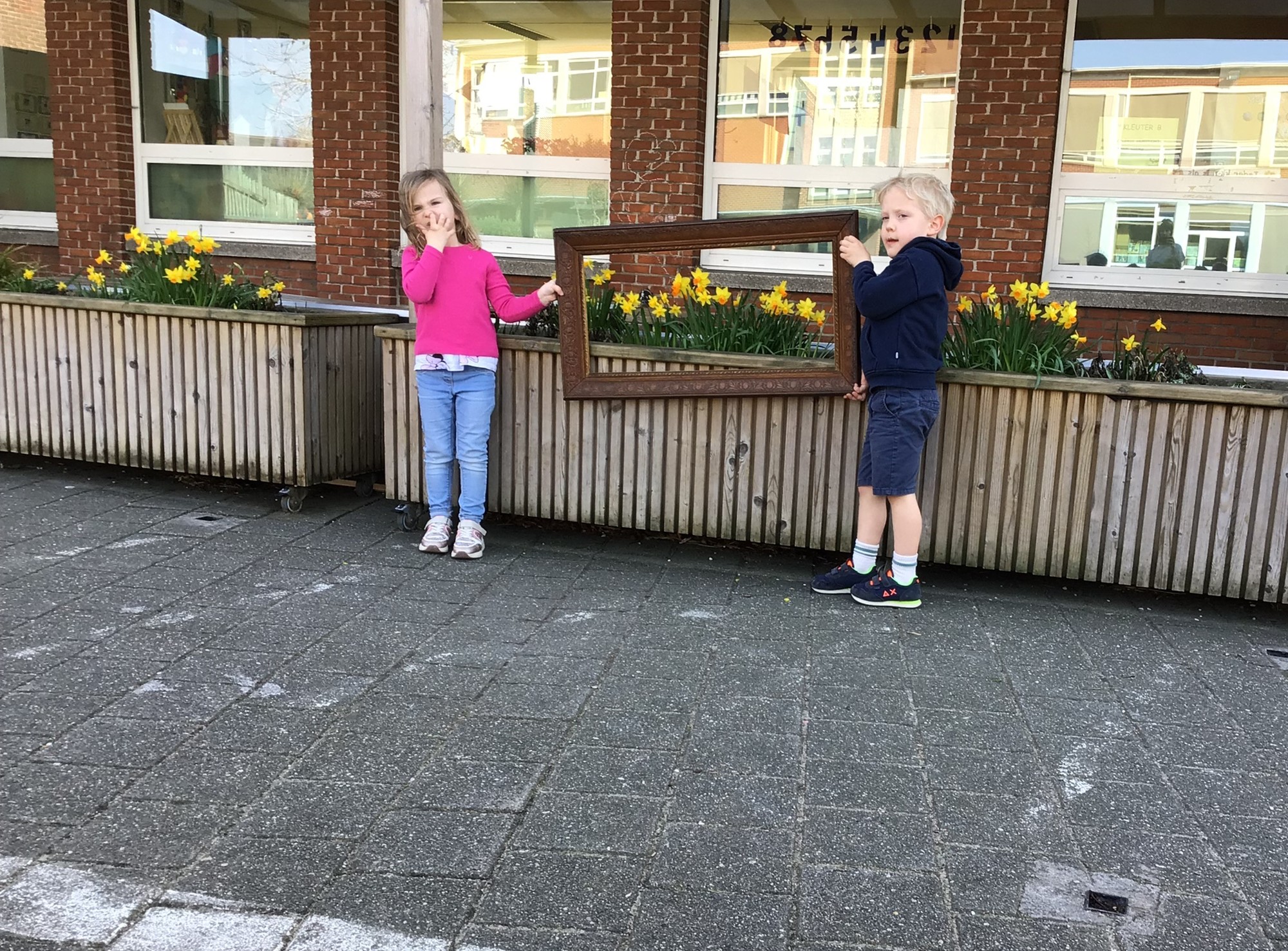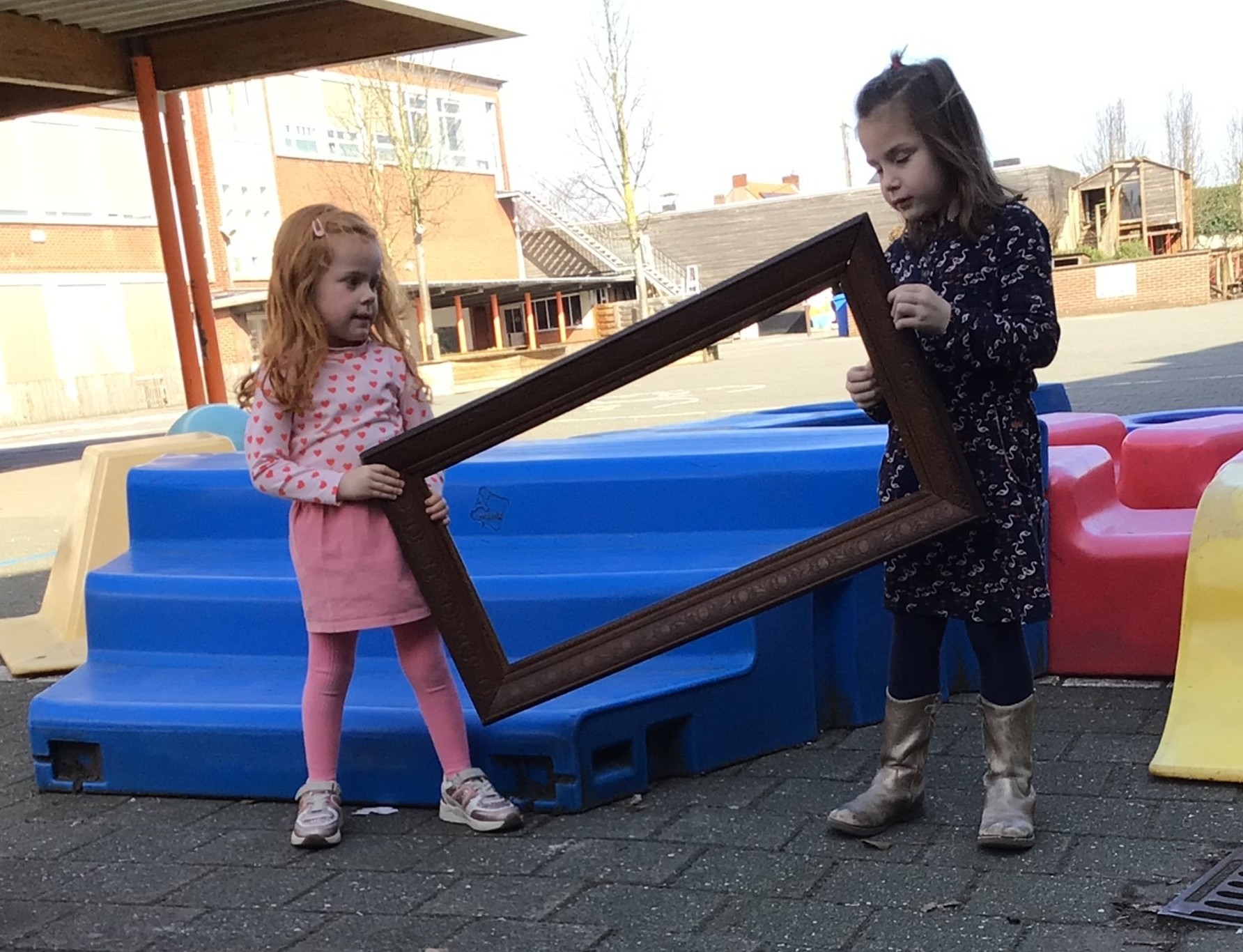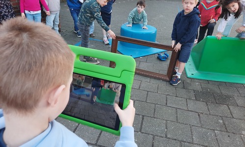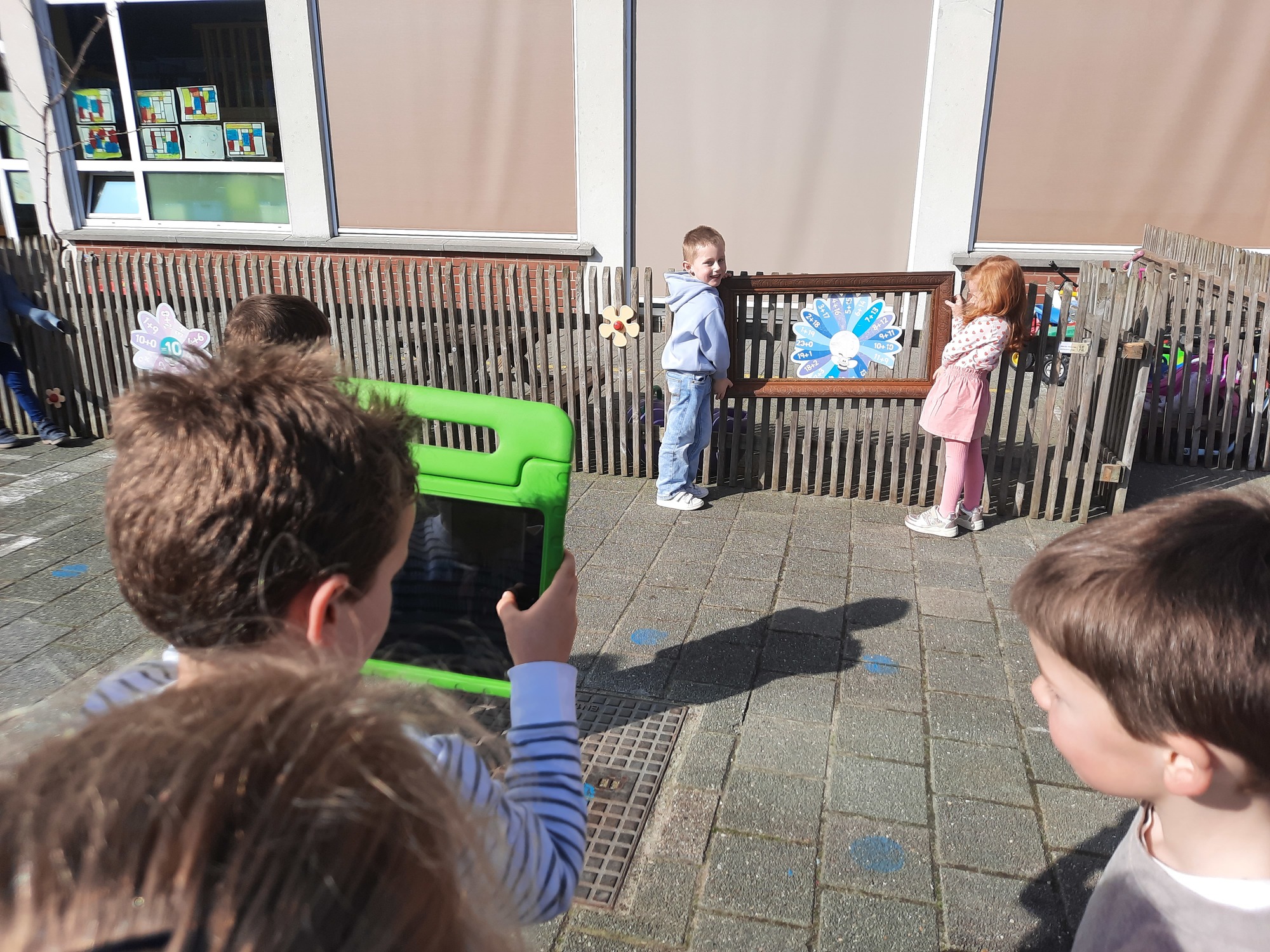 We luisterden naar het verhaal 'kijk eens hoe mooi'. Wanneer Duif een nieuwe lijst gemaakt heeft en ermee op stap gaat naar Prinses Plakband, ziet hij onderweg dat je van 'kleine dingen' 'grote kunst' kan maken. Wij zochten zelf dingen die mooi worden als je ze in een kadertje zet. Echte kunst :). De kleuters namen zelf een foto van het 'kunstwerk'.