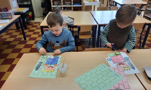 2KC: Knippen, kleven, kleuren, tekenen,... Thema 'Ridder Muis'