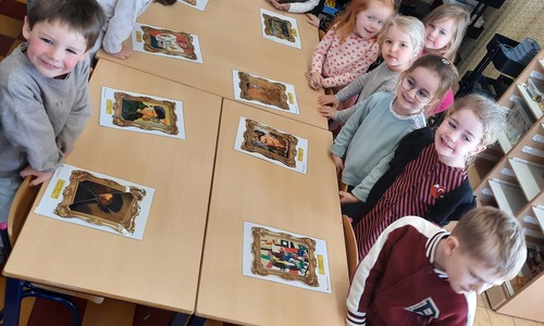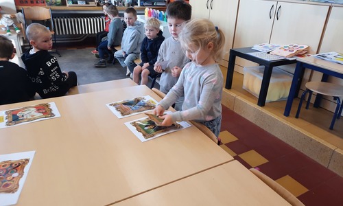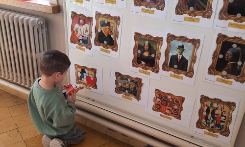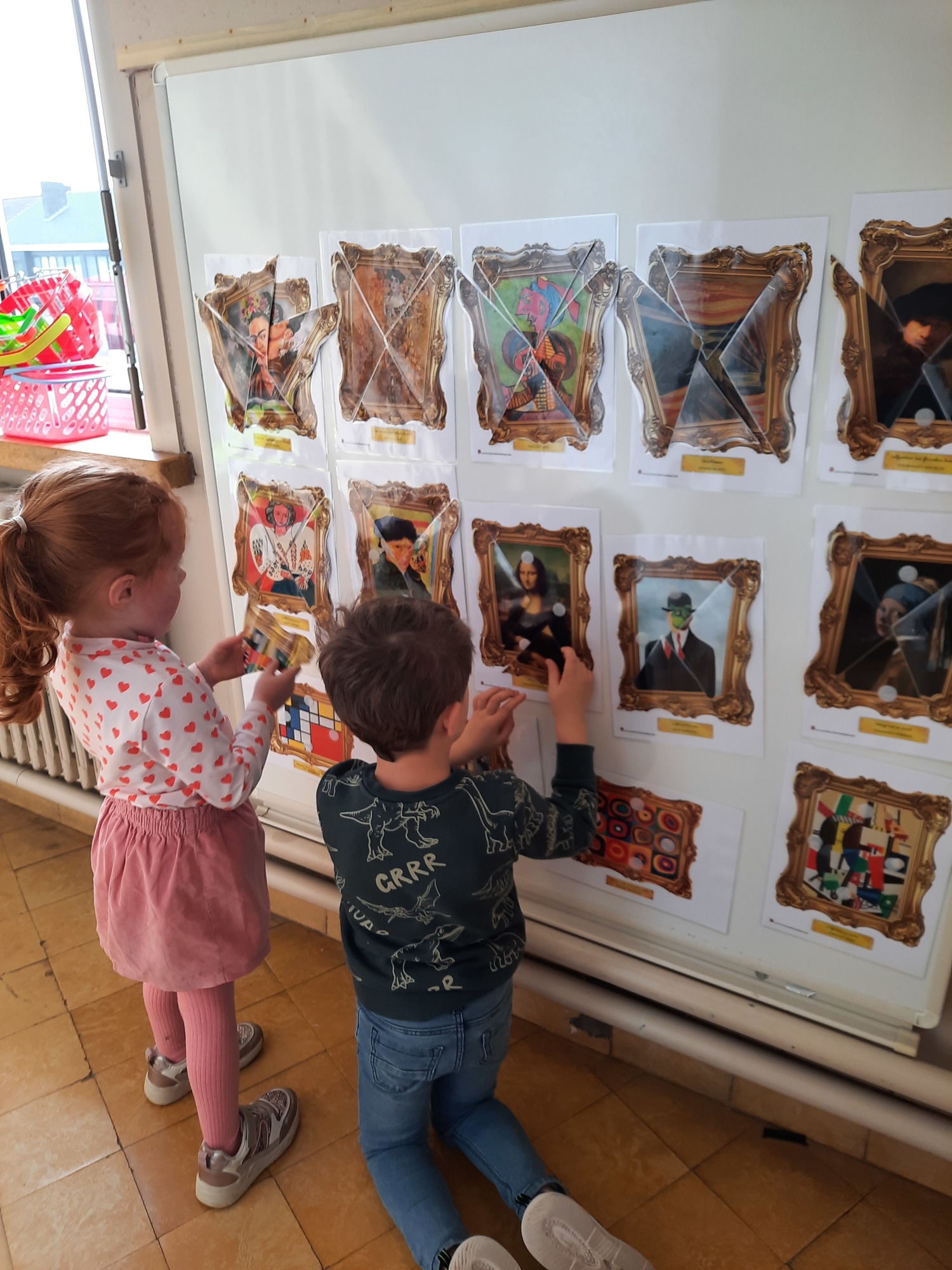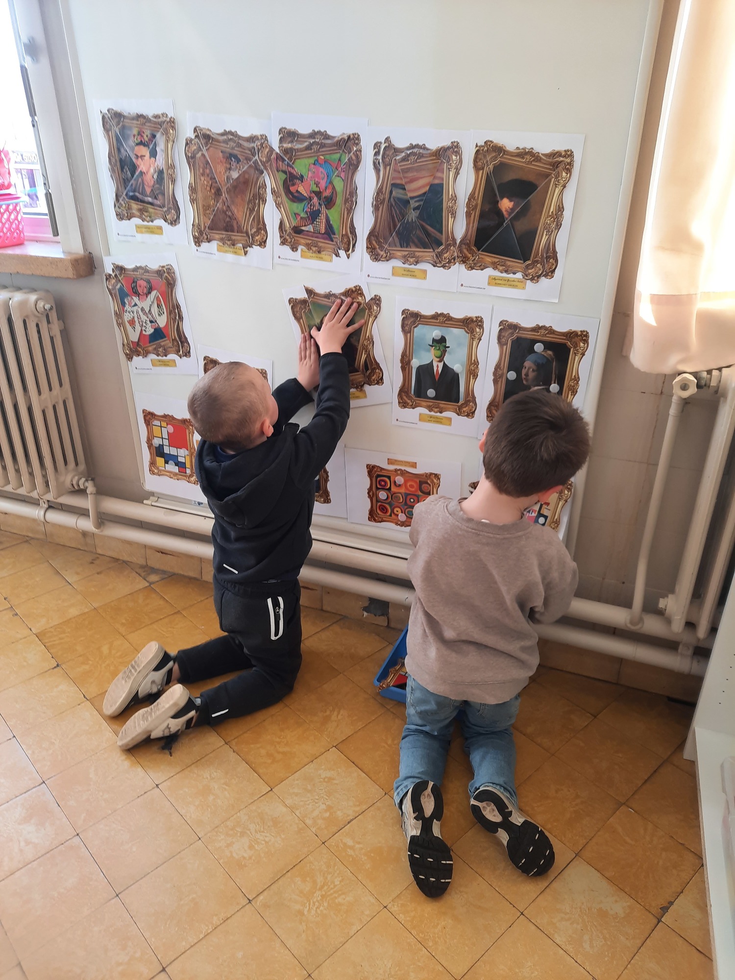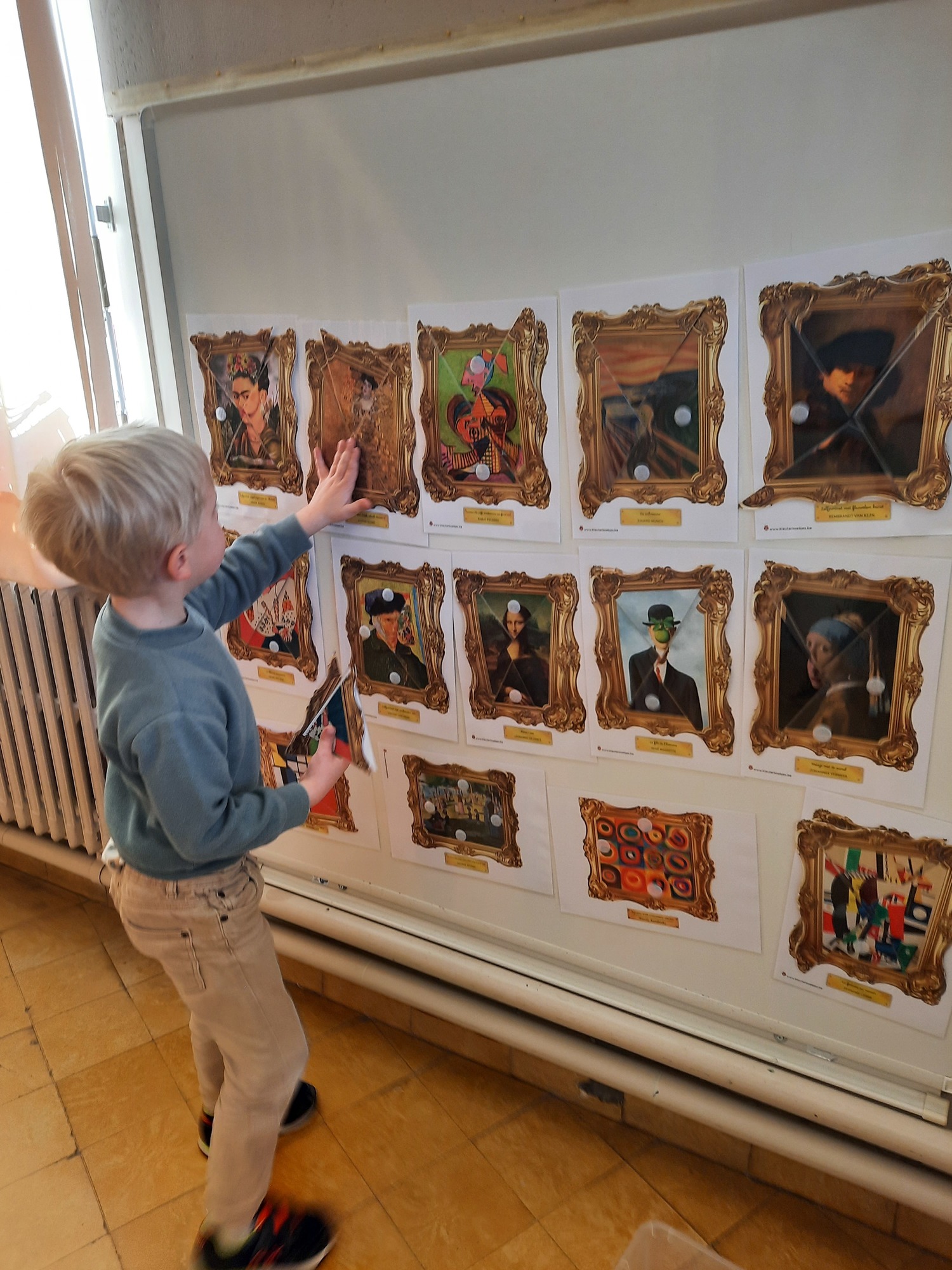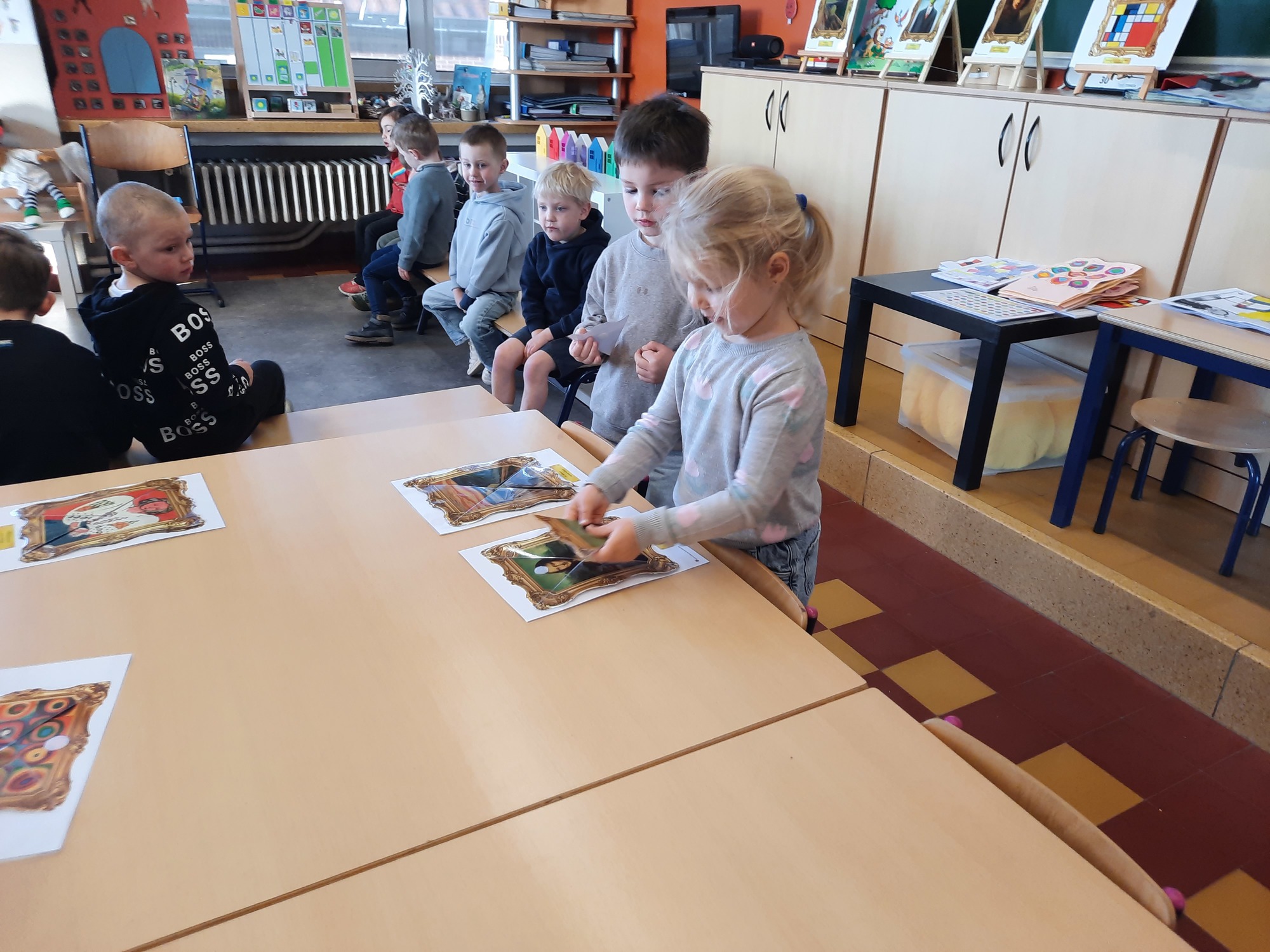 2KC: Kunst in stukken. Leg de puzzelstukken op het juiste schilderij. Kies wat voor jou het mooiste schilderij is.