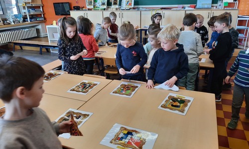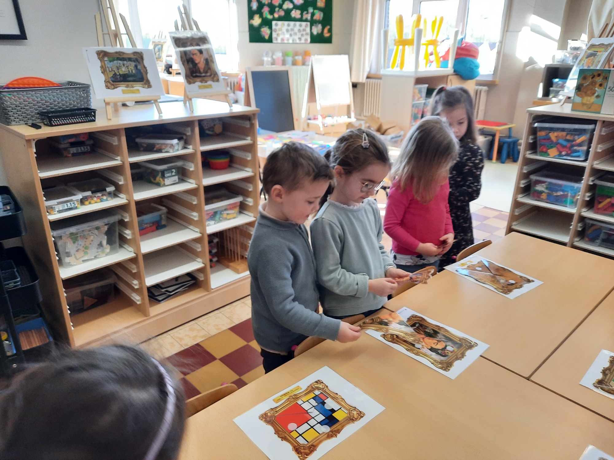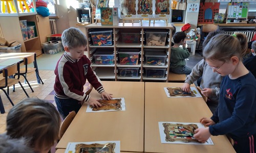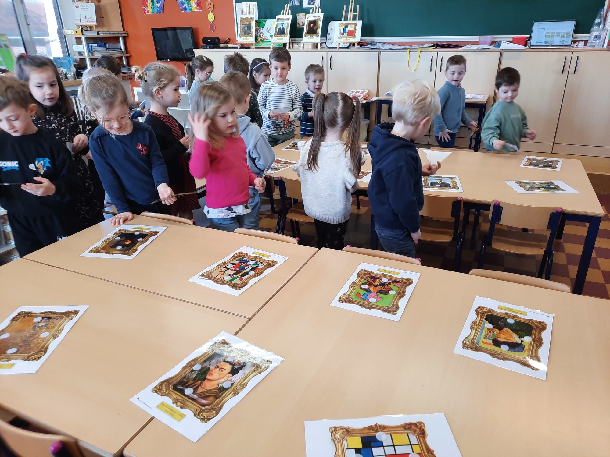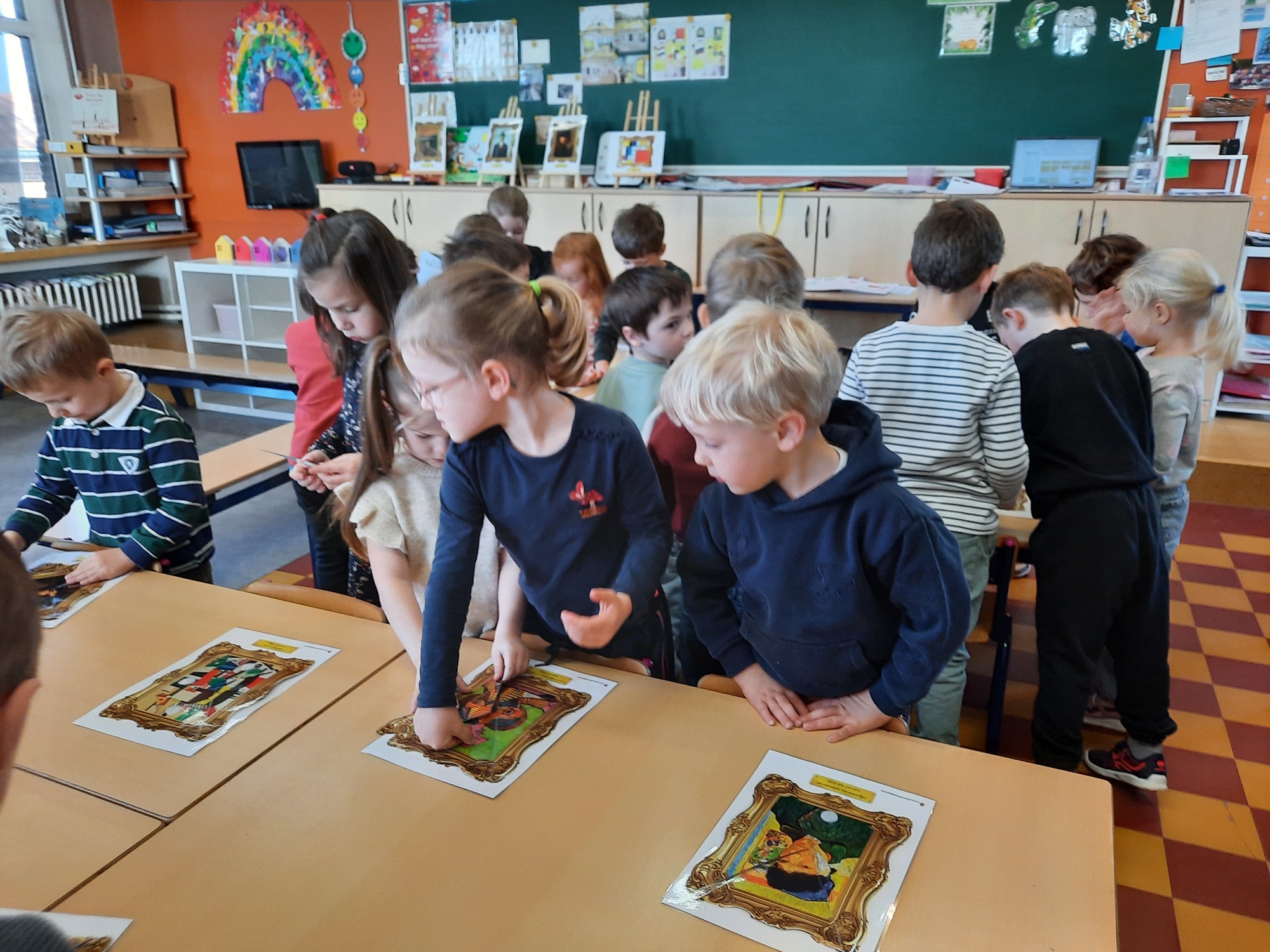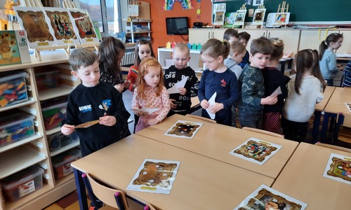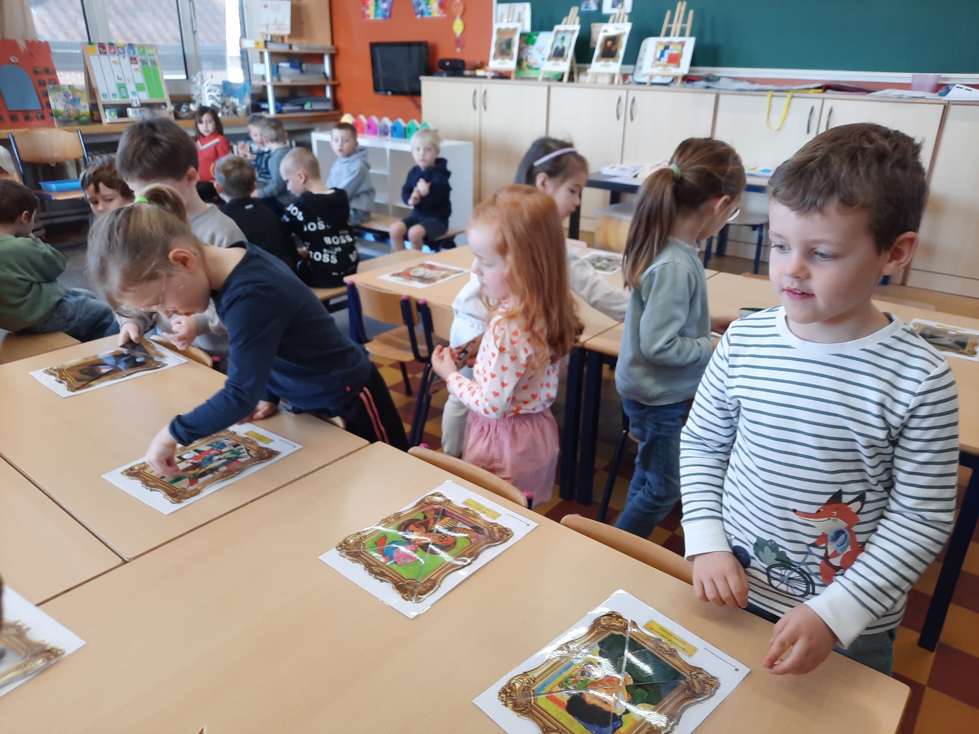 2KC: Kunst in stukken. Leg de puzzelstukken op het juiste schilderij. Kies wat voor jou het mooiste schilderij is.