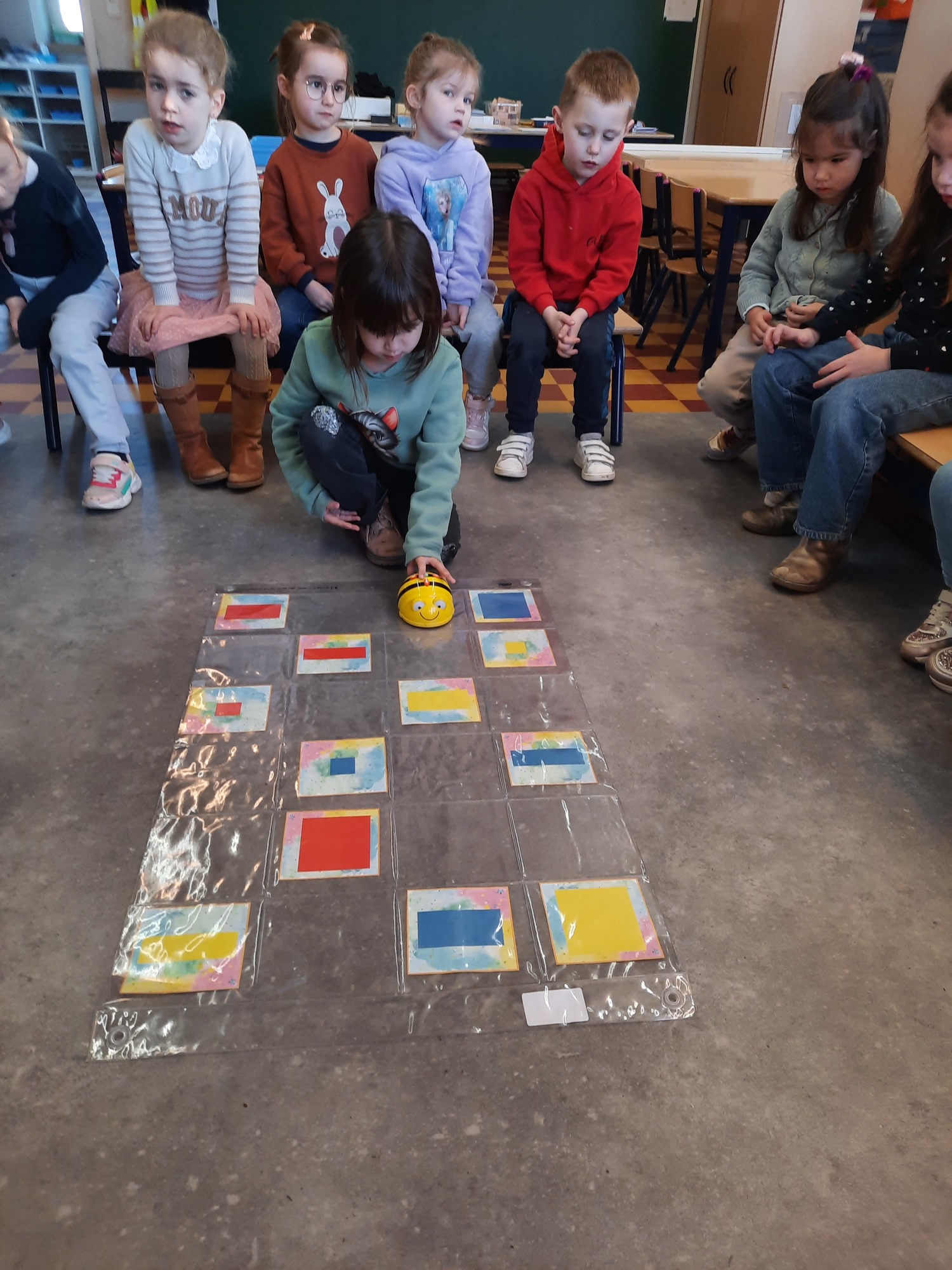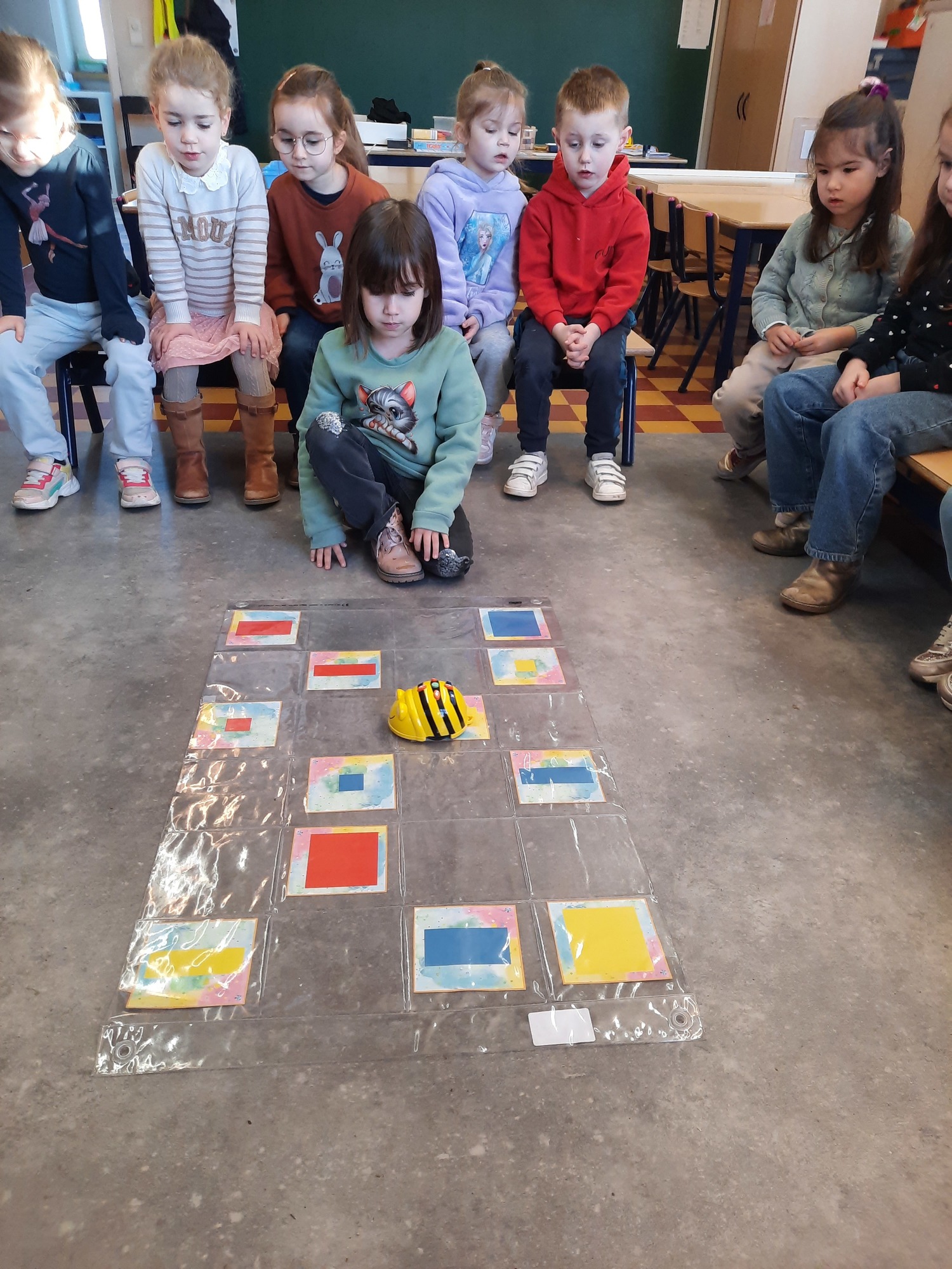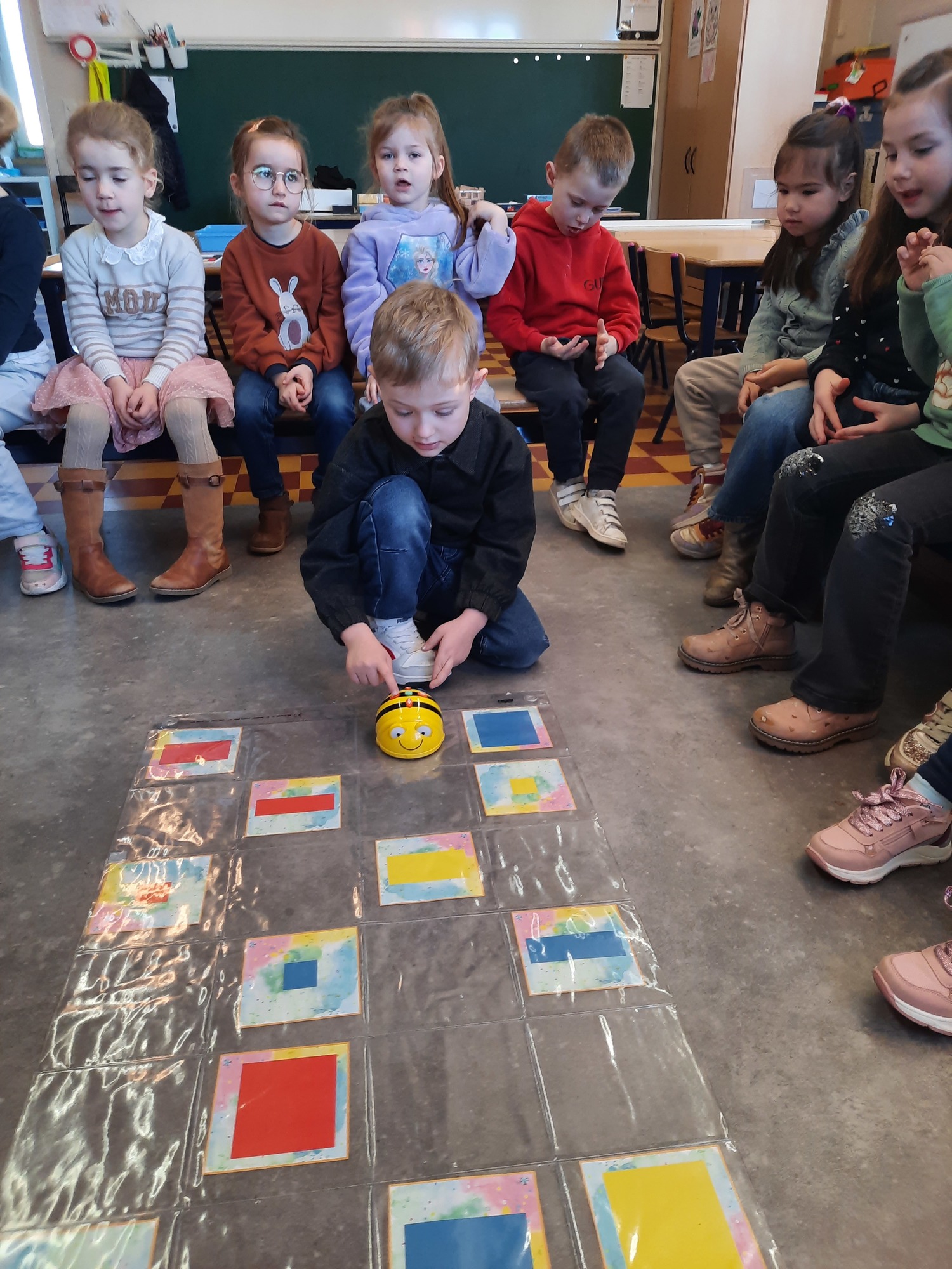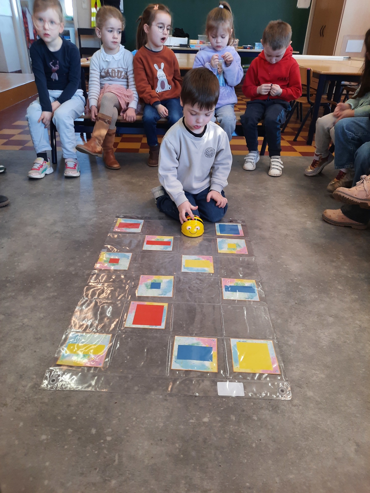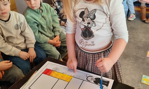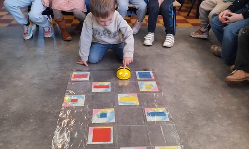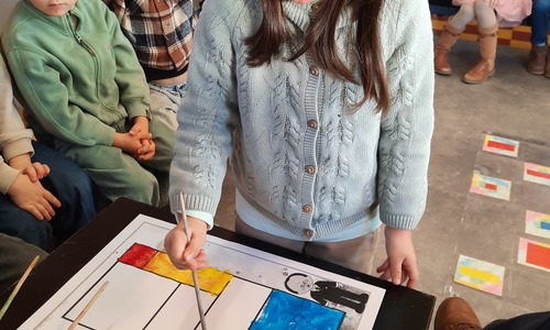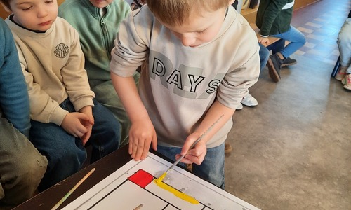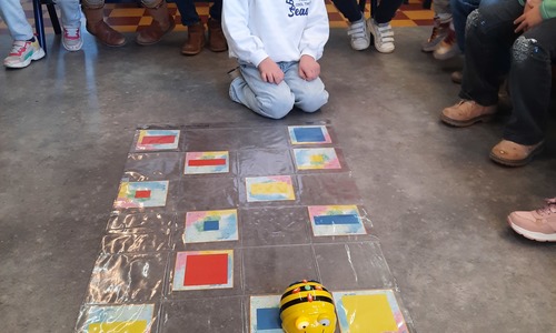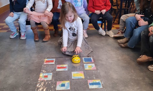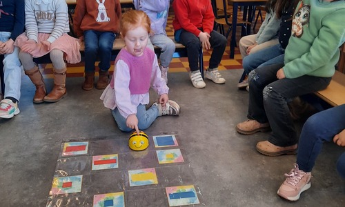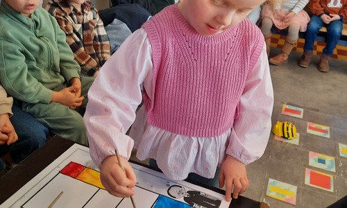 2KC: Met de Bee-bot het schilderij van Piet Mondriaan naschilderen.