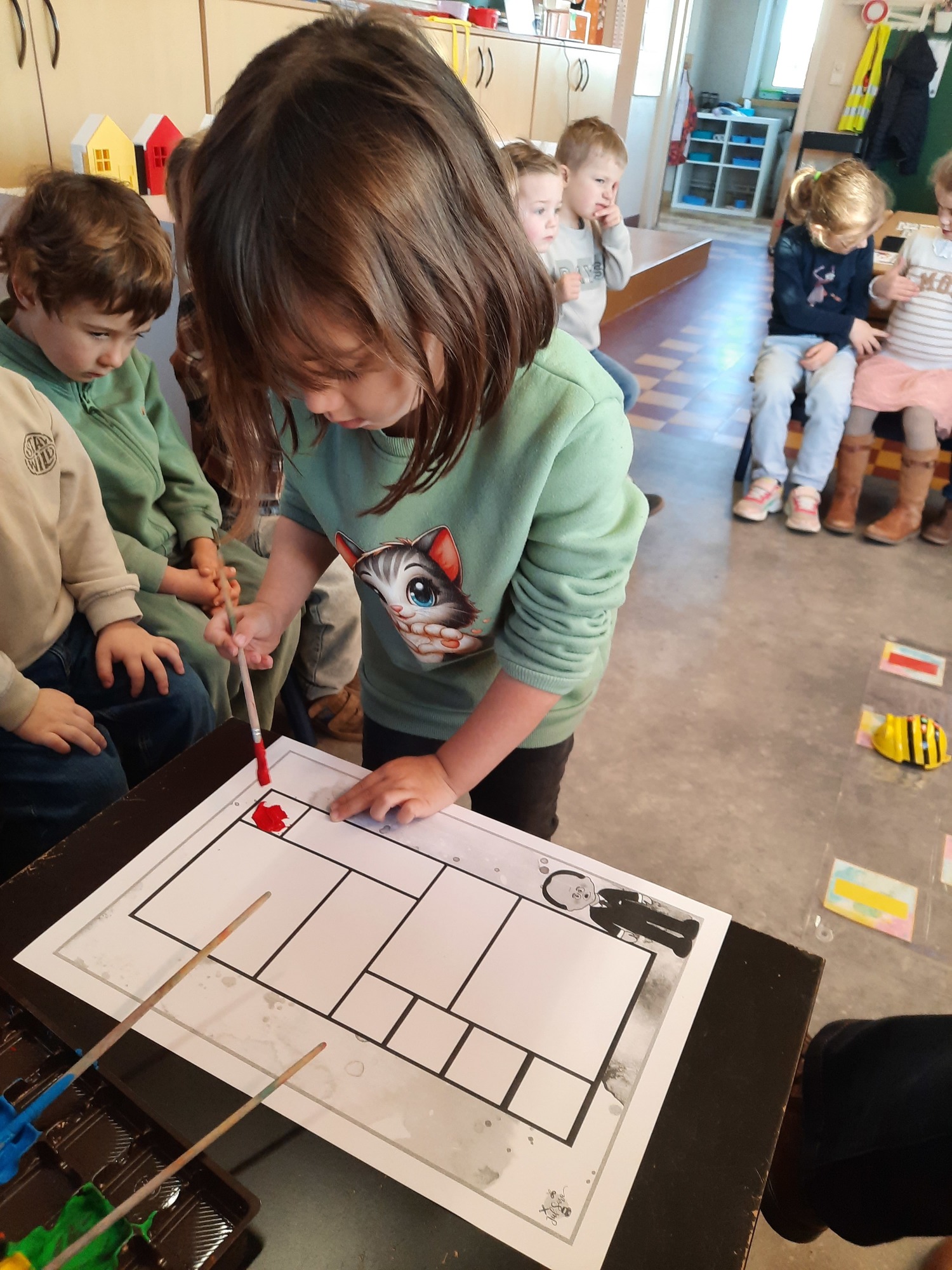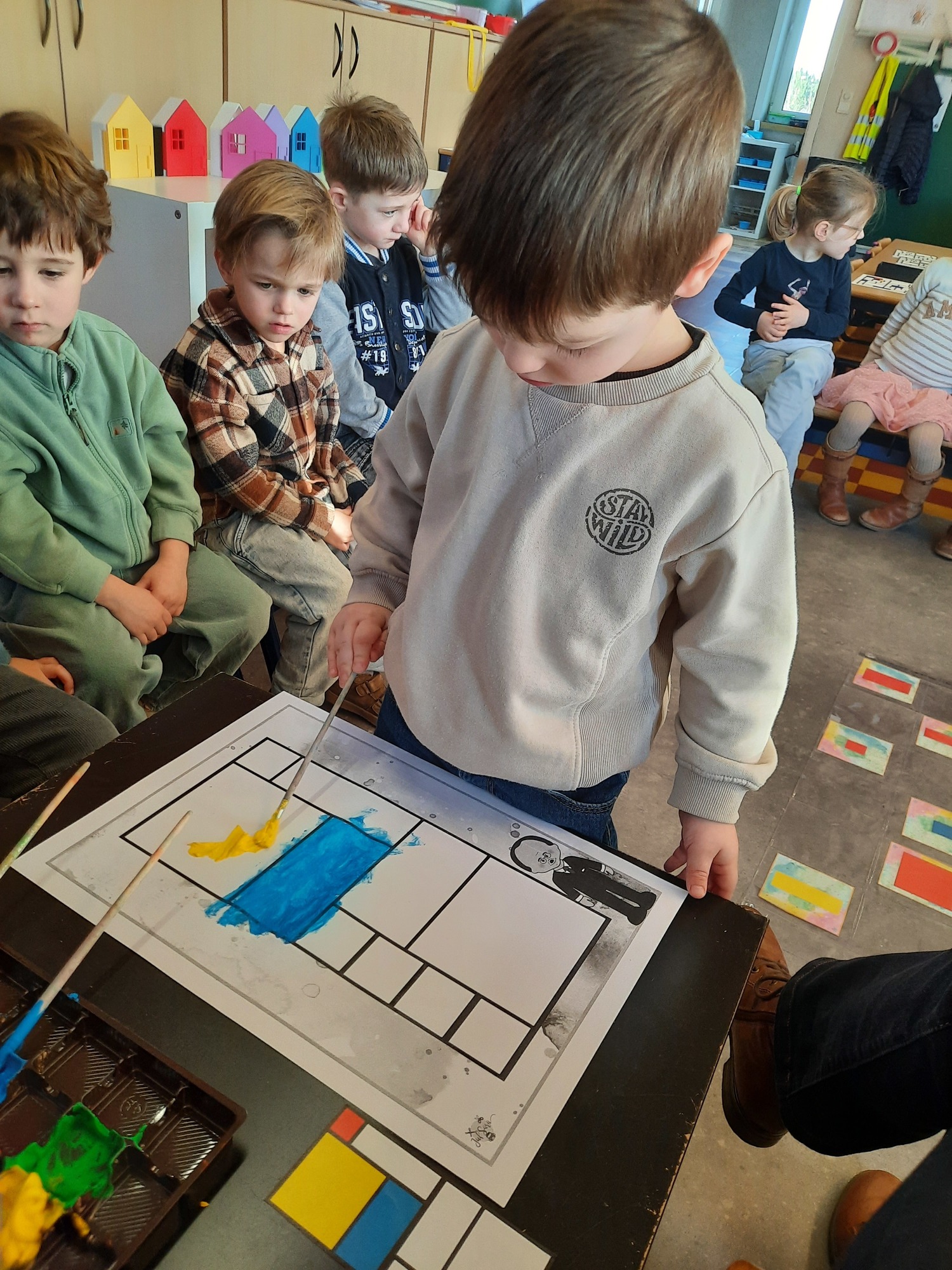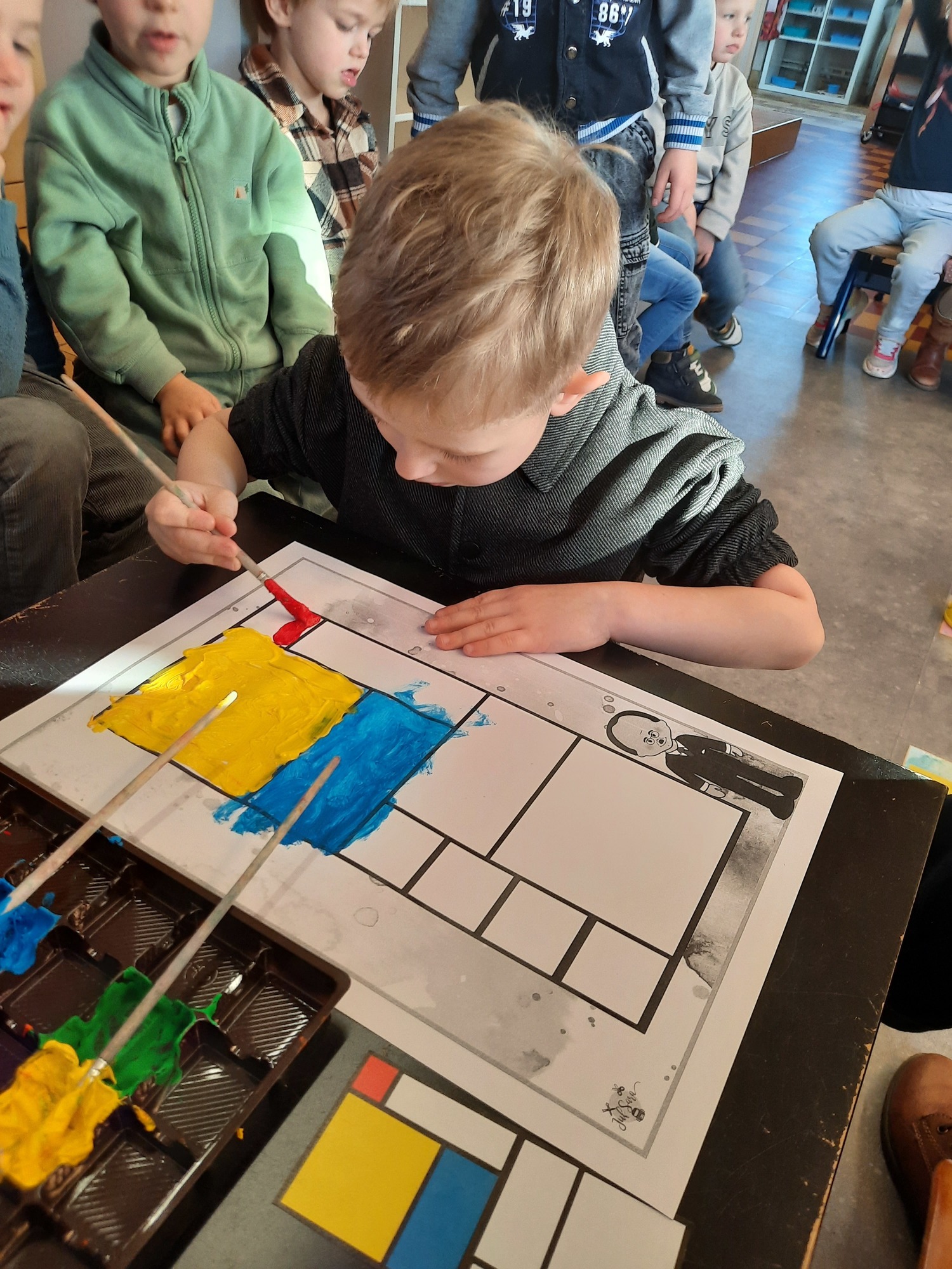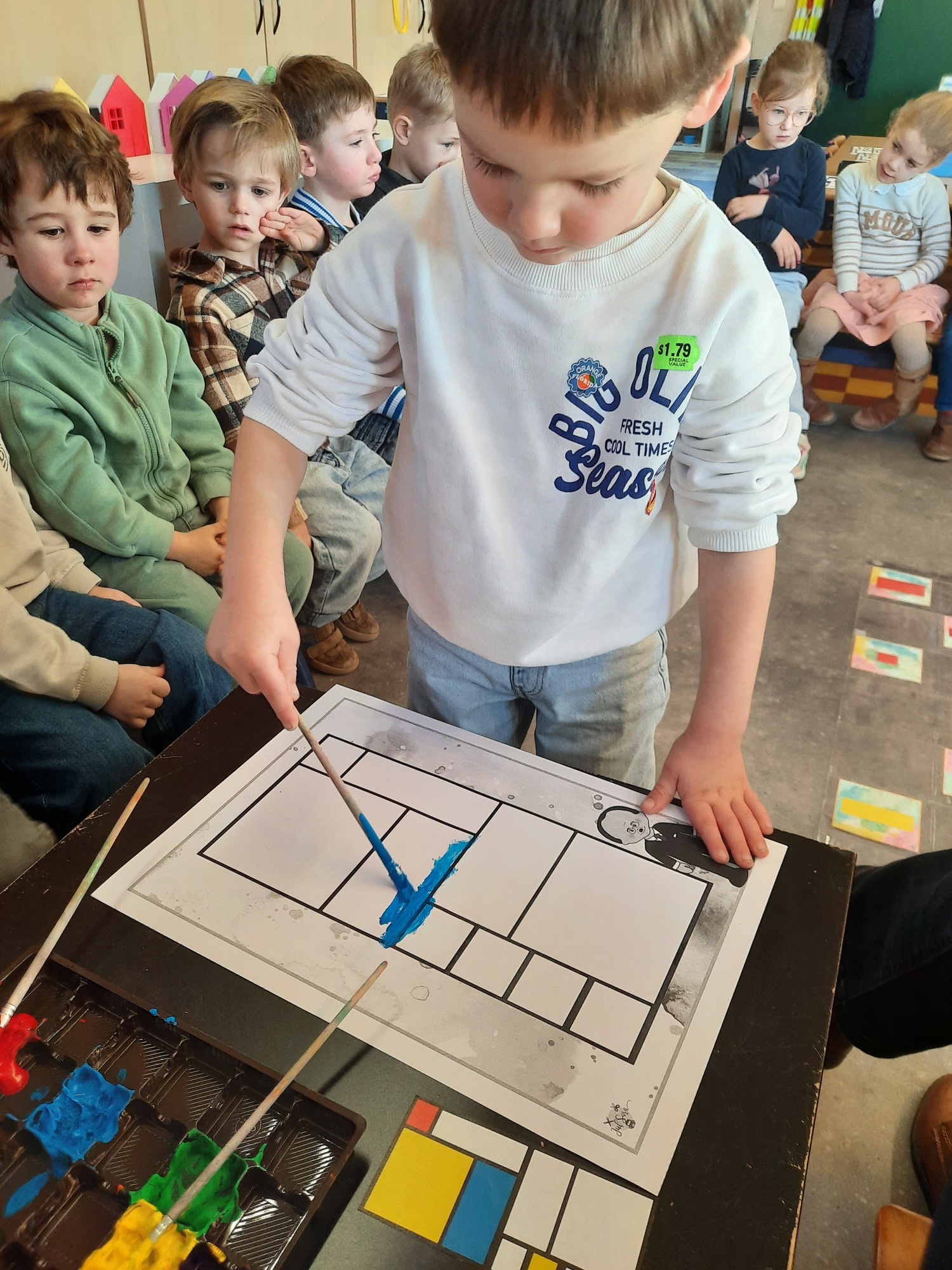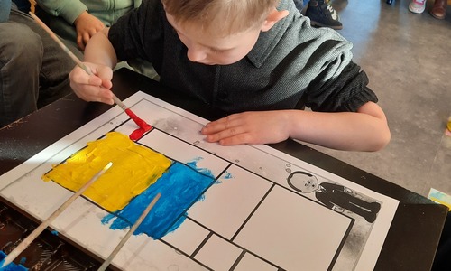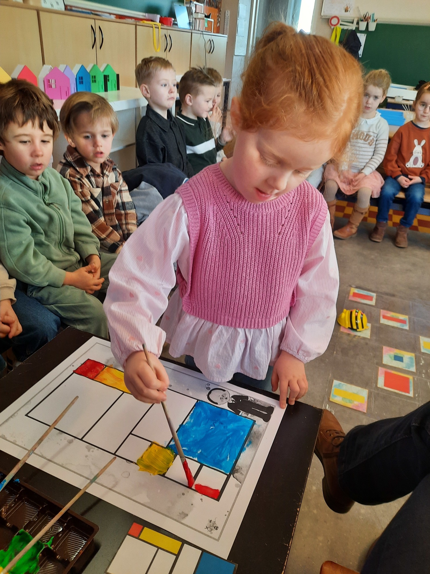 2KC: Met de Bee-bot het schilderij van Piet Mondriaan naschilderen.