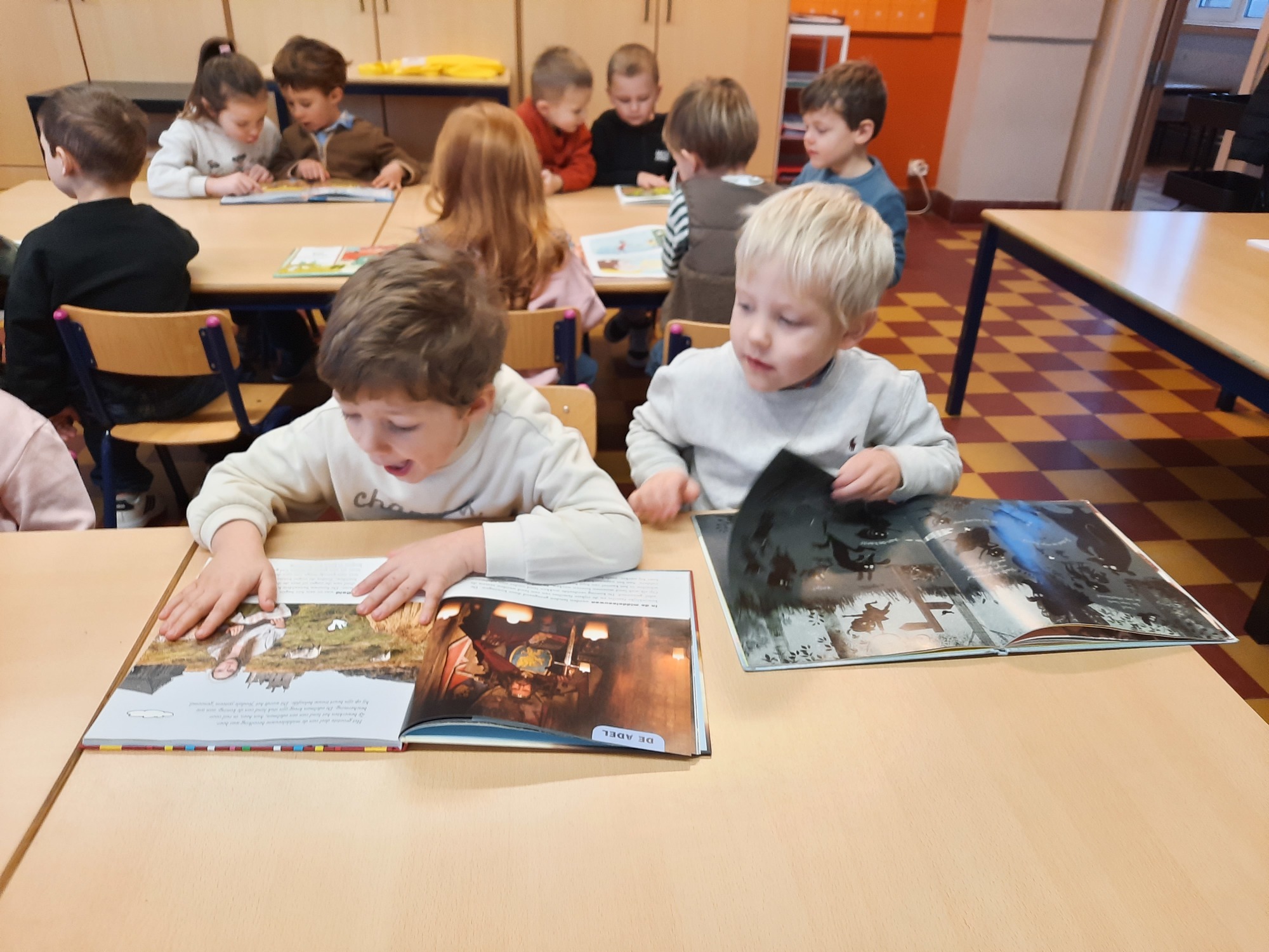 2KC: Start van het thema 'Ridder muis'. Kijken in de boeken en vertellen wat de kleuters zien.