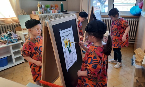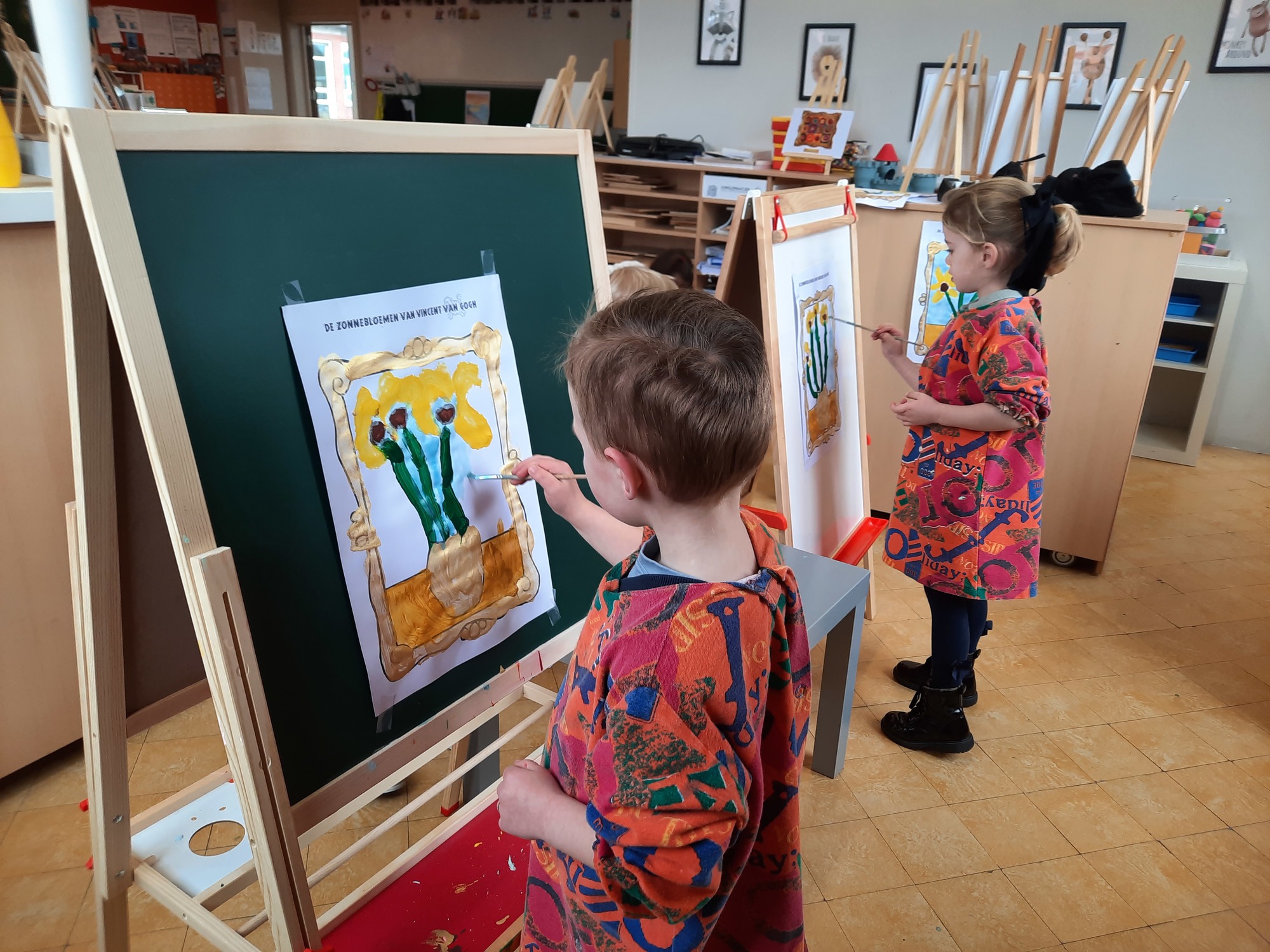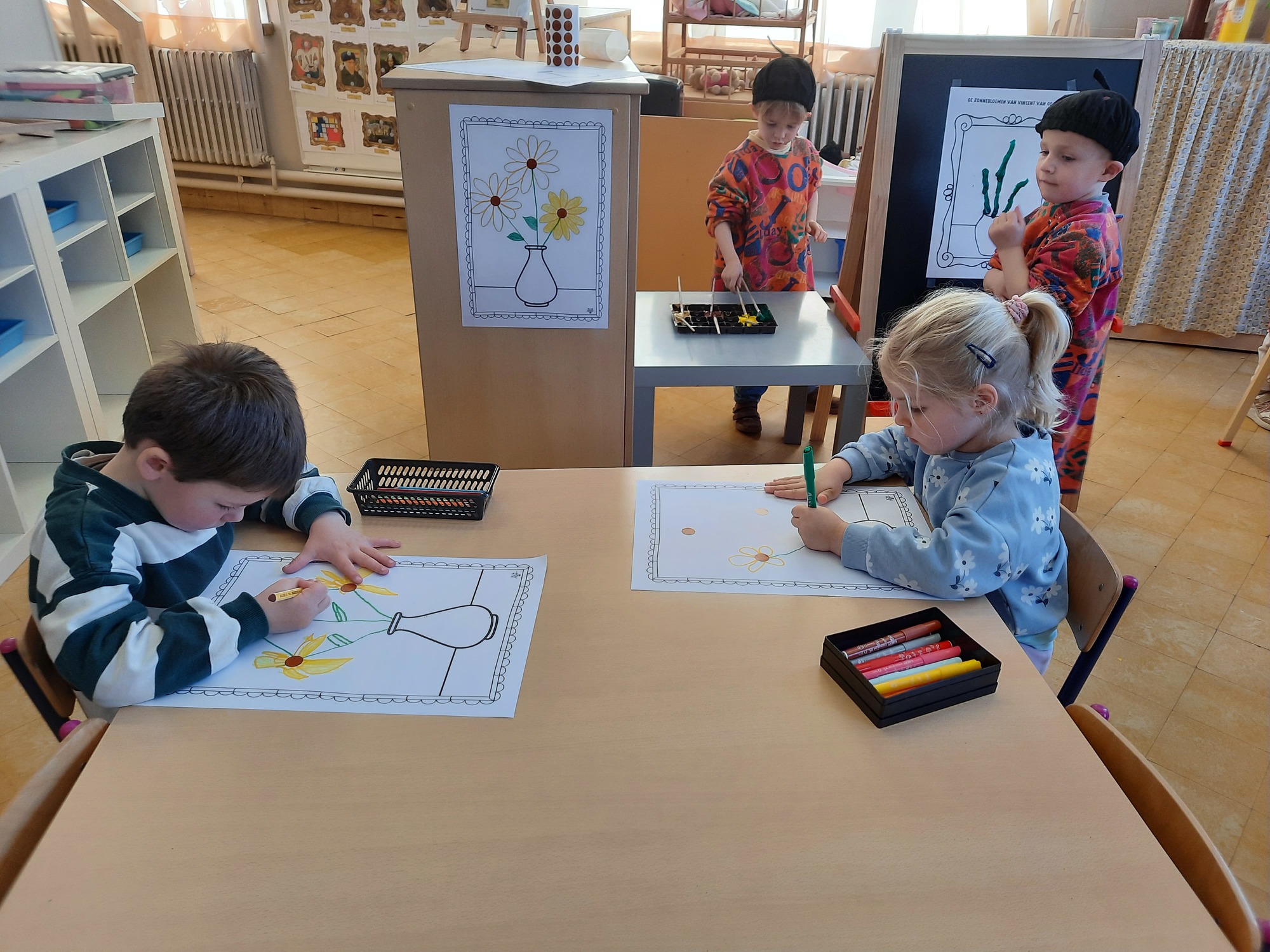 2KC: Van Gogh: de zonnebloemen. Tekenen en schilderen.