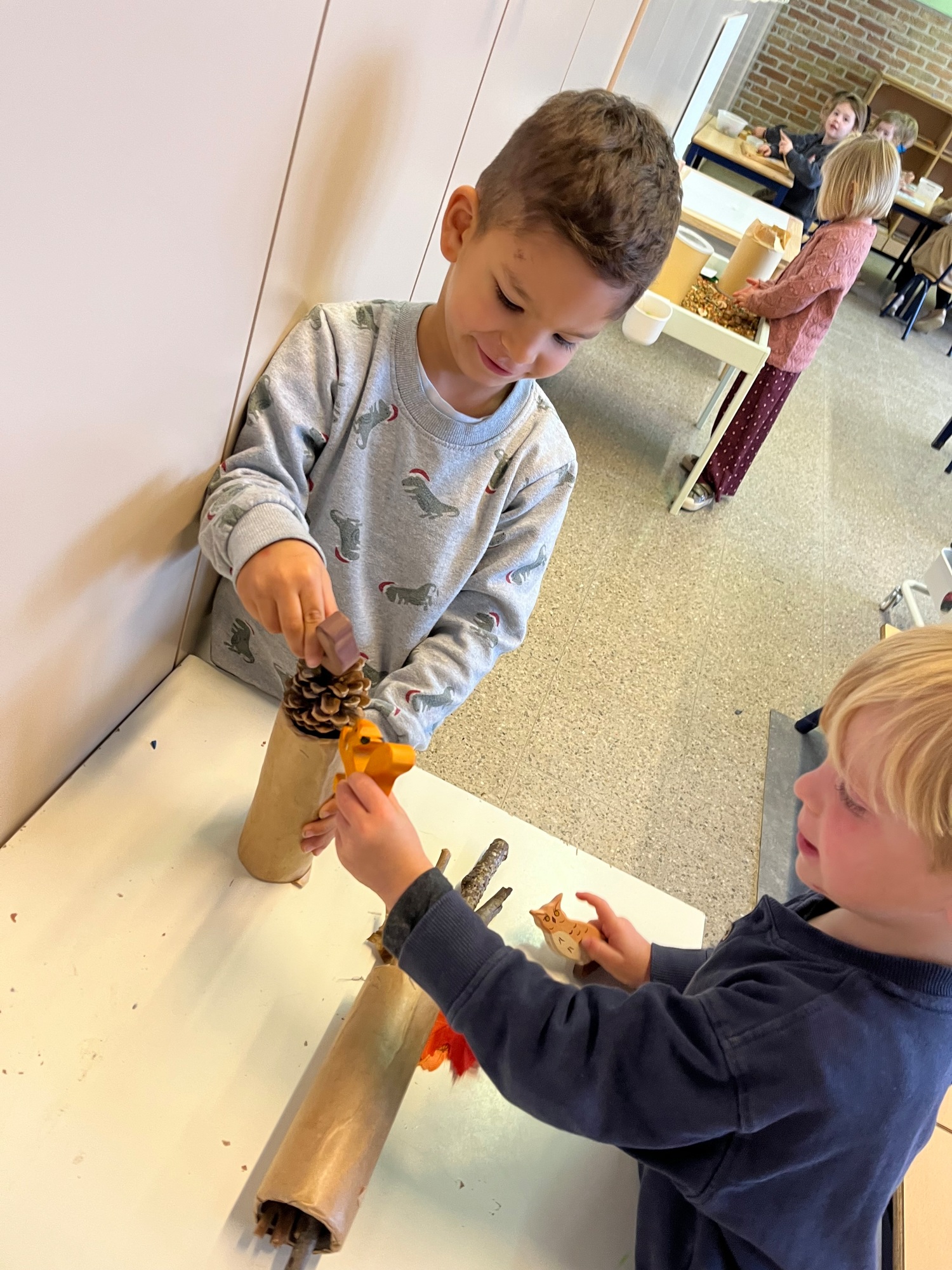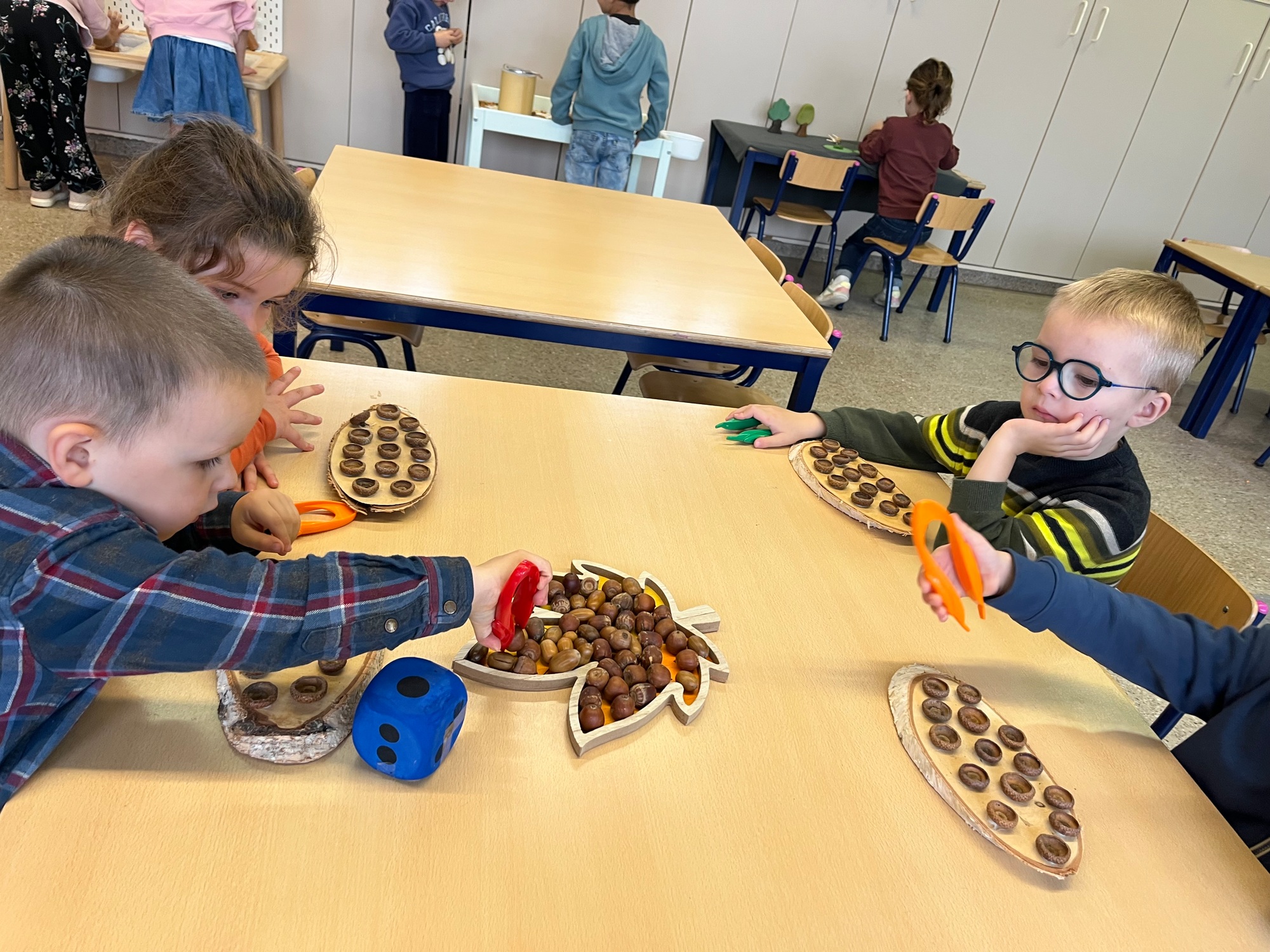 Spinnen en hun web - De egel - Een herfstwandeling maken - Hoe kan je noten kraken? - Krullenbol - Een bos in de klas…- Tellen - Meten en van groot naar klein leggen - Rijmen -…