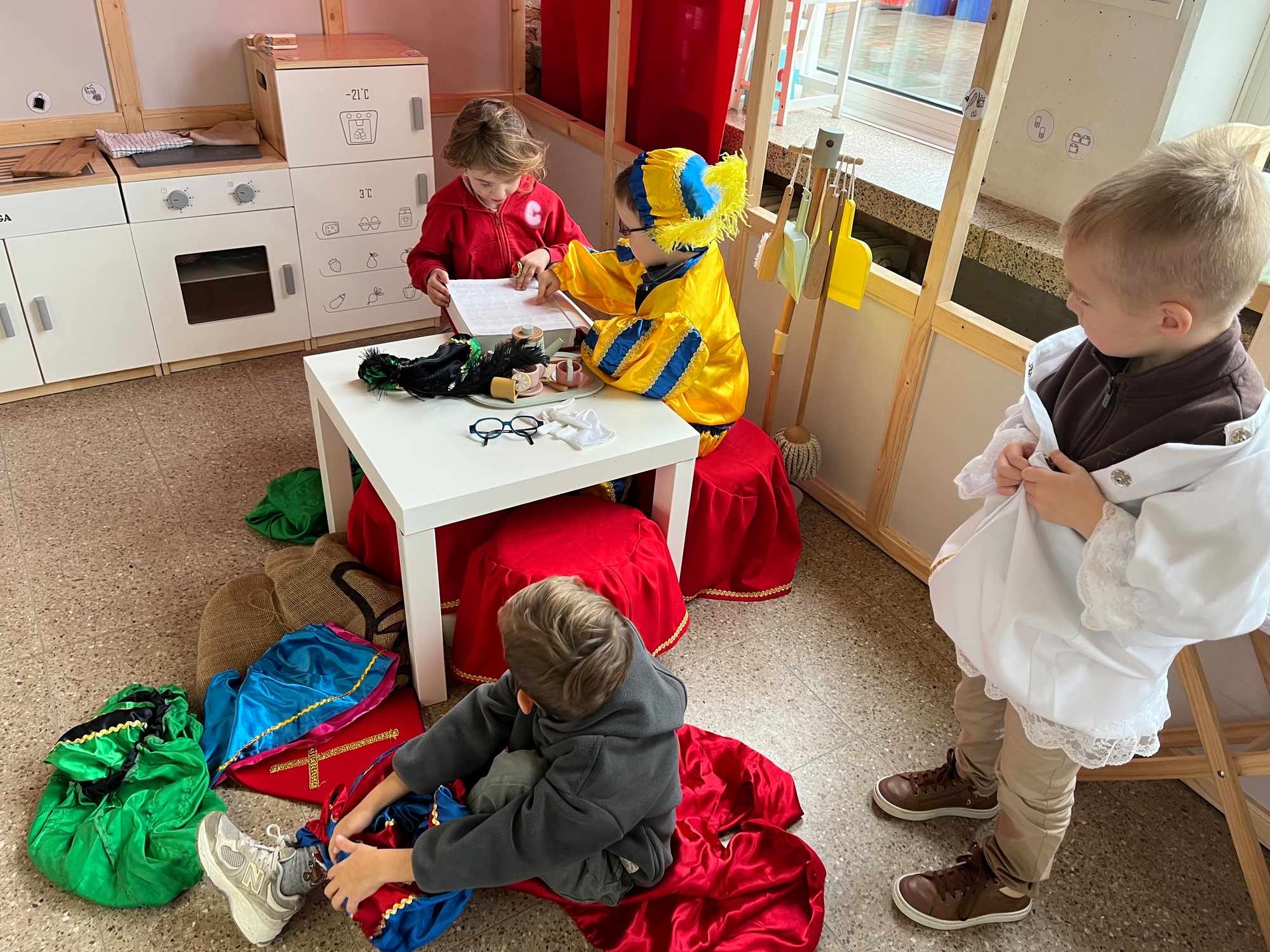 Een stevige schoorsteen maken - een muur stempelen - knippen / kleuren / kleven - liedjes zingen - Verkleden in Sint of Piet - Wegen van de zak van Piet - Rijmen - Krullenbol & de baard van Sinterklaas rollen (fijne motoriek) - Plaatsbegrippen (op - onder - naast - …) - Sint op bezoek - …