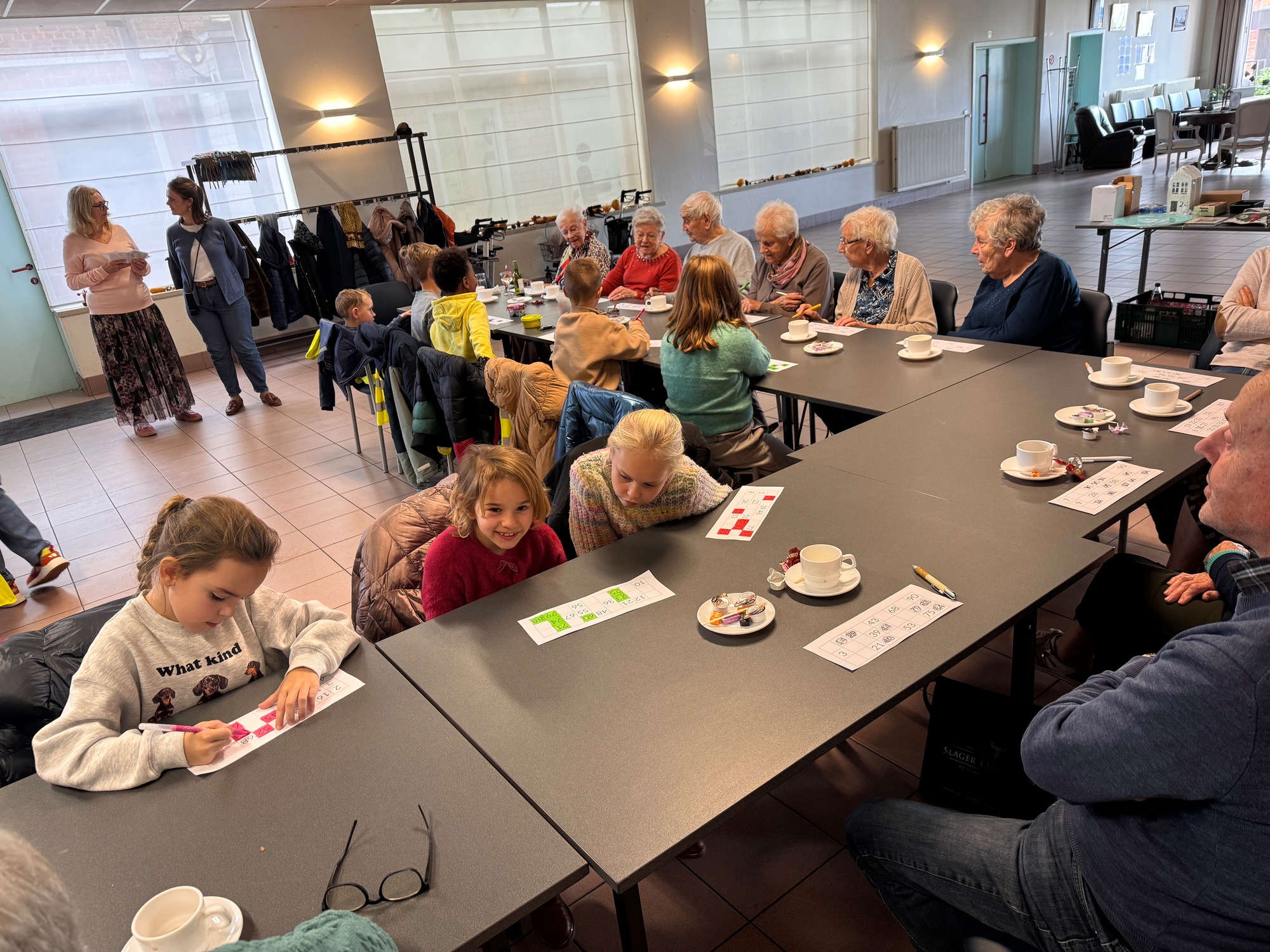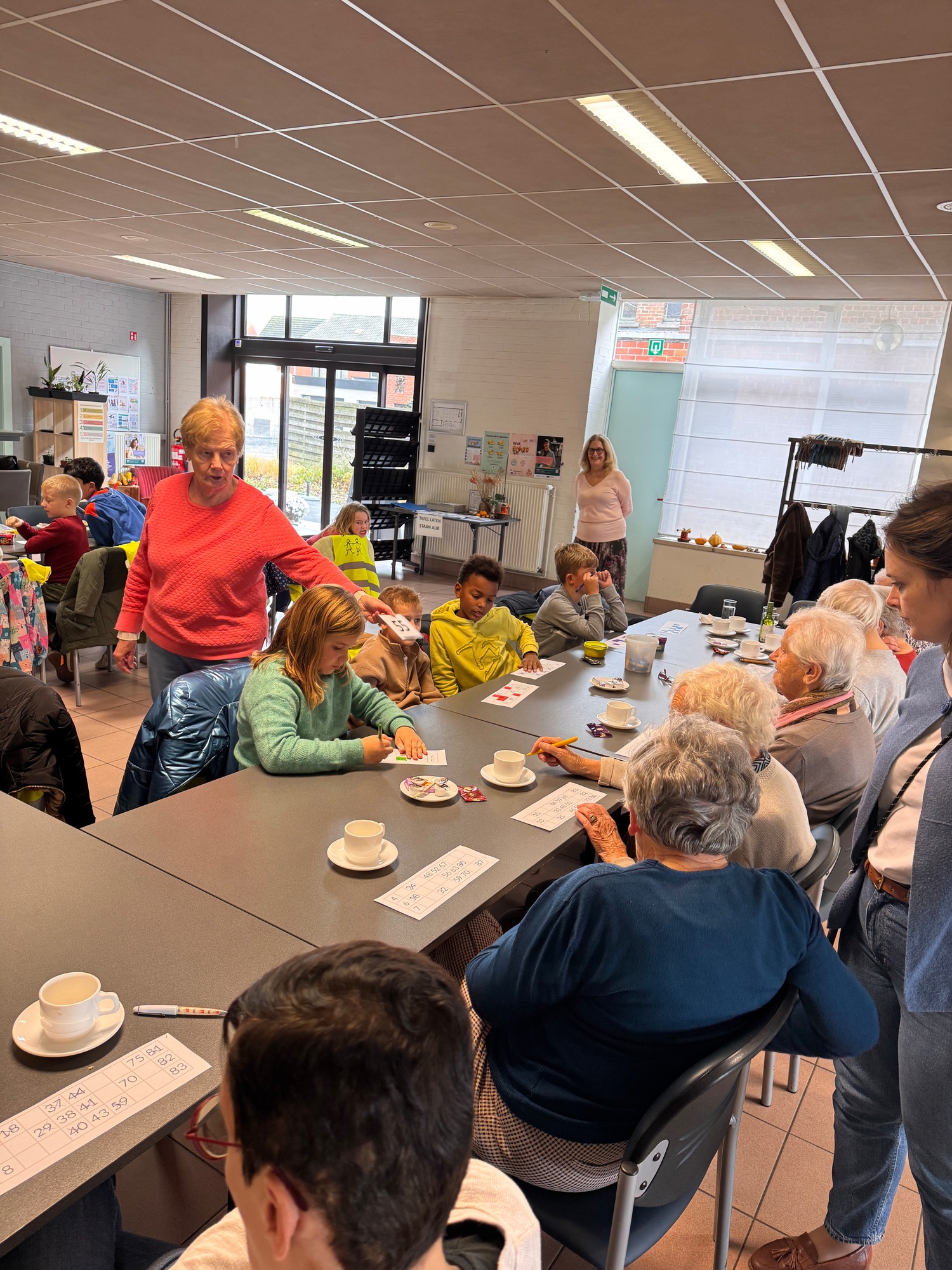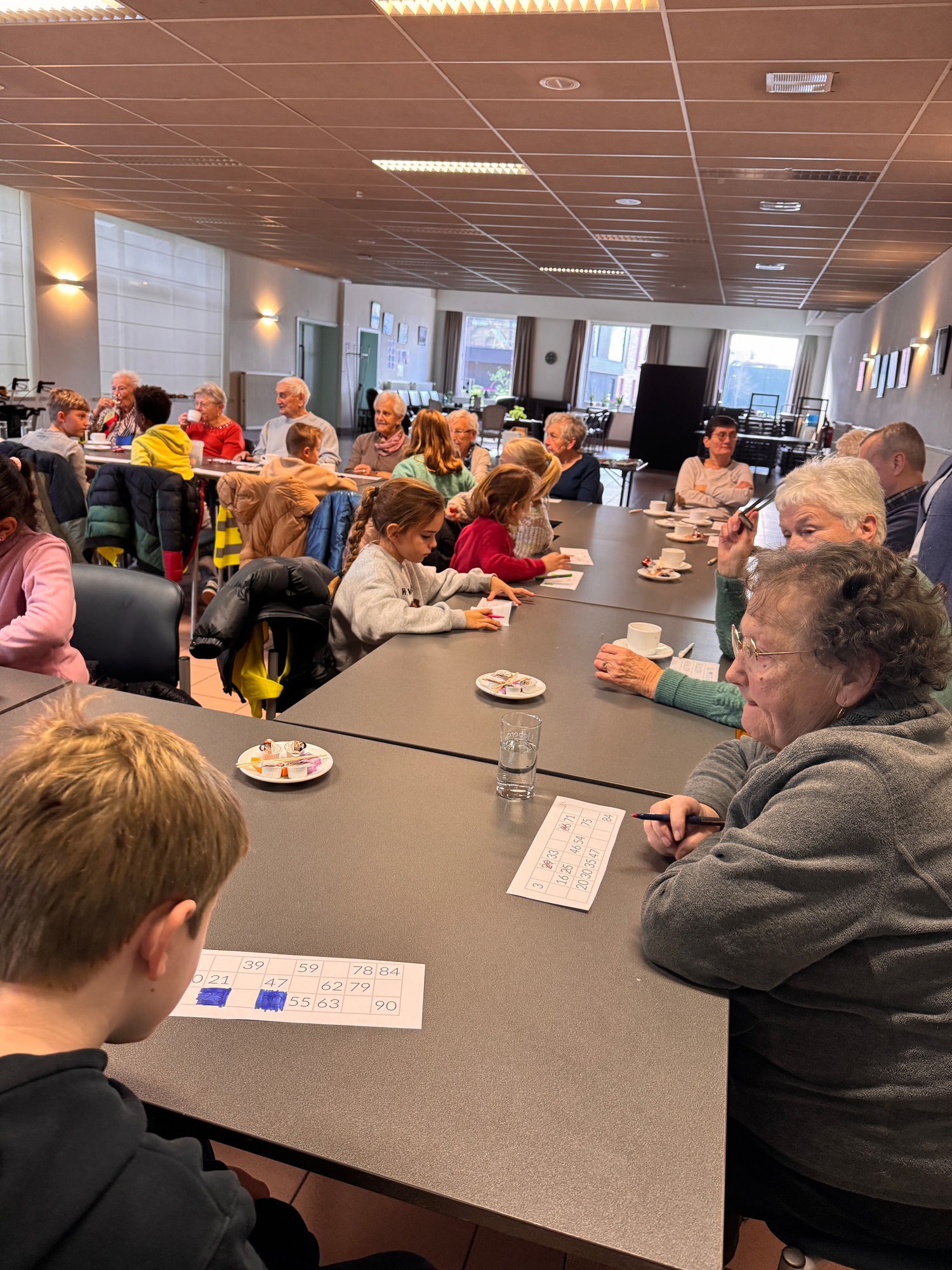 We speelden samen met enkele senioren een spelletje bingo. Gezellig samenzijn en ook de getallen tot 100 oefenen.