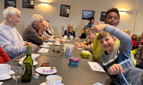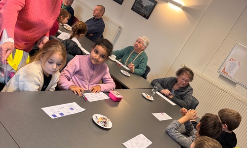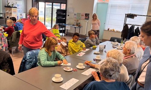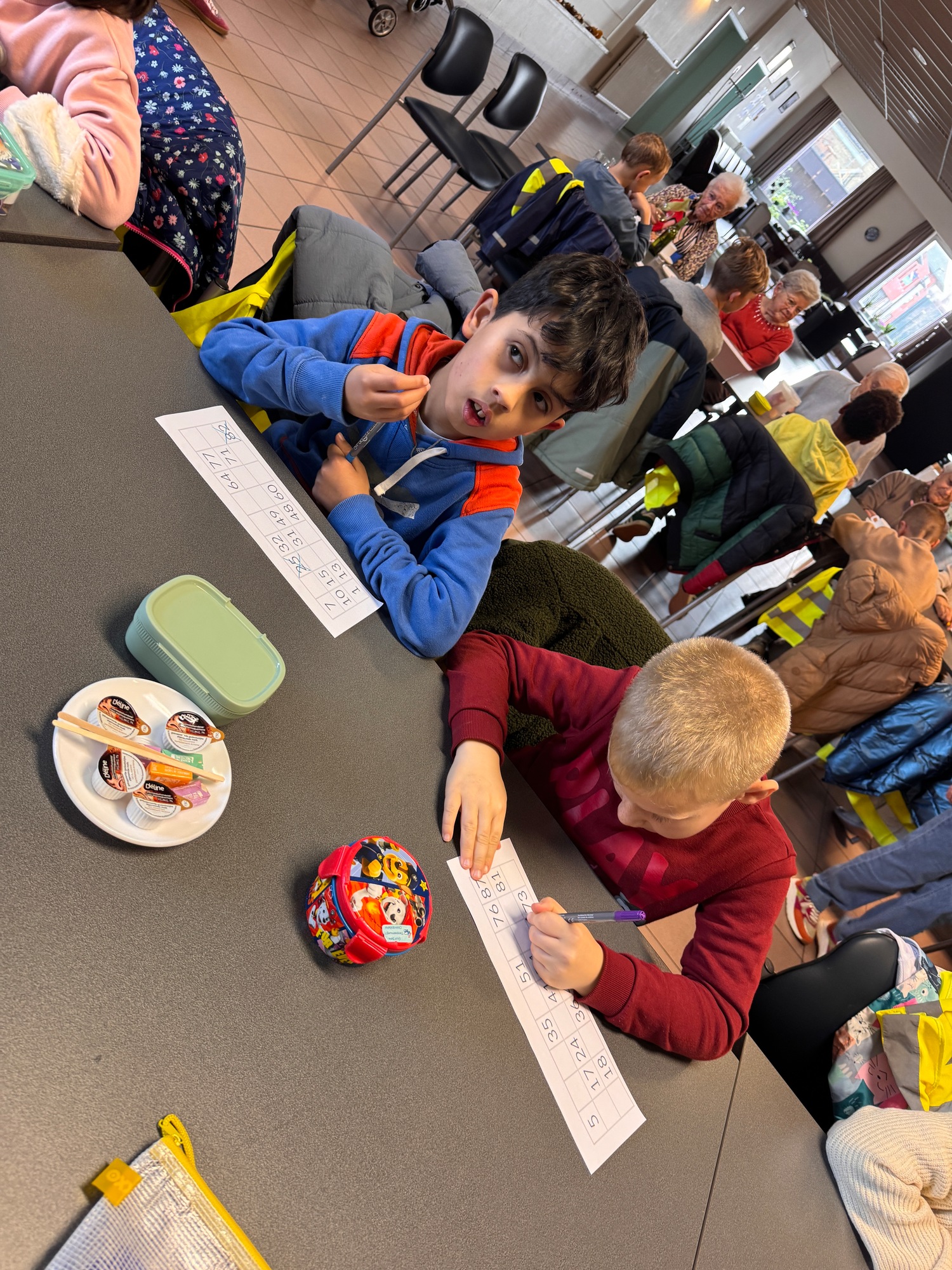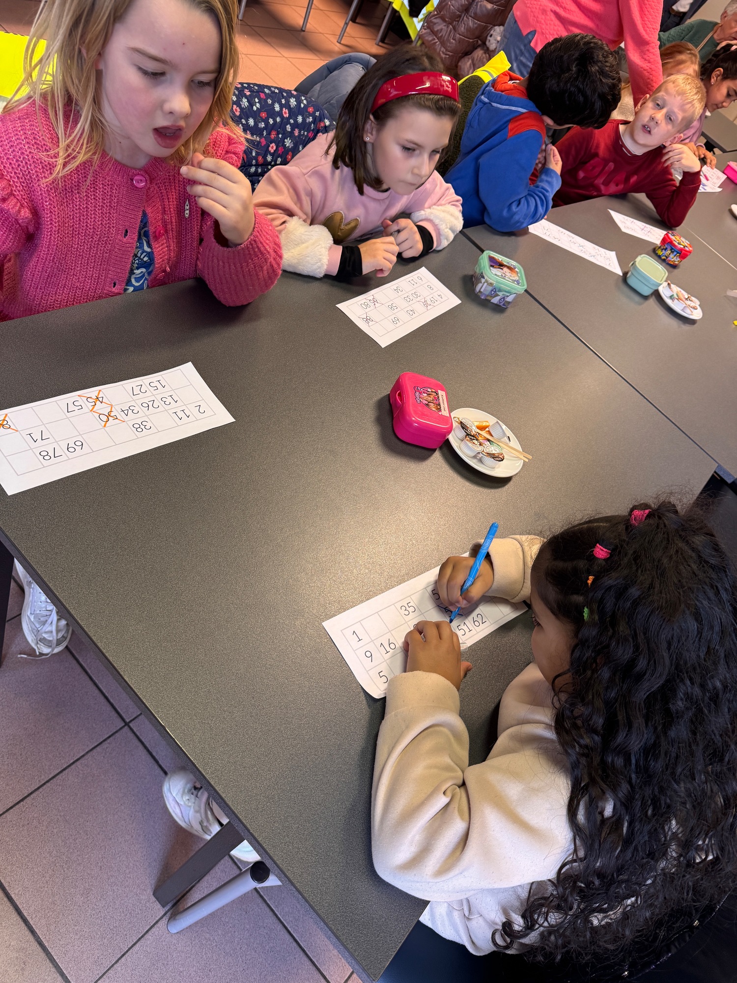 We speelden samen met enkele senioren een spelletje bingo. Gezellig samenzijn en ook de getallen tot 100 oefenen.