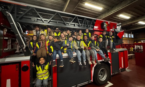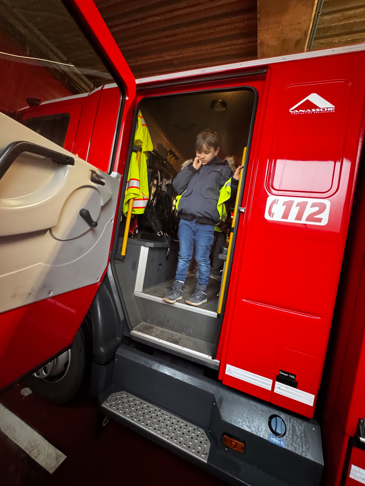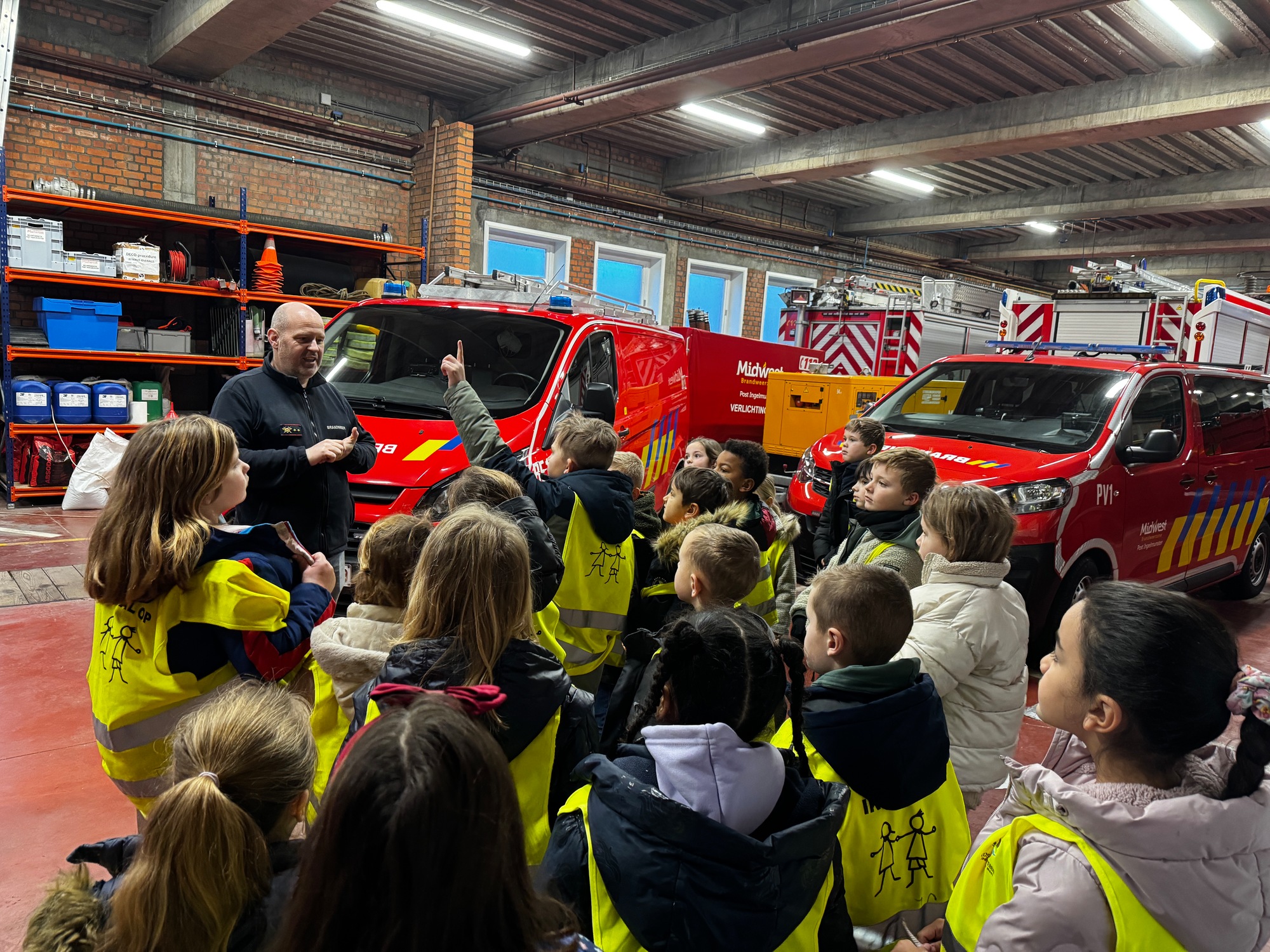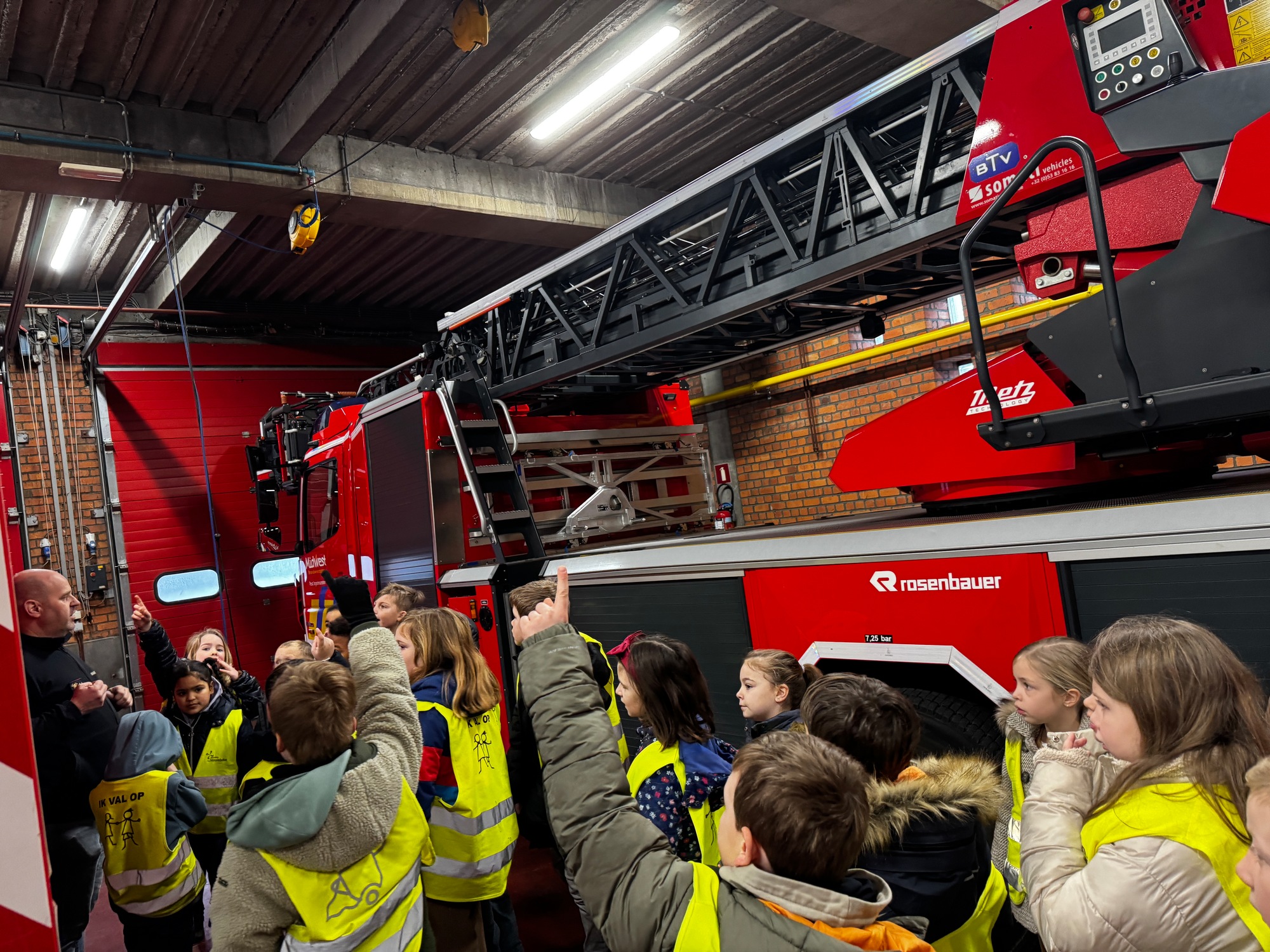 We gingen op bezoek naar de brandweer in Ingelmunster. Tijdens de uitleg kwam er een ECHTE oproep binnen van een woningbrand in Izegem. We konden dus alles live meemaken!!! De brandweermannen en -vrouwen kwamen binnengestormd en in 2 minuten waren ze aangekleed en reden ze met loeiende sirenes weg. Gelukkig was het vals alarm. Iemand had 112 gebeld omdat hij/zij veel zwarte rook uit een schoorsteen zag komen. Het was heel spannend!