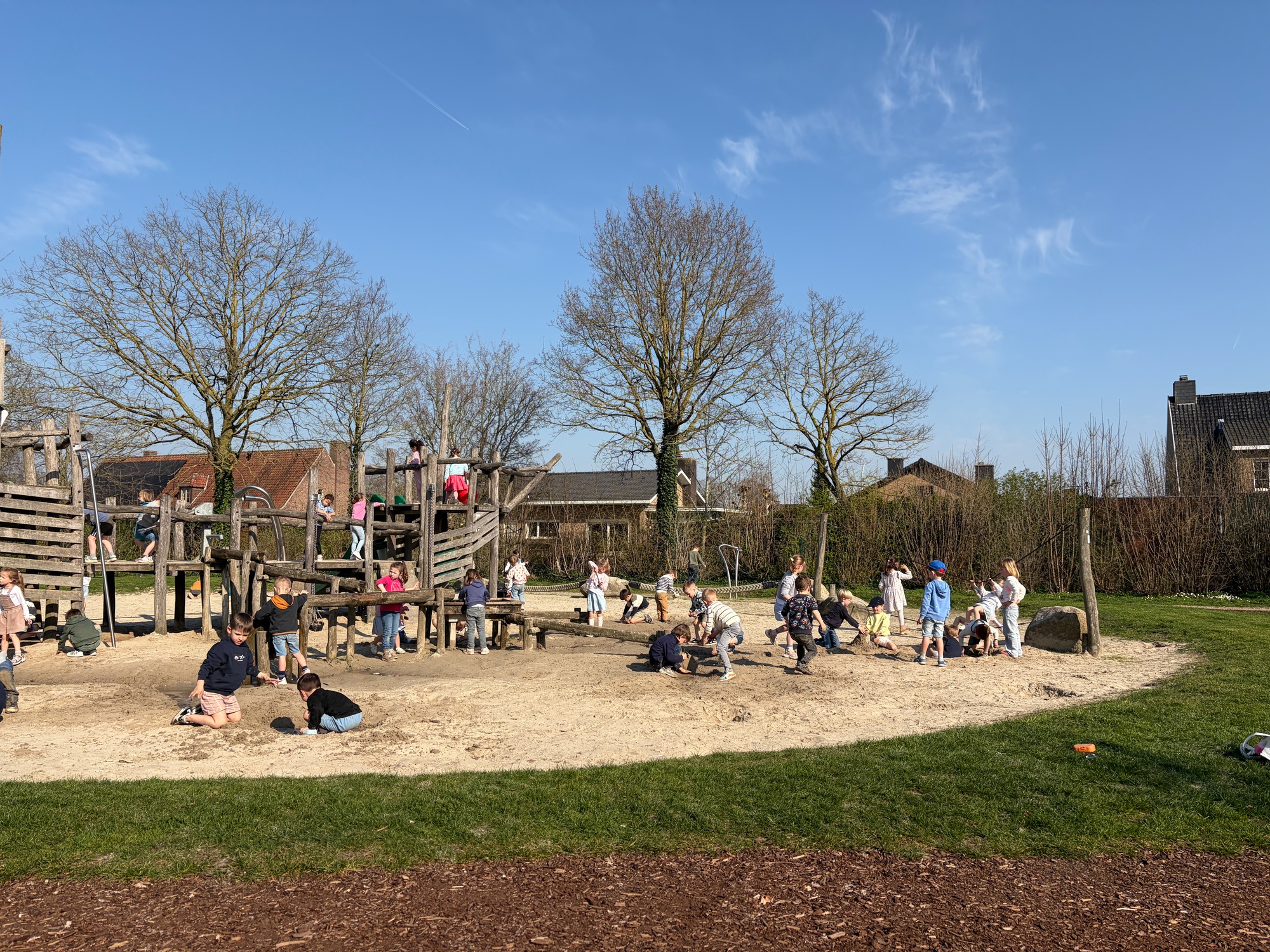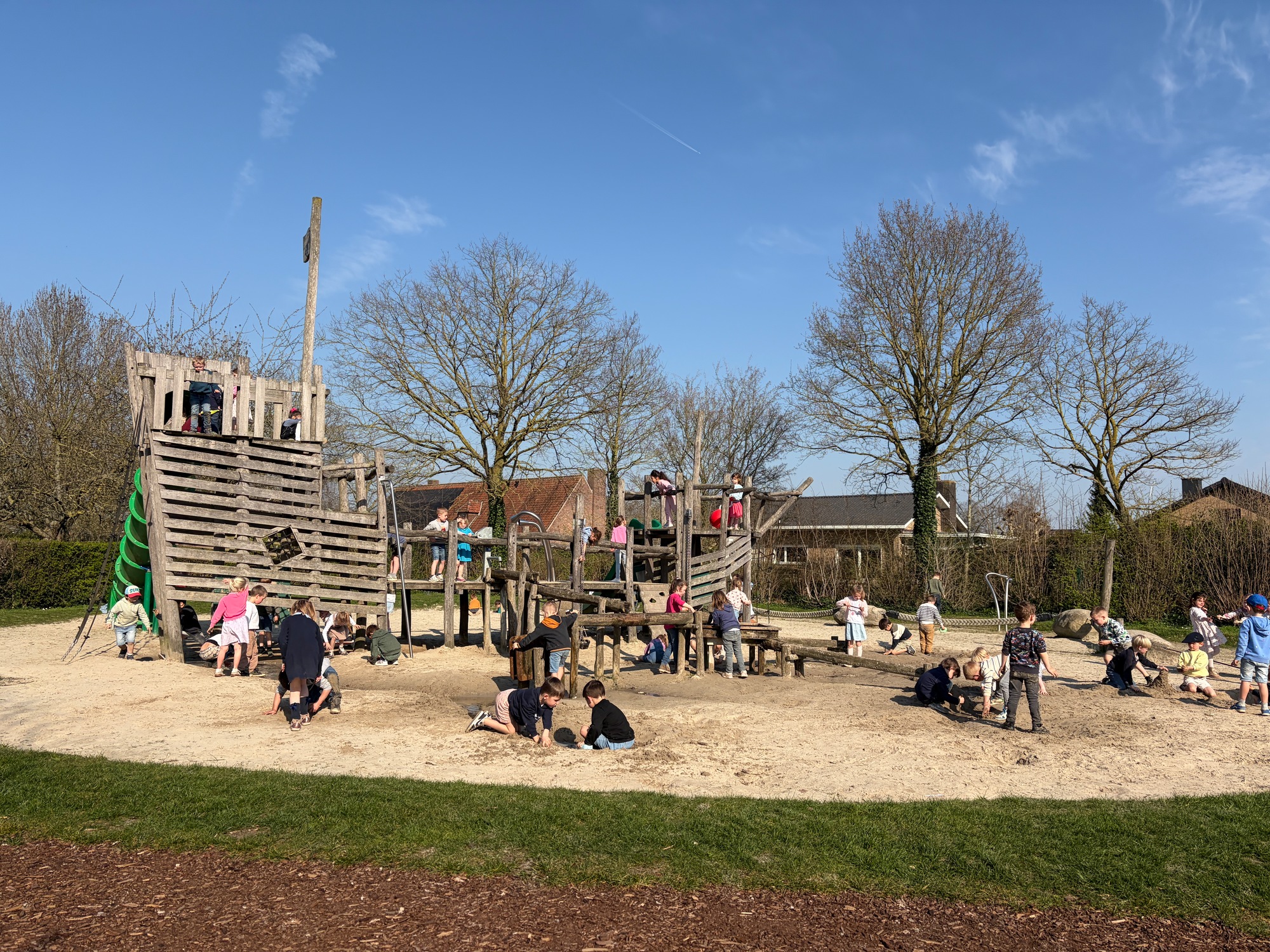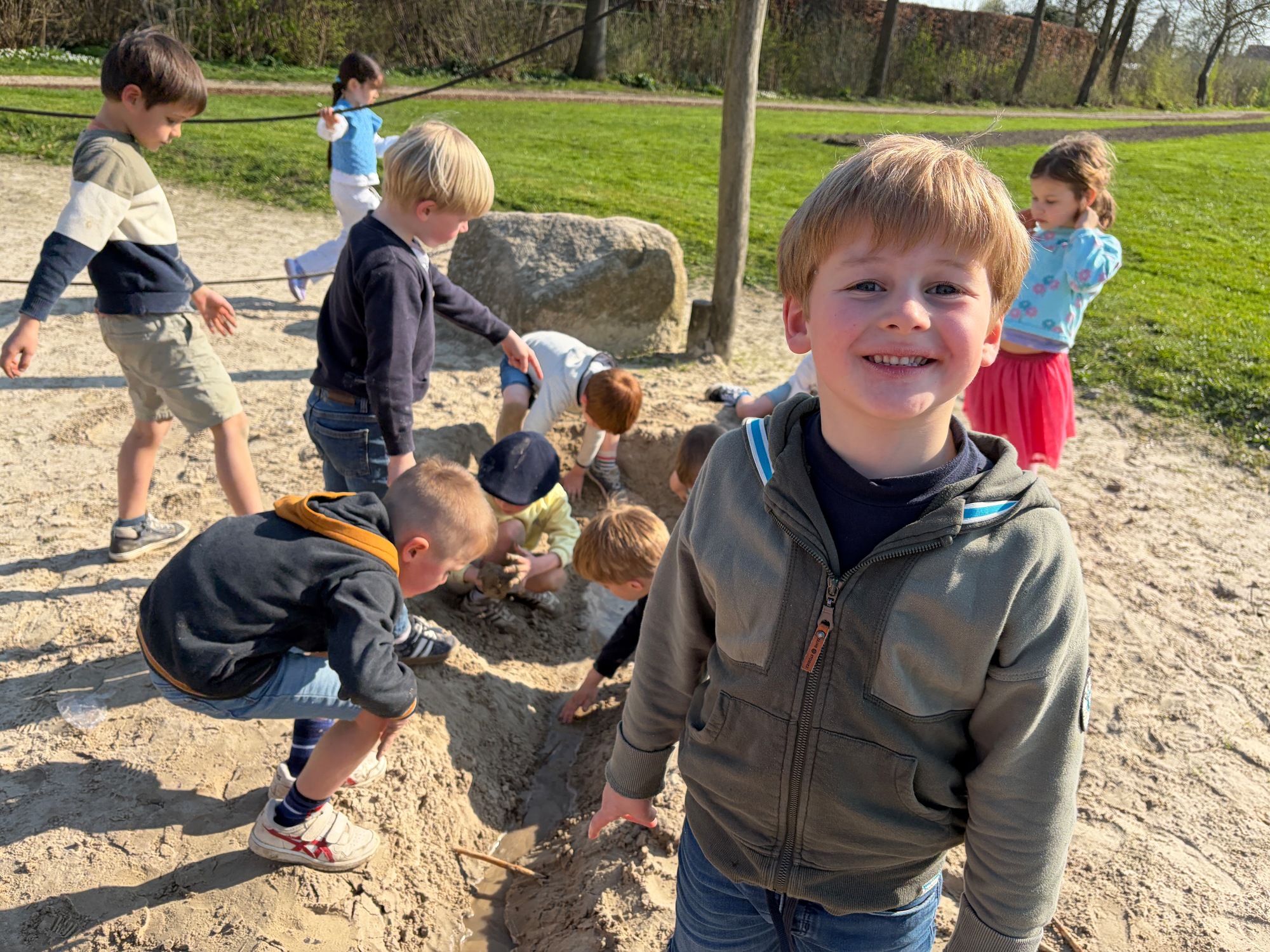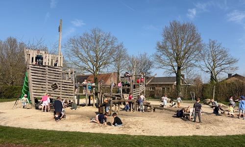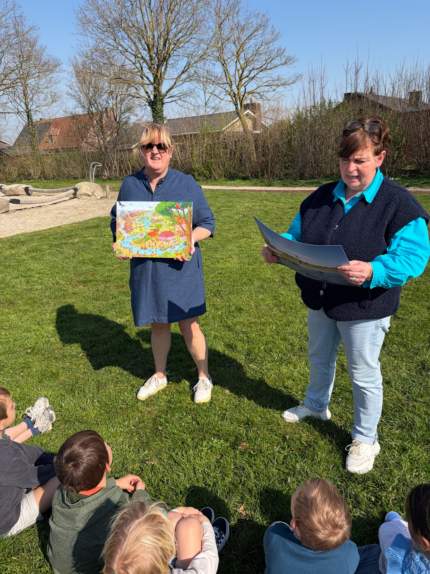Samen met de derde kleuterklassen gingen we naar de Groene Long en vertelden we het verhaal over de rivier Maranon in San Jorge (Peru).