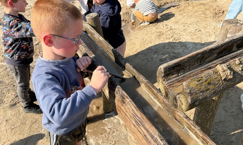Daarna gingen we aan de slag om de rivier na te maken en zorgden we ervoor dat het water niet vervuild werd Het is nu tijd voor actie!