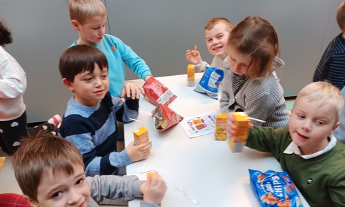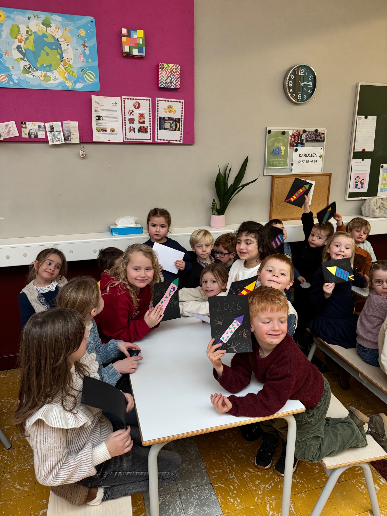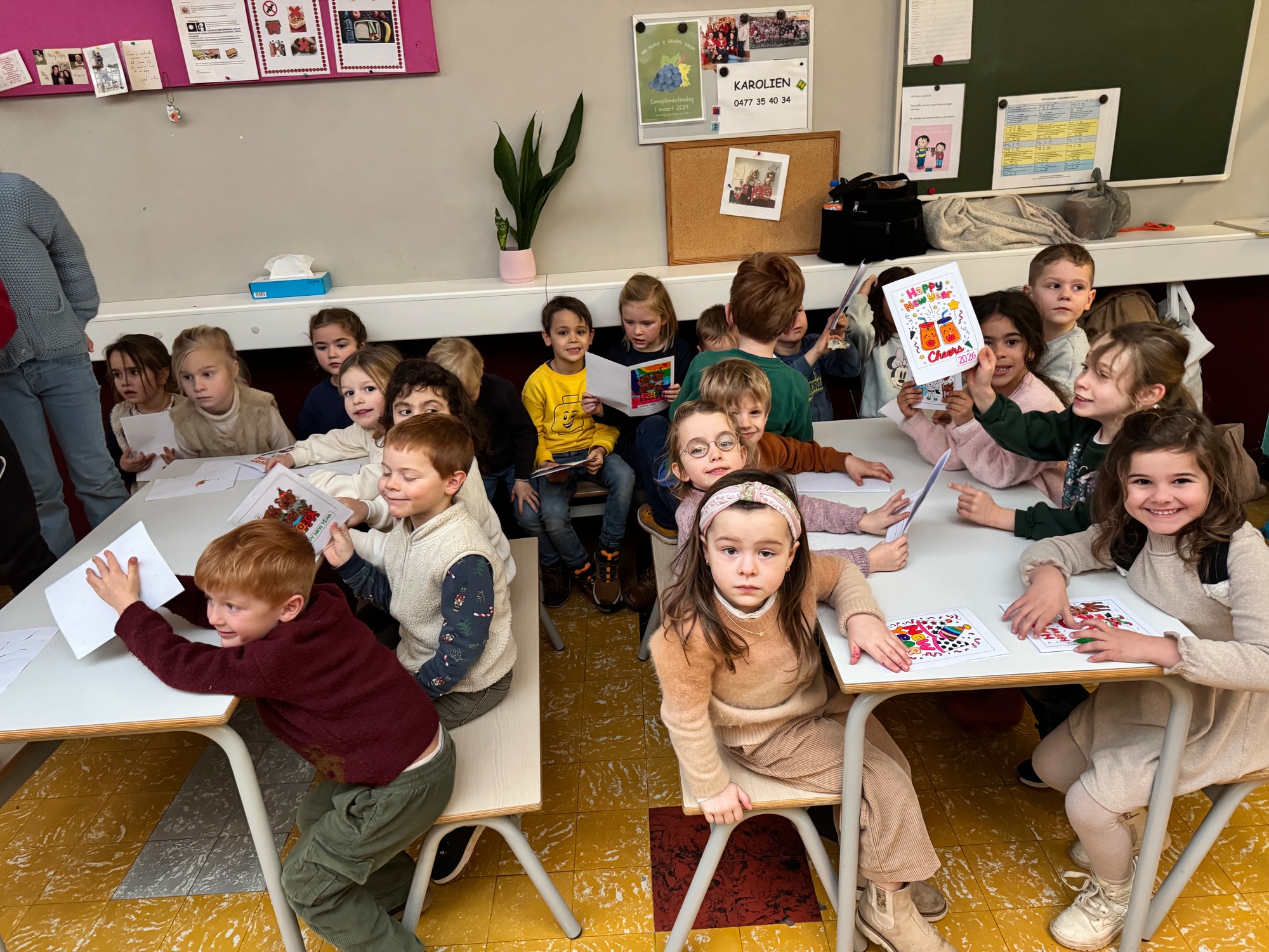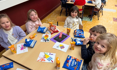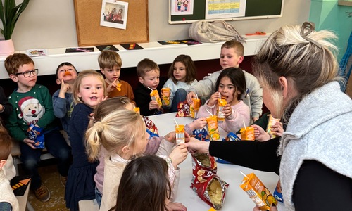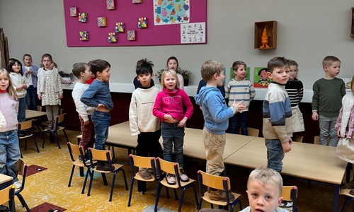 Naar jaarlijkse traditie vierden we ook dit jaar onze nieuwjaarsreceptie met alle kleuters van het derde kleuter en de leerlingen van het eerste leerjaar.