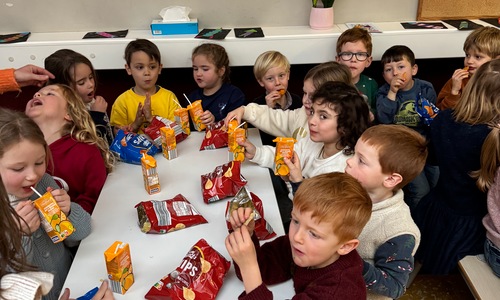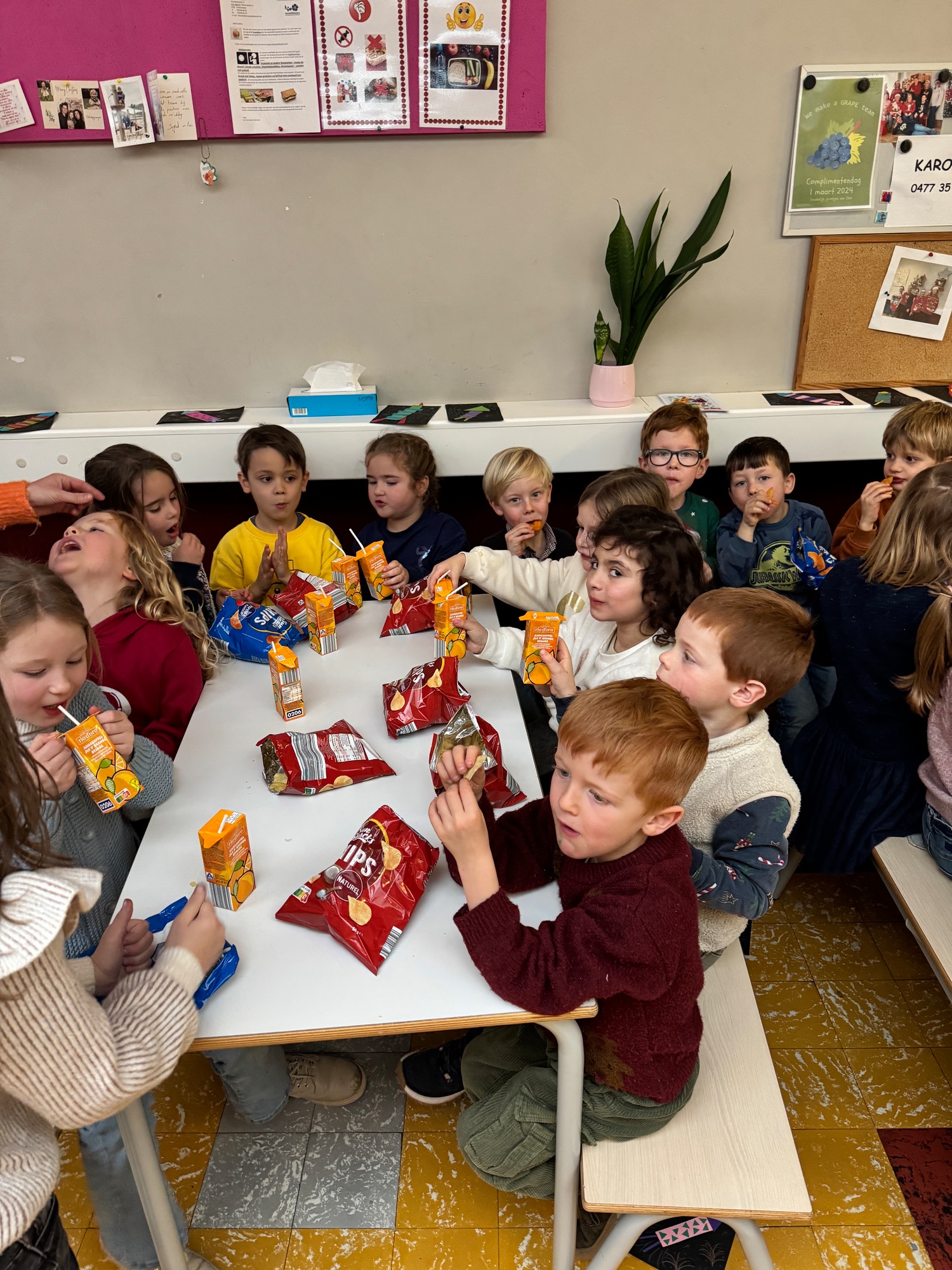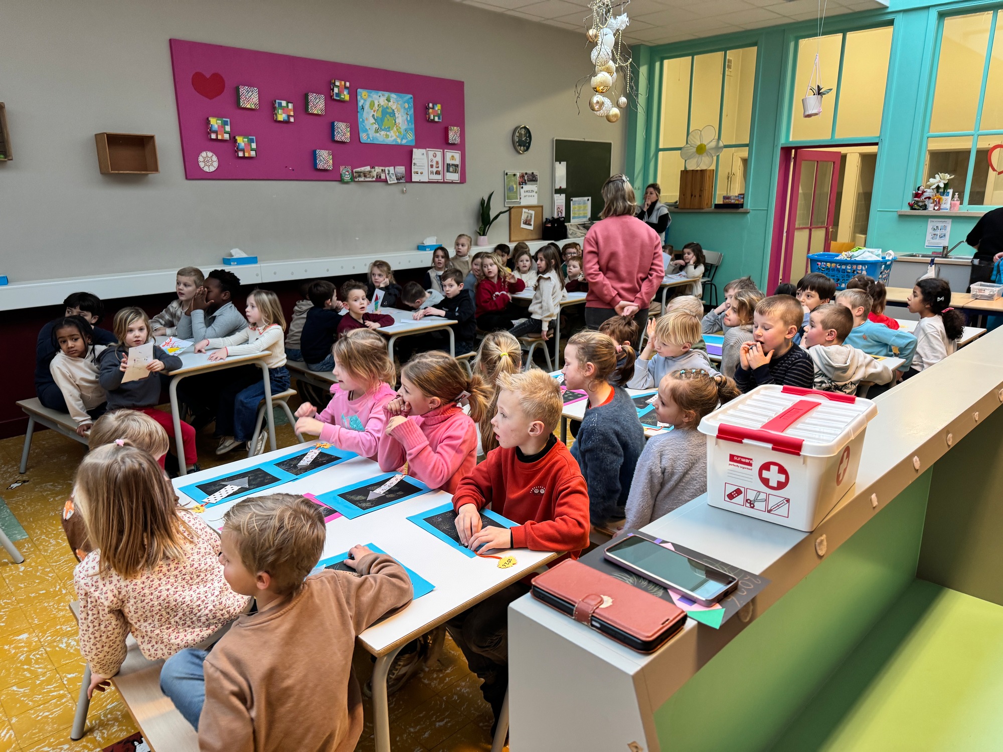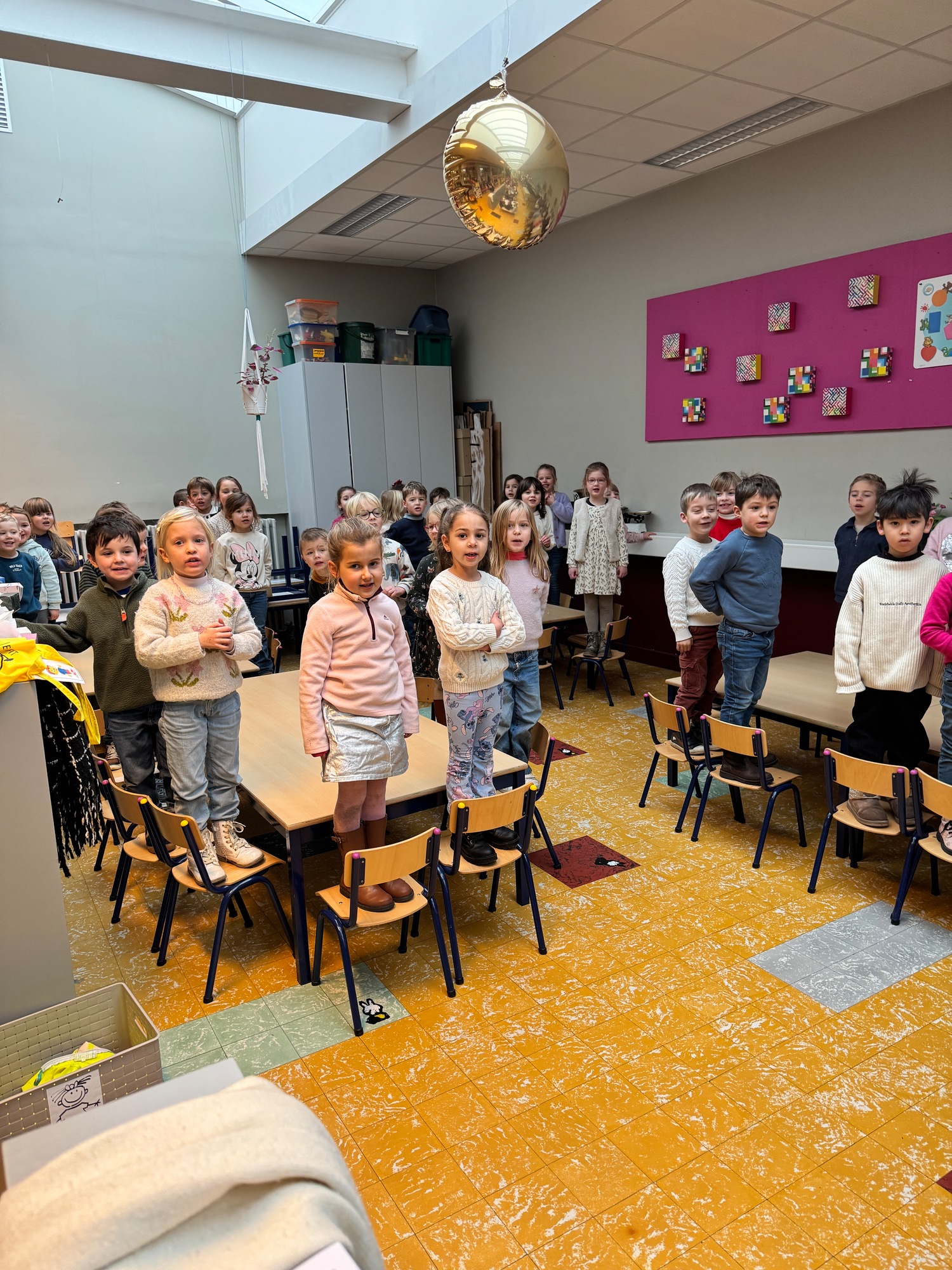 Naar jaarlijkse traditie vierden we ook dit jaar onze nieuwjaarsreceptie met alle kleuters van het derde kleuter en de leerlingen van het eerste leerjaar.