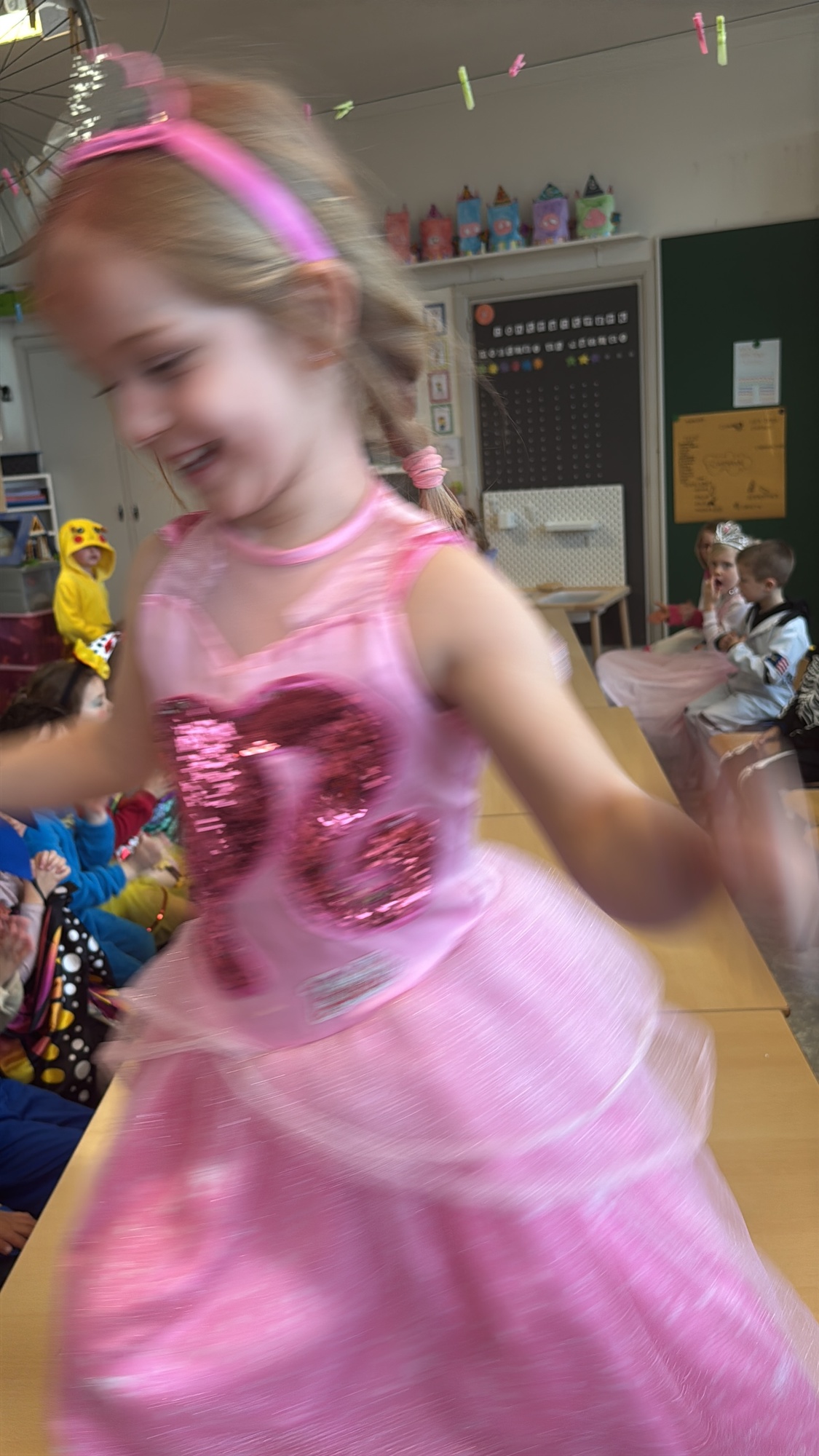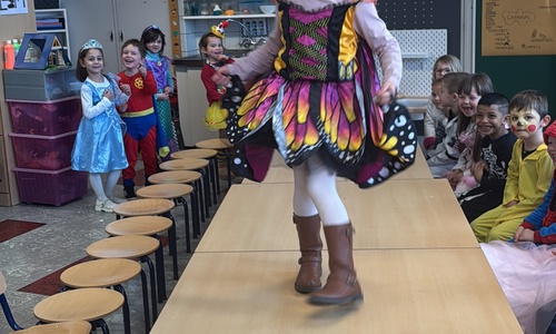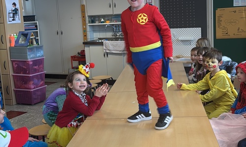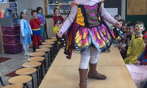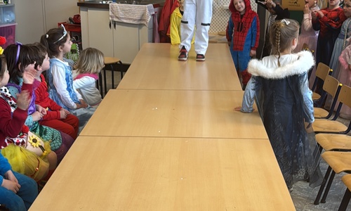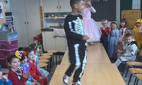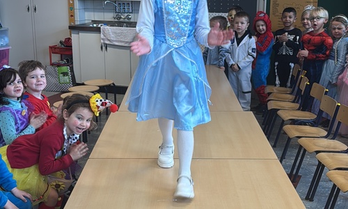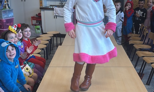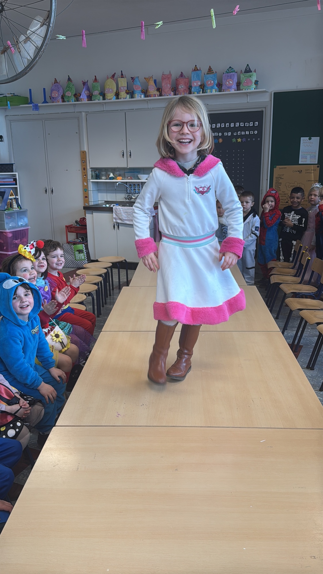 3KC Carnavalmodeshow op de catwalk in de klas.