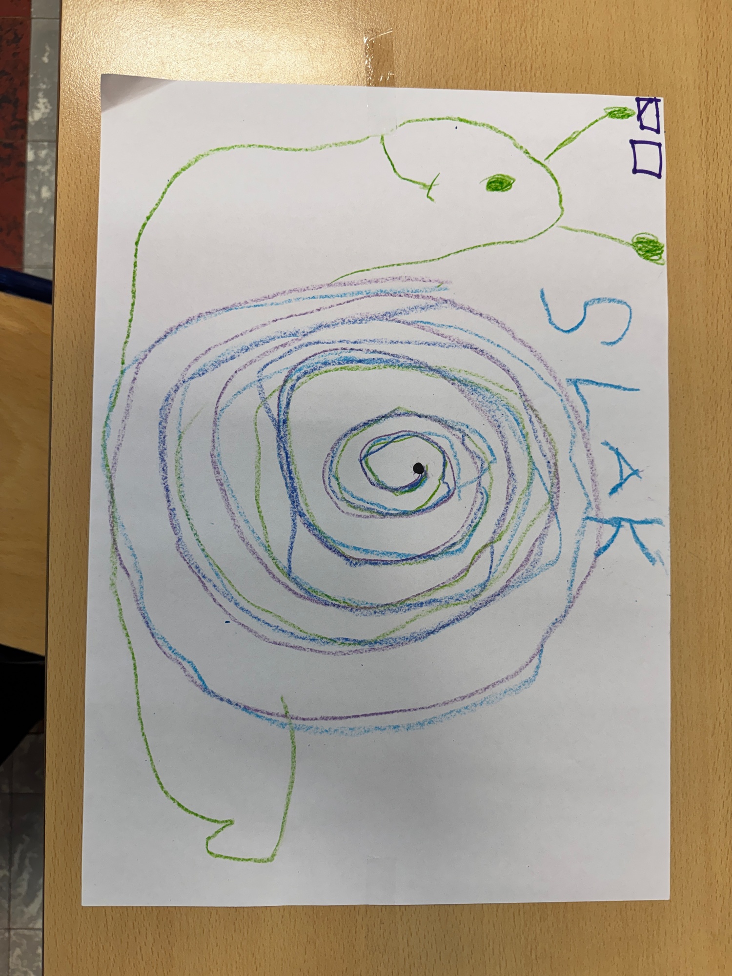 3KC Krullenbollen jullie mee? De slak uit het verhaal: Gelukkig nieuwjaar slak!