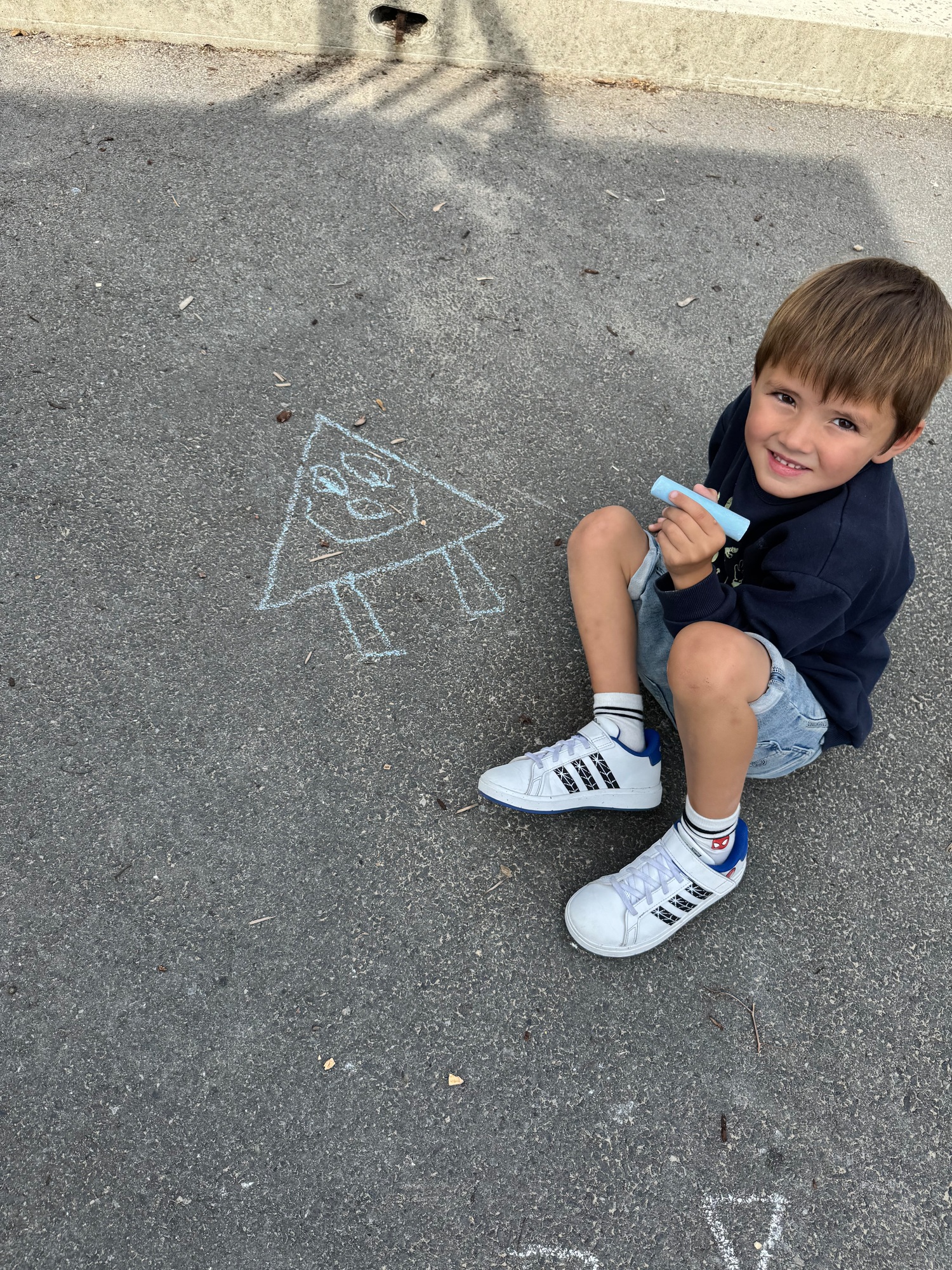 3KC Krullenbollen jullie mee? Meneertje Cirkel en Meneertje Driehoek krijten op de grond in de wachtzone.