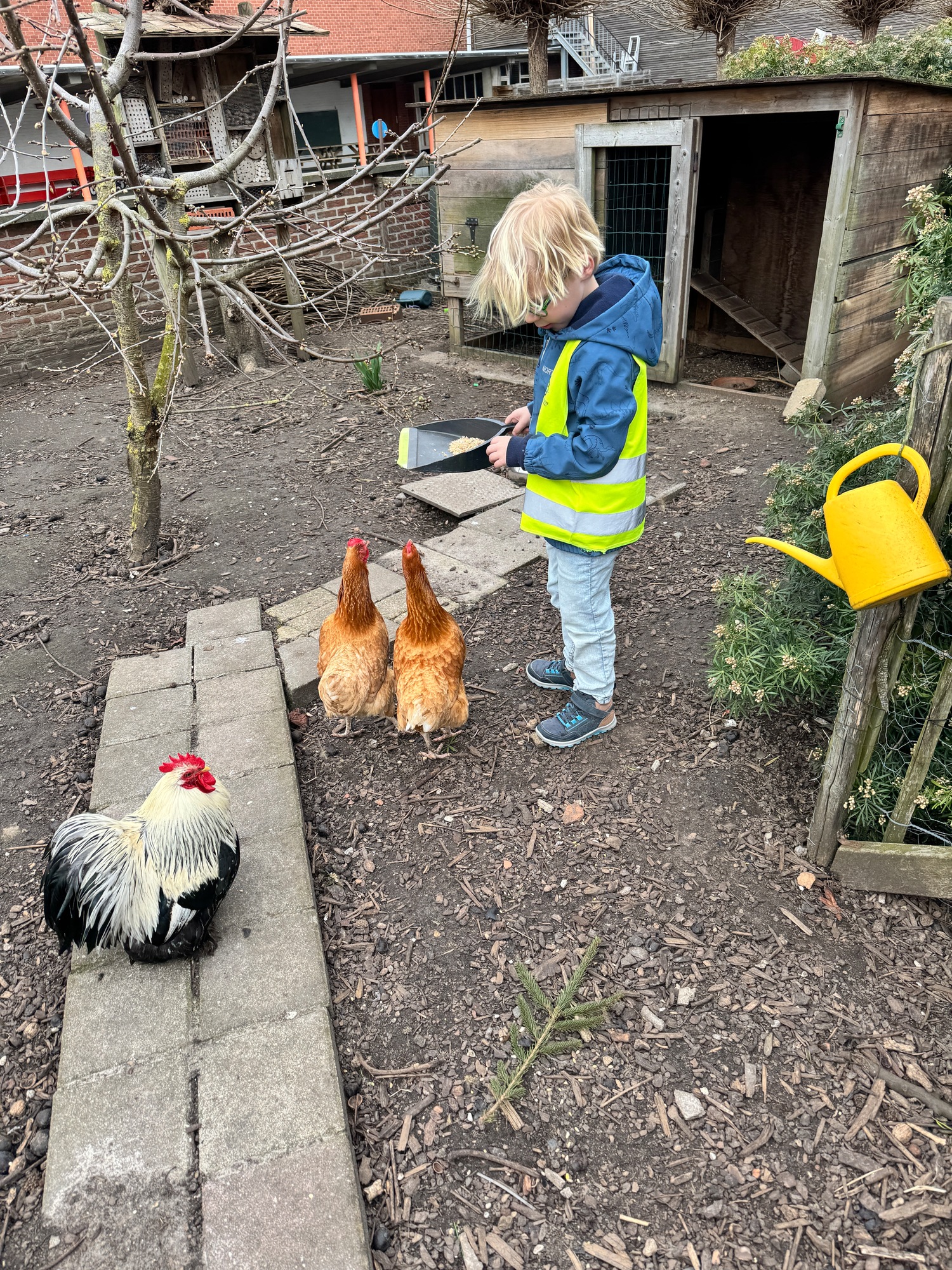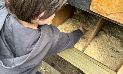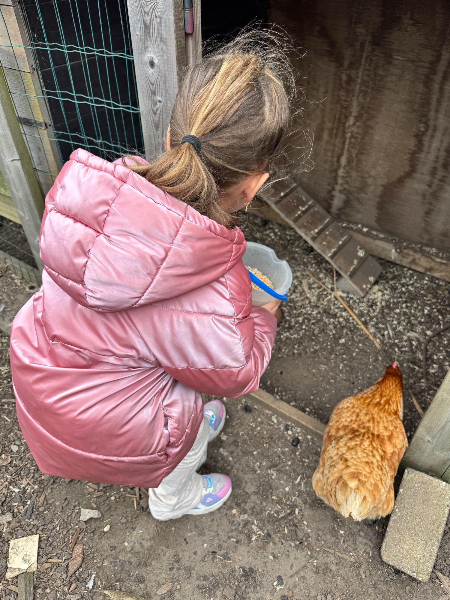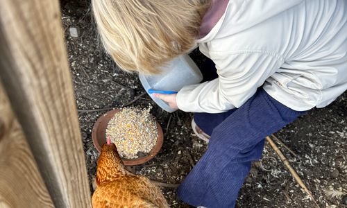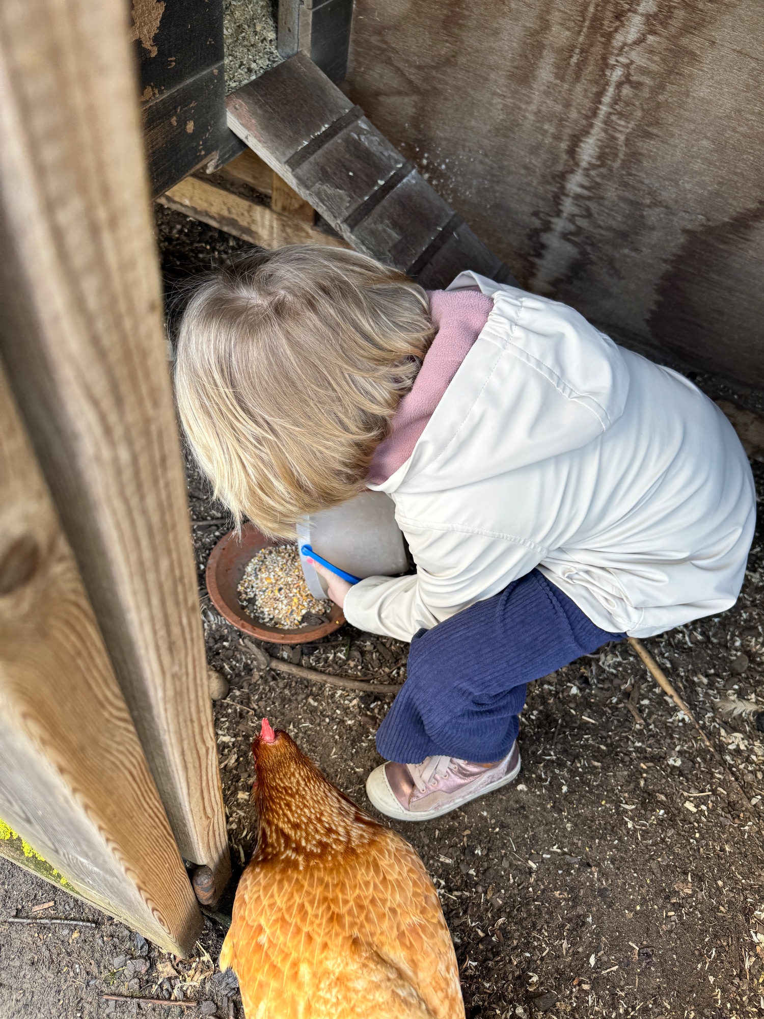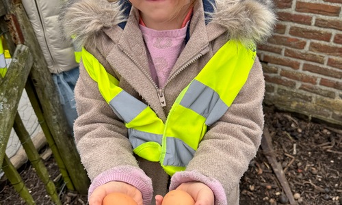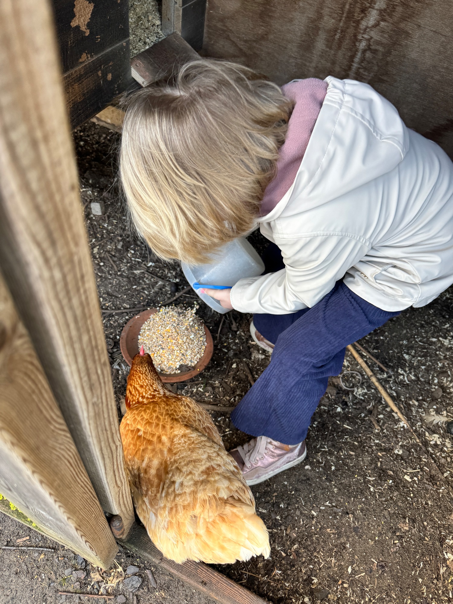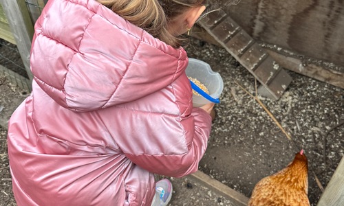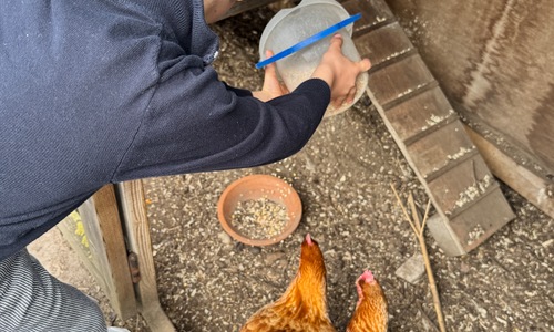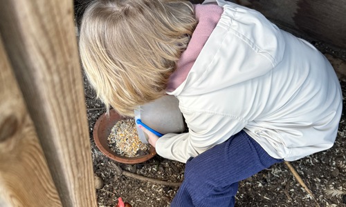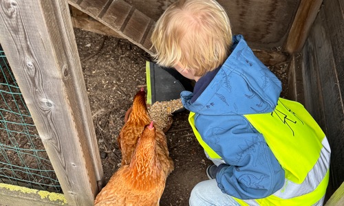 3KC Thema Rikki en Mia de kip: Onze kippen voeren en de eitjes roven in het kippenhok.
