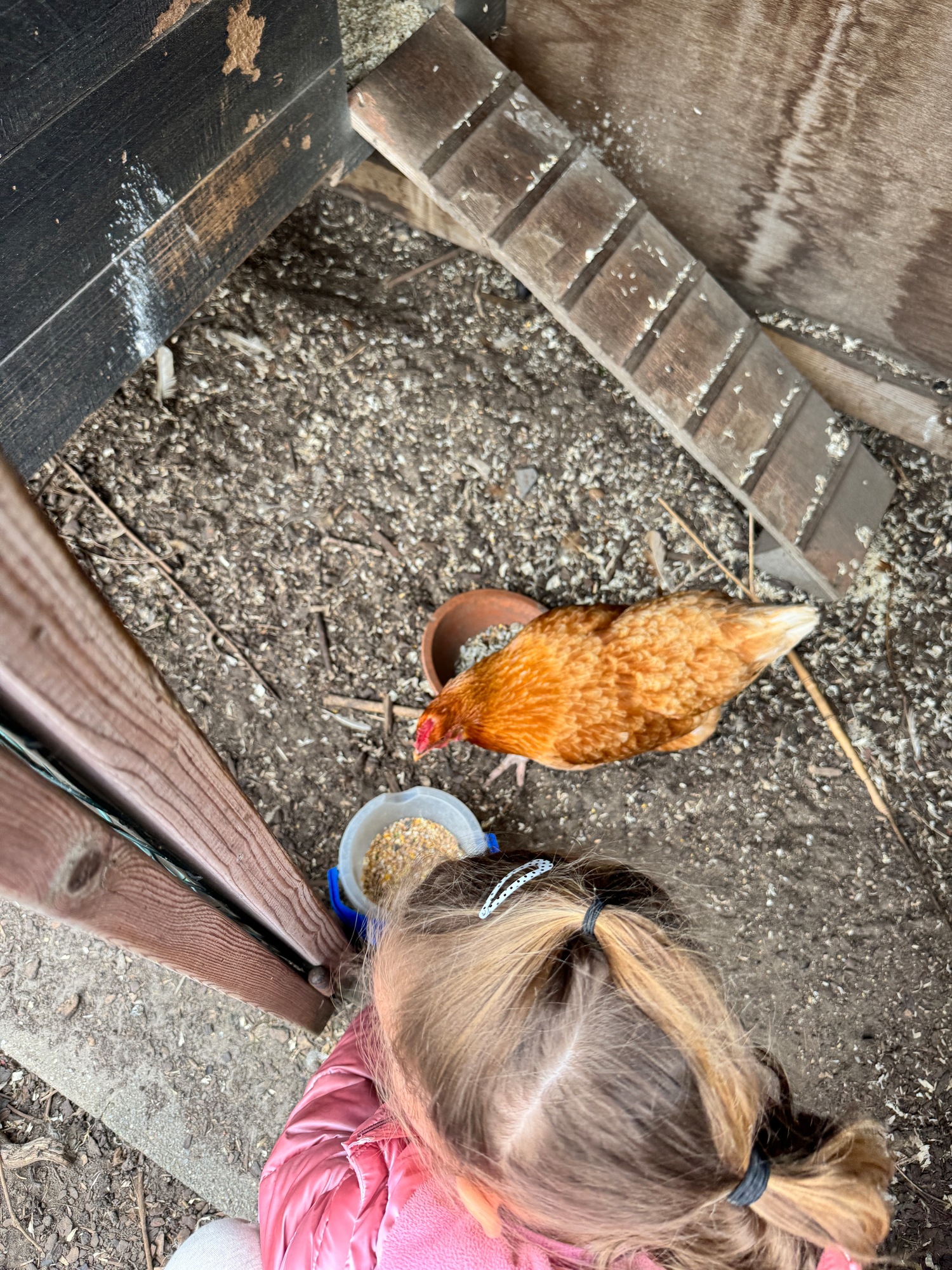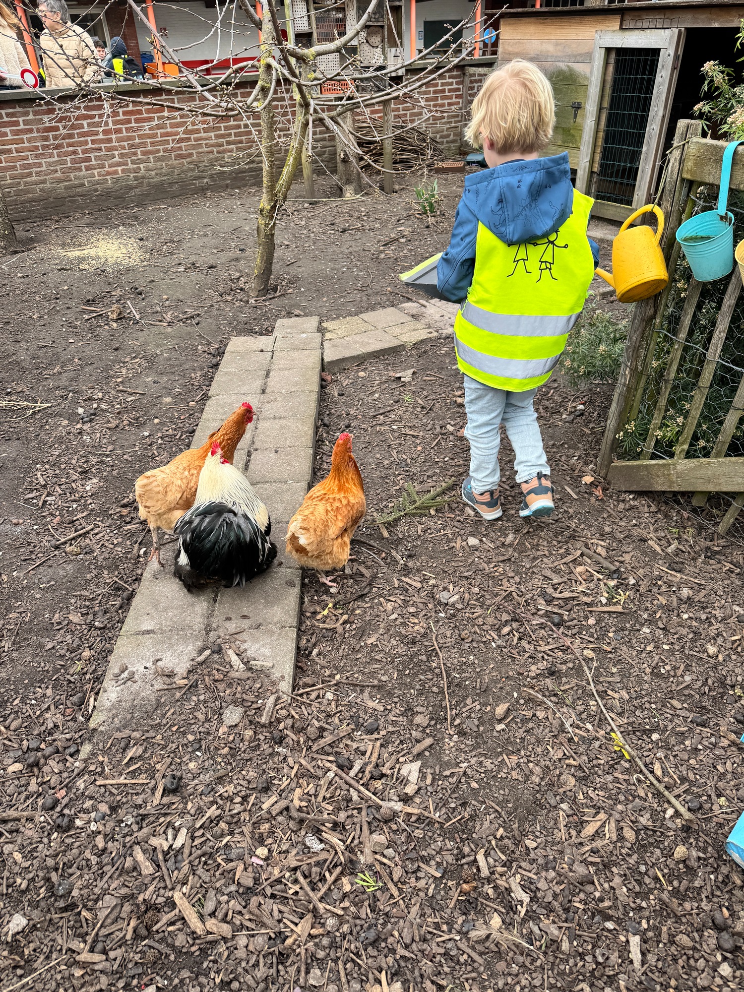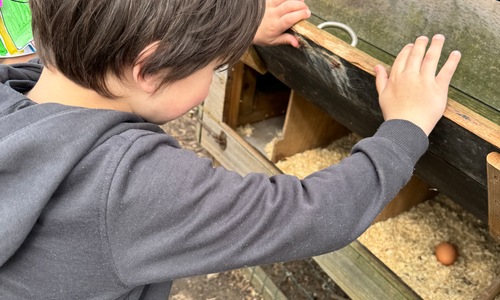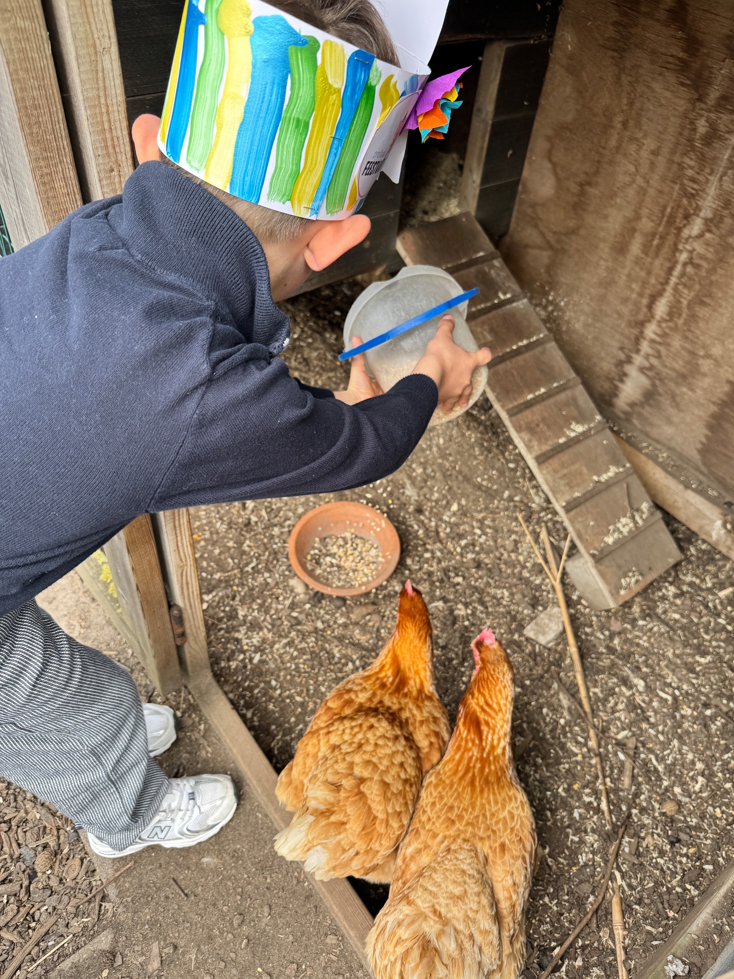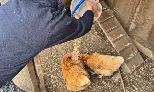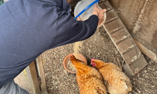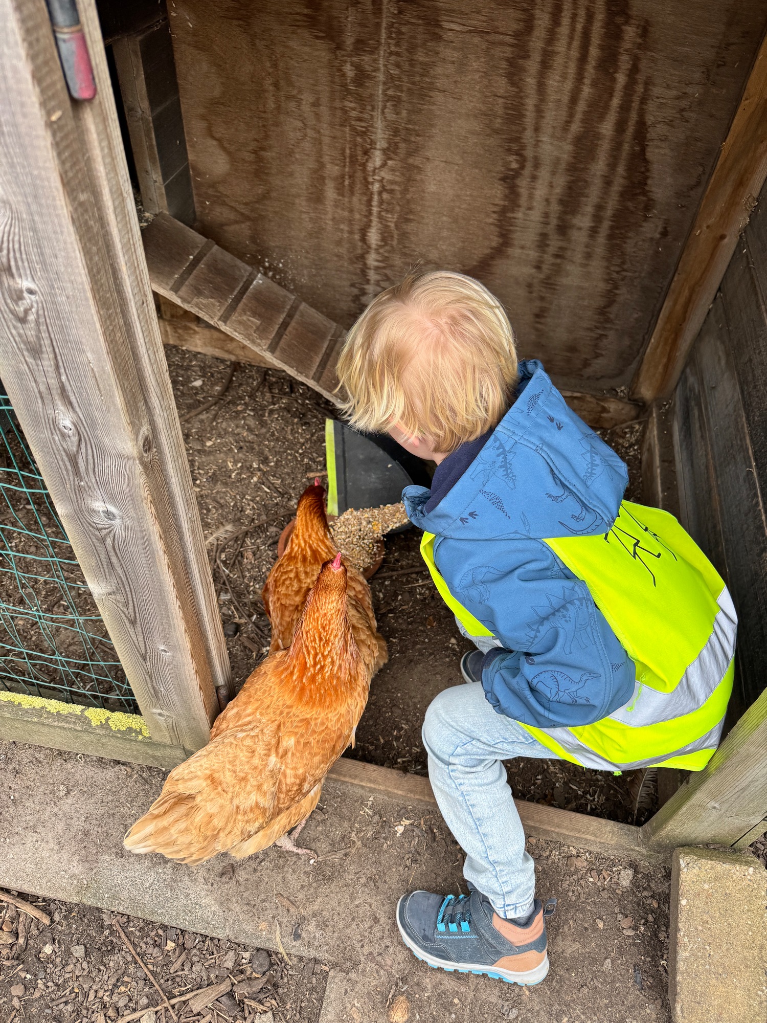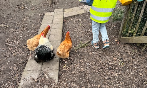 3KC Thema Rikki en Mia de kip: Onze kippen voeren en de eitjes roven in het kippenhok.