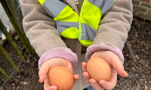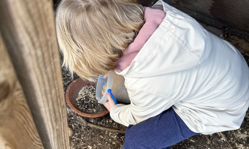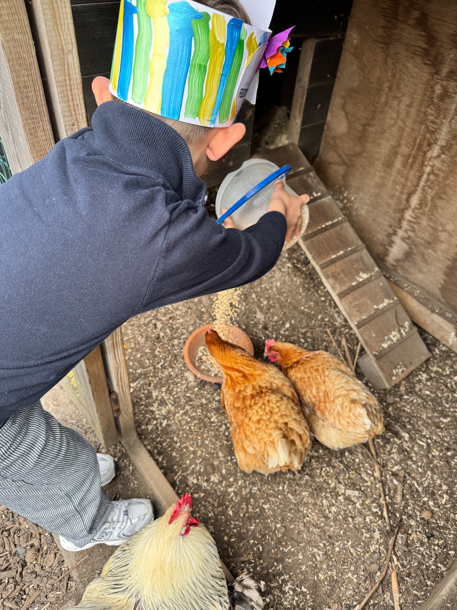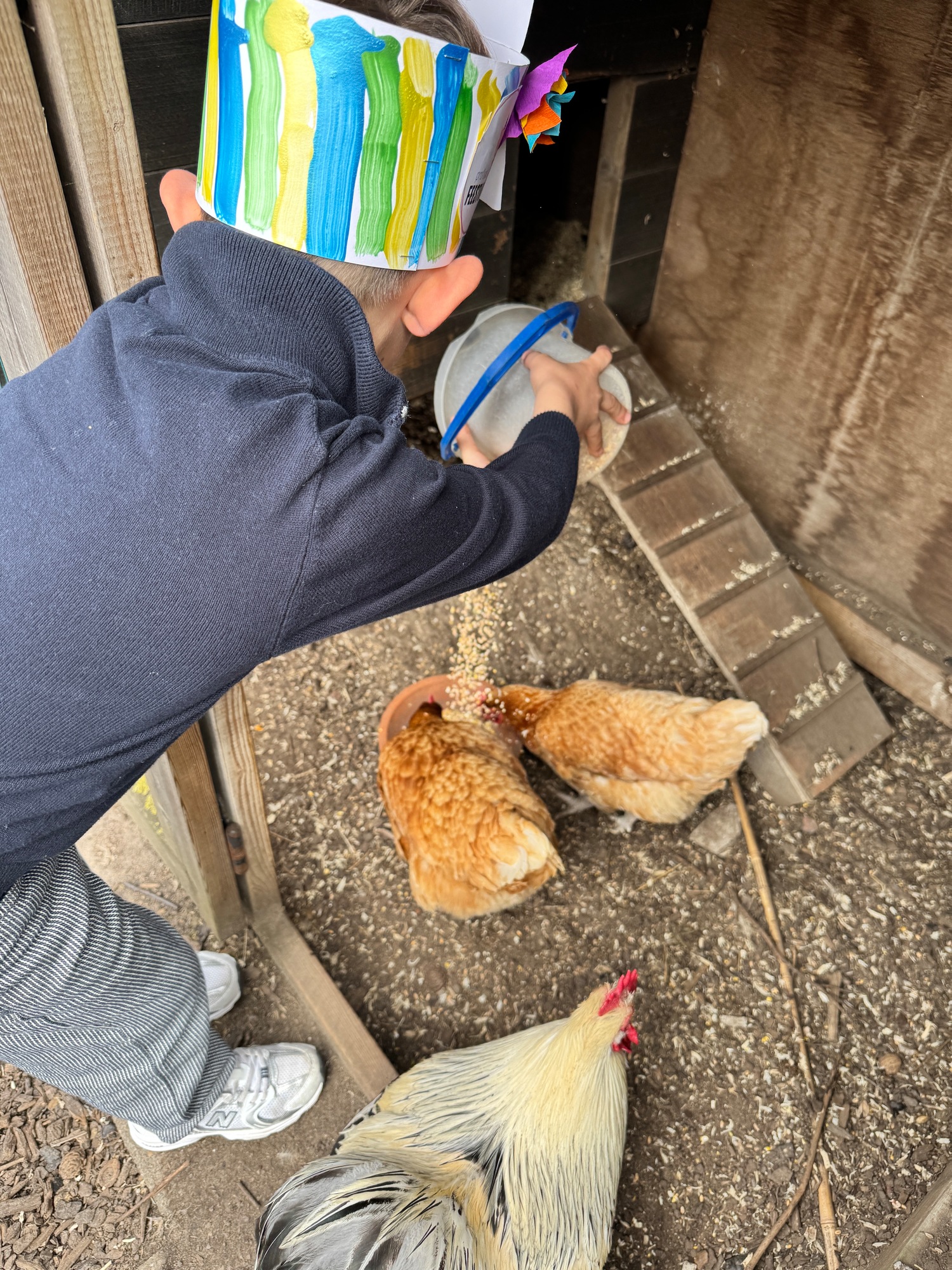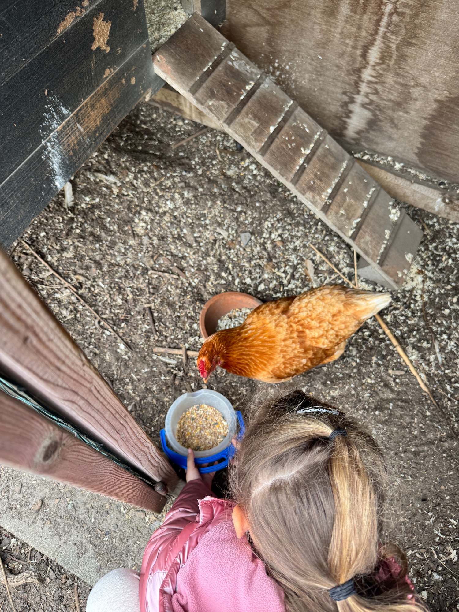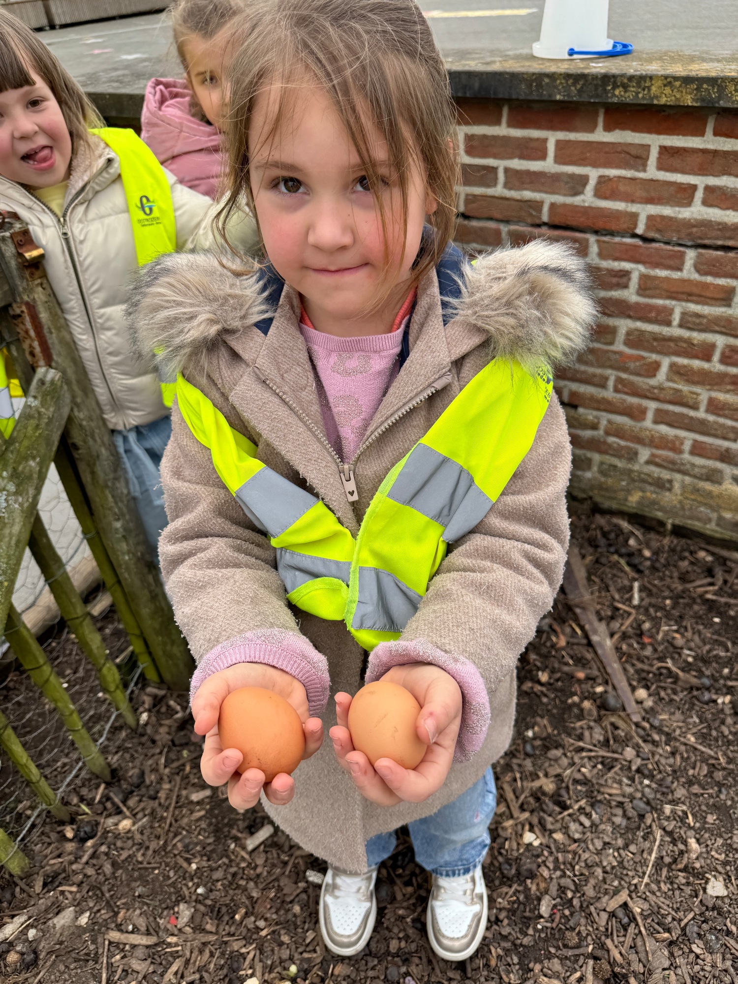 3KC Thema Rikki en Mia de kip: Onze kippen voeren en de eitjes roven in het kippenhok.