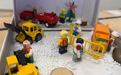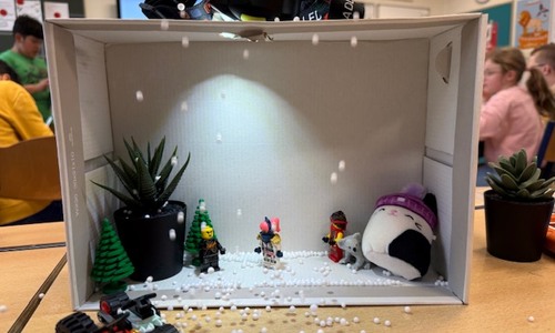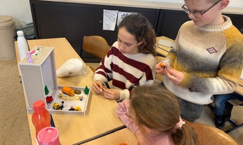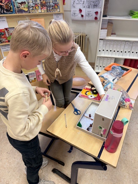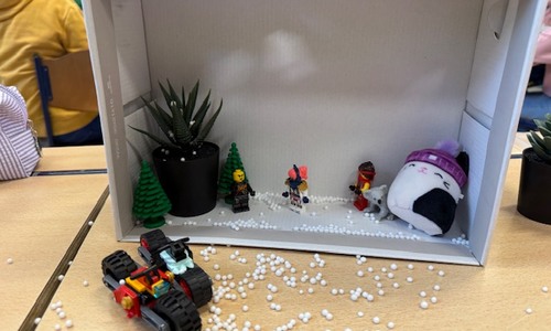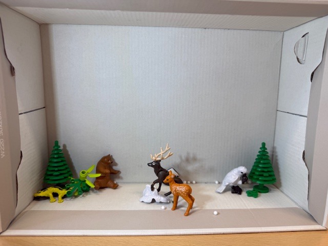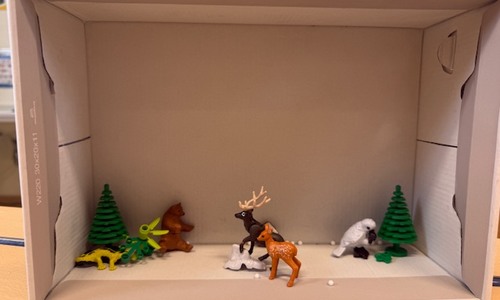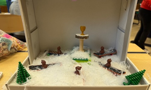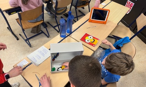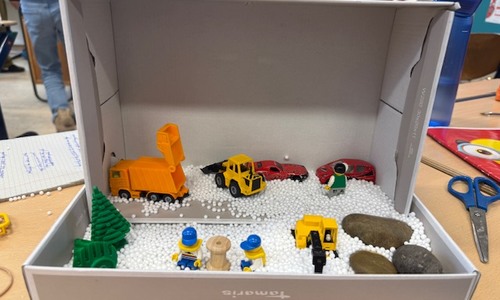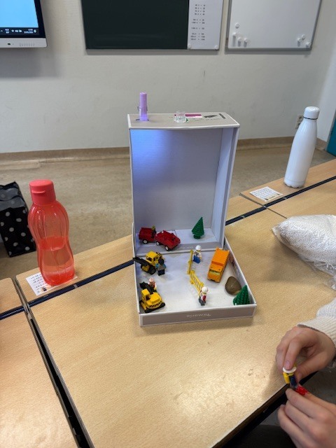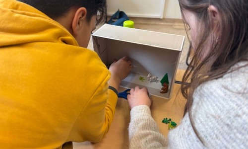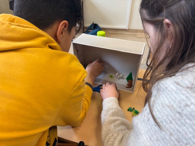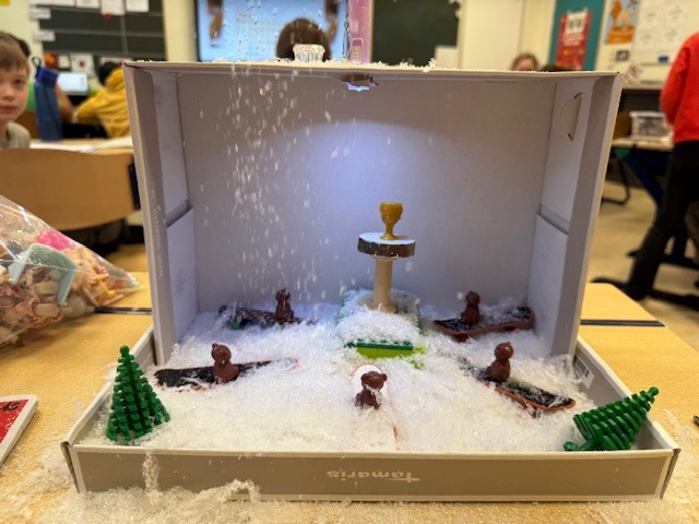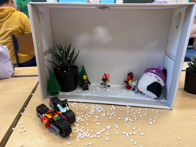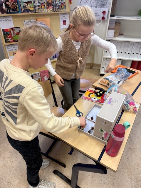 De laatste opdracht van Whizzkids deel 2 was een creatieve opdracht. De leerlingen moesten een diorama maken. We verzamelden heel wat materiaal en gingen per groep aan de slag.