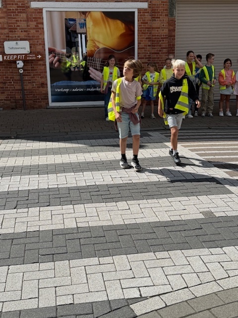 'Lang leve de fiets' is ons w.o. thema maar ook te voet gaan we op stap op zoek naar gevaarlijke en drukke verkeerspunten rond onze school. We oefenen ook om op een veilige manier het zebrapad over te steken.
