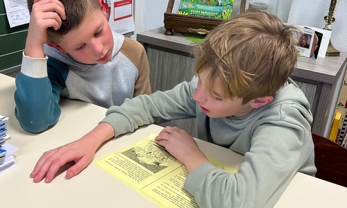 Meters en Peters lezen samen met de leerlingen van het vierde.