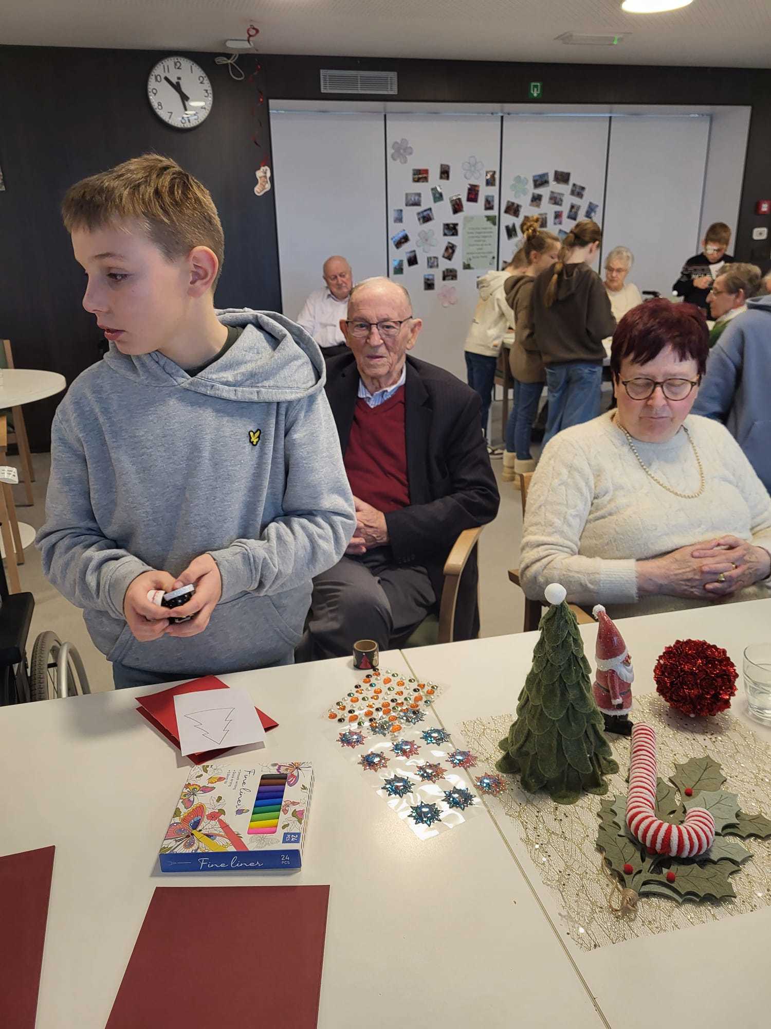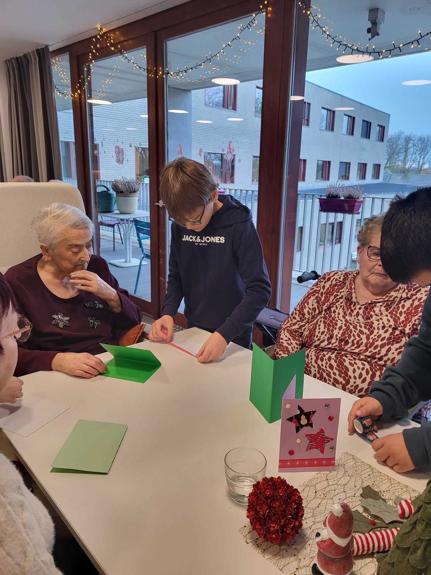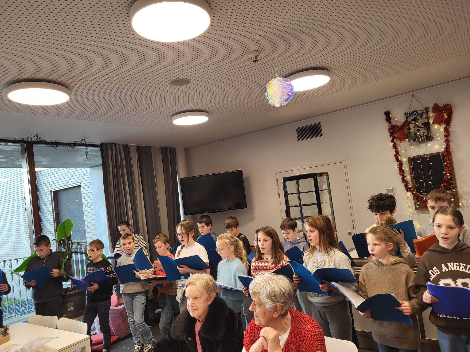 5B kerstliederen zingen en kerstkaarten maken voor de bewoners van het rusthuis