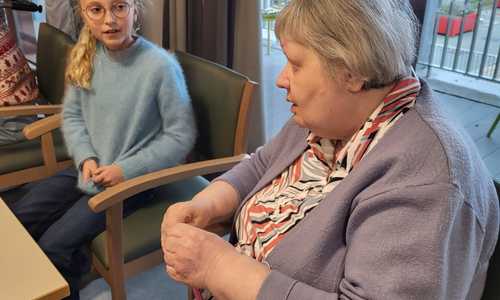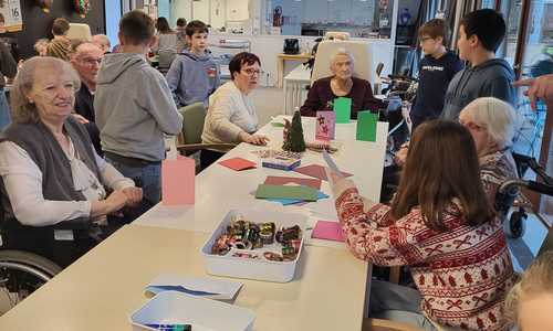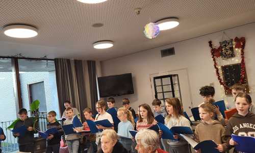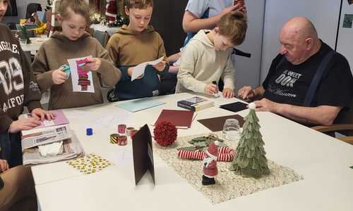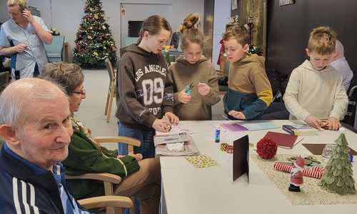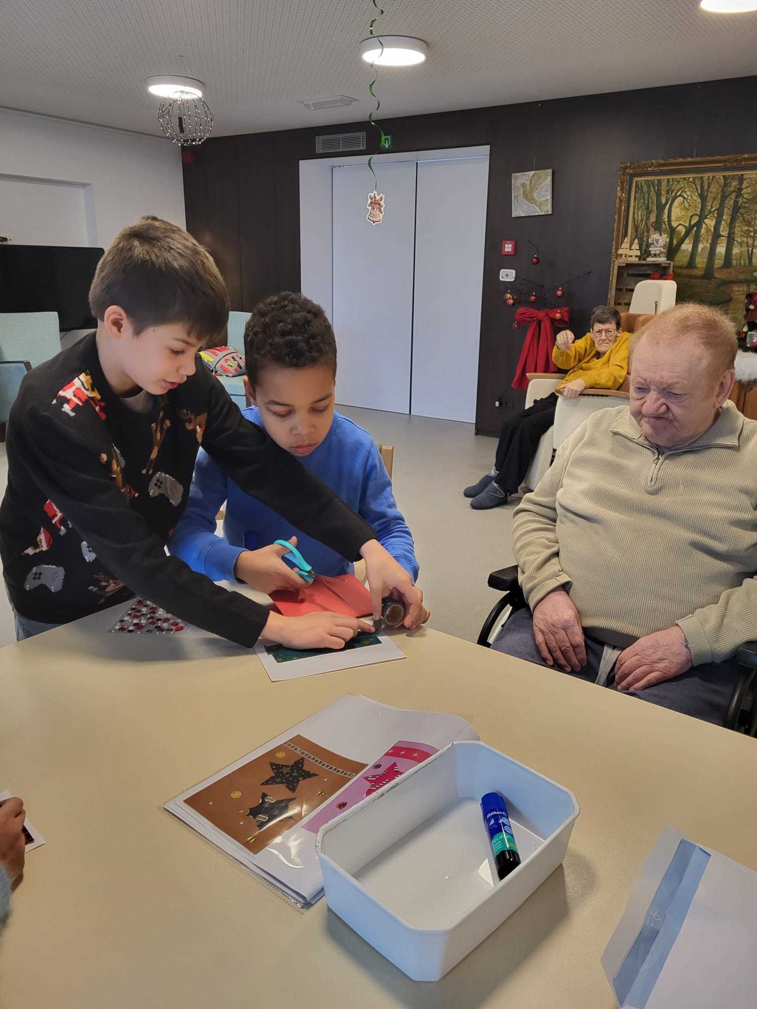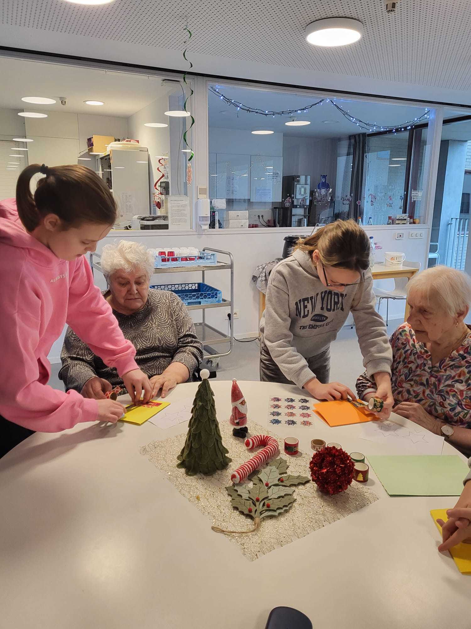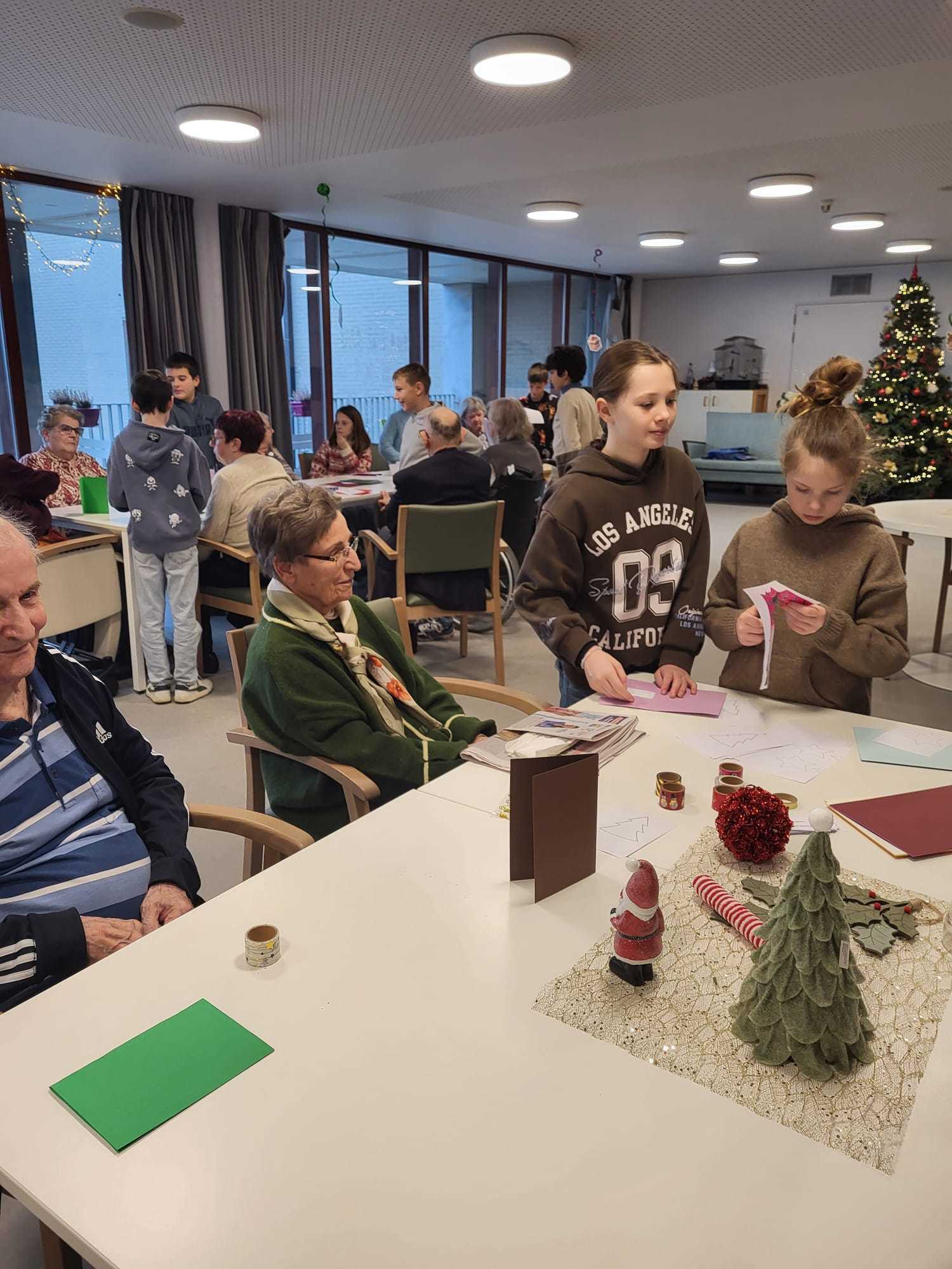 5B kerstliederen zingen en kerstkaarten maken voor de bewoners van het rusthuis