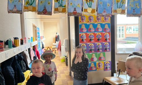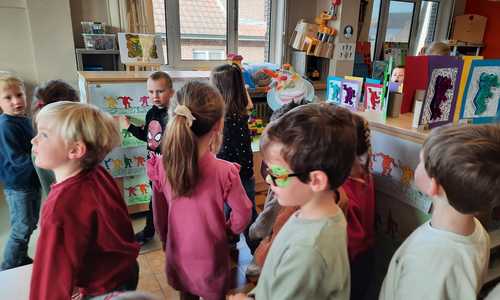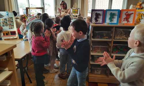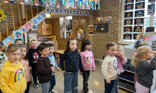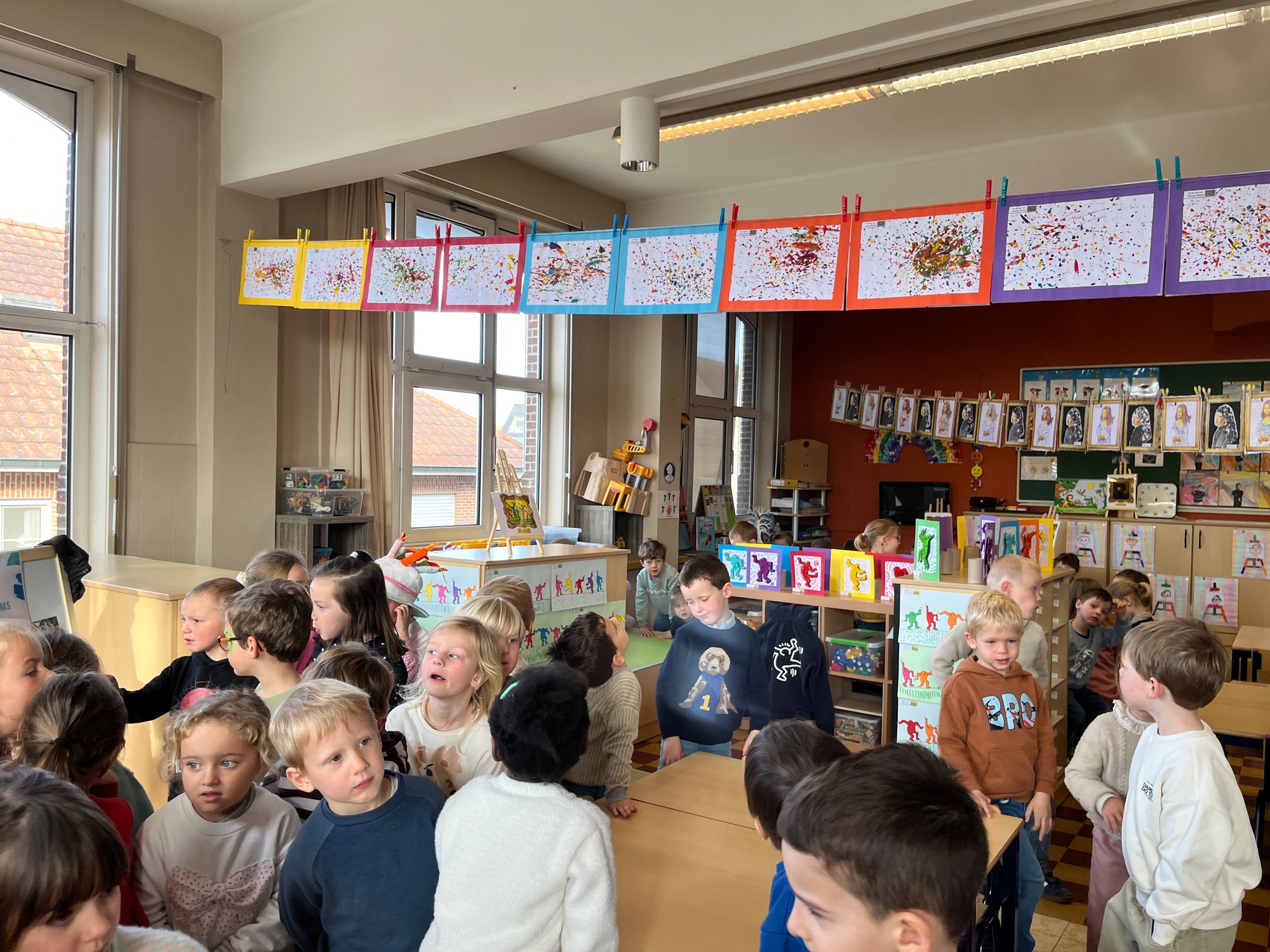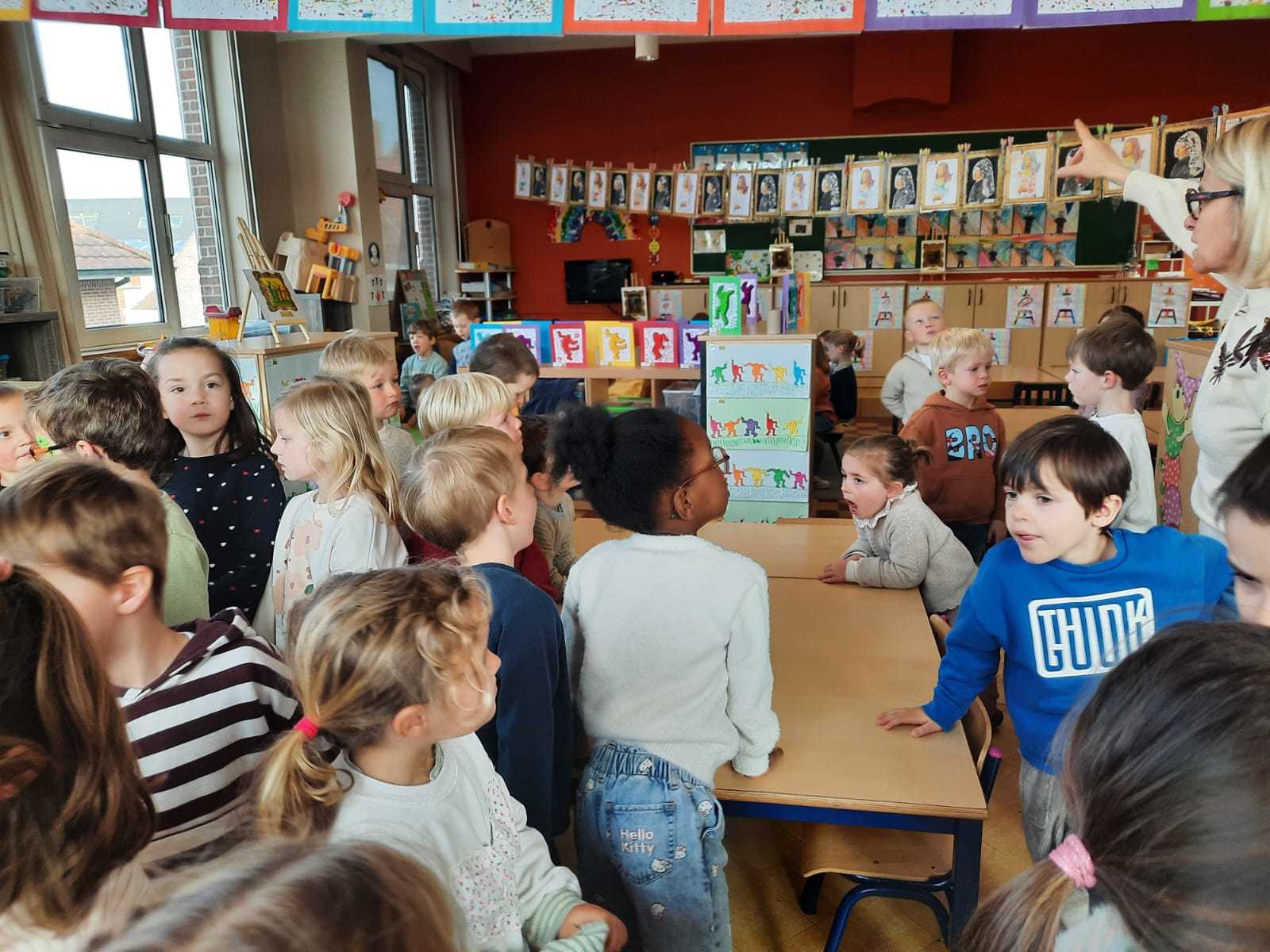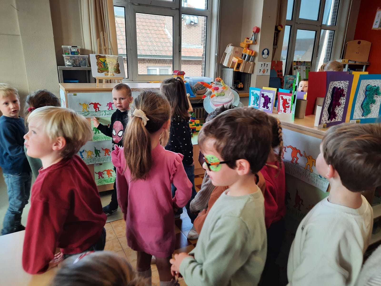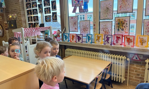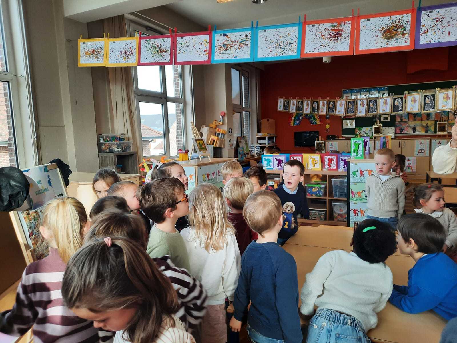 2KA: DE KUNSTENAARS VAN DE TWEEDE KLEUTERKLAS GINGEN OOK EENS BIJ ELKAAR OP BEZOEK.