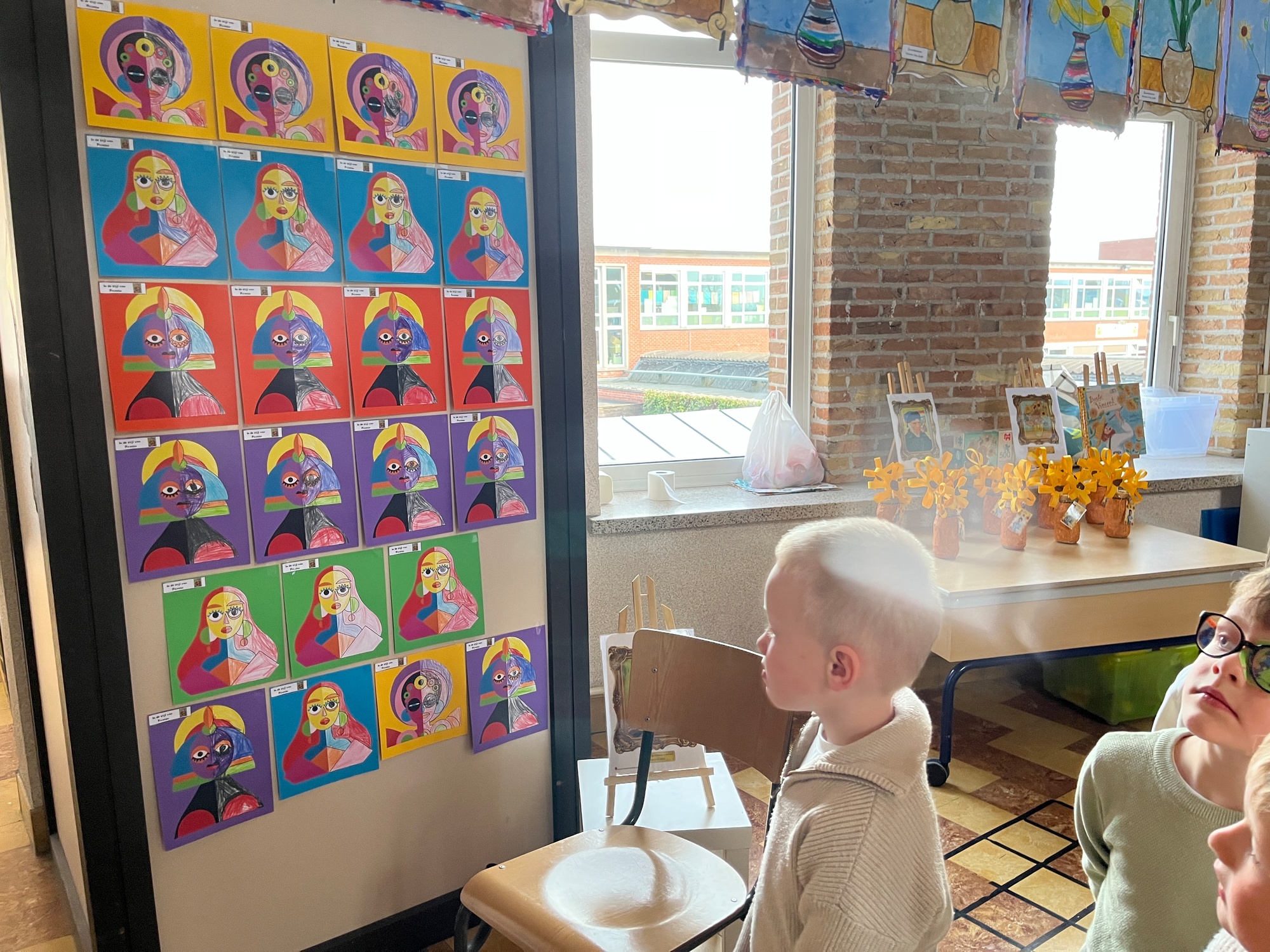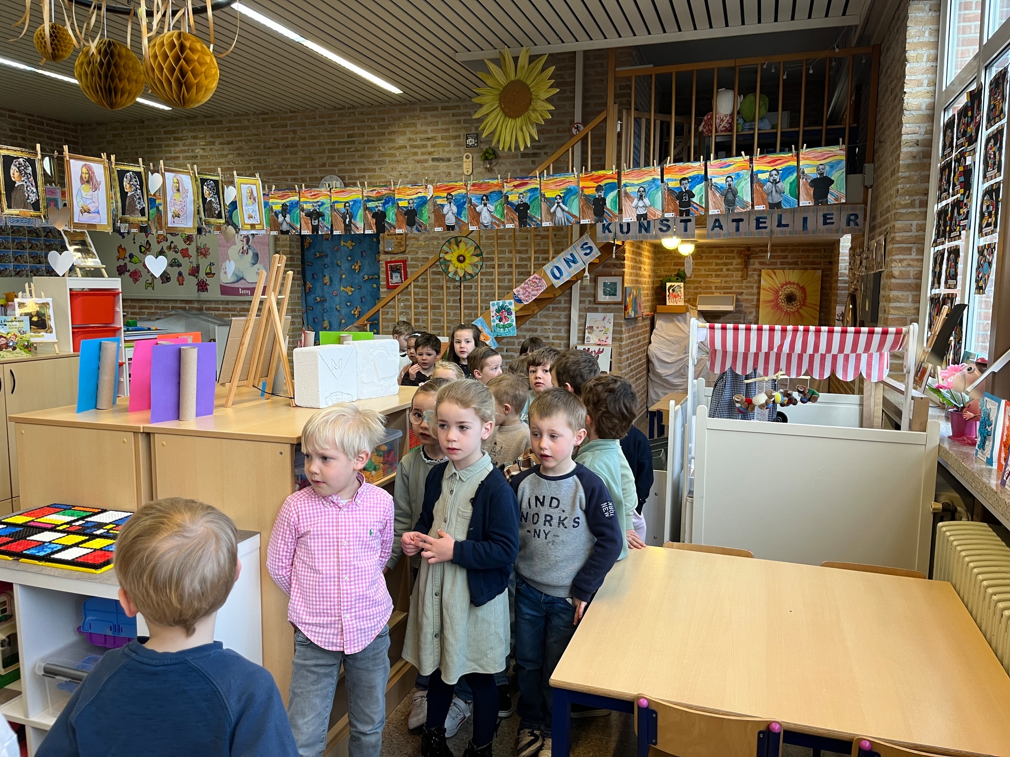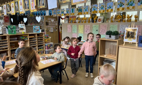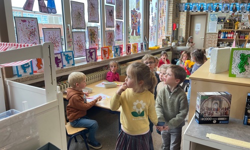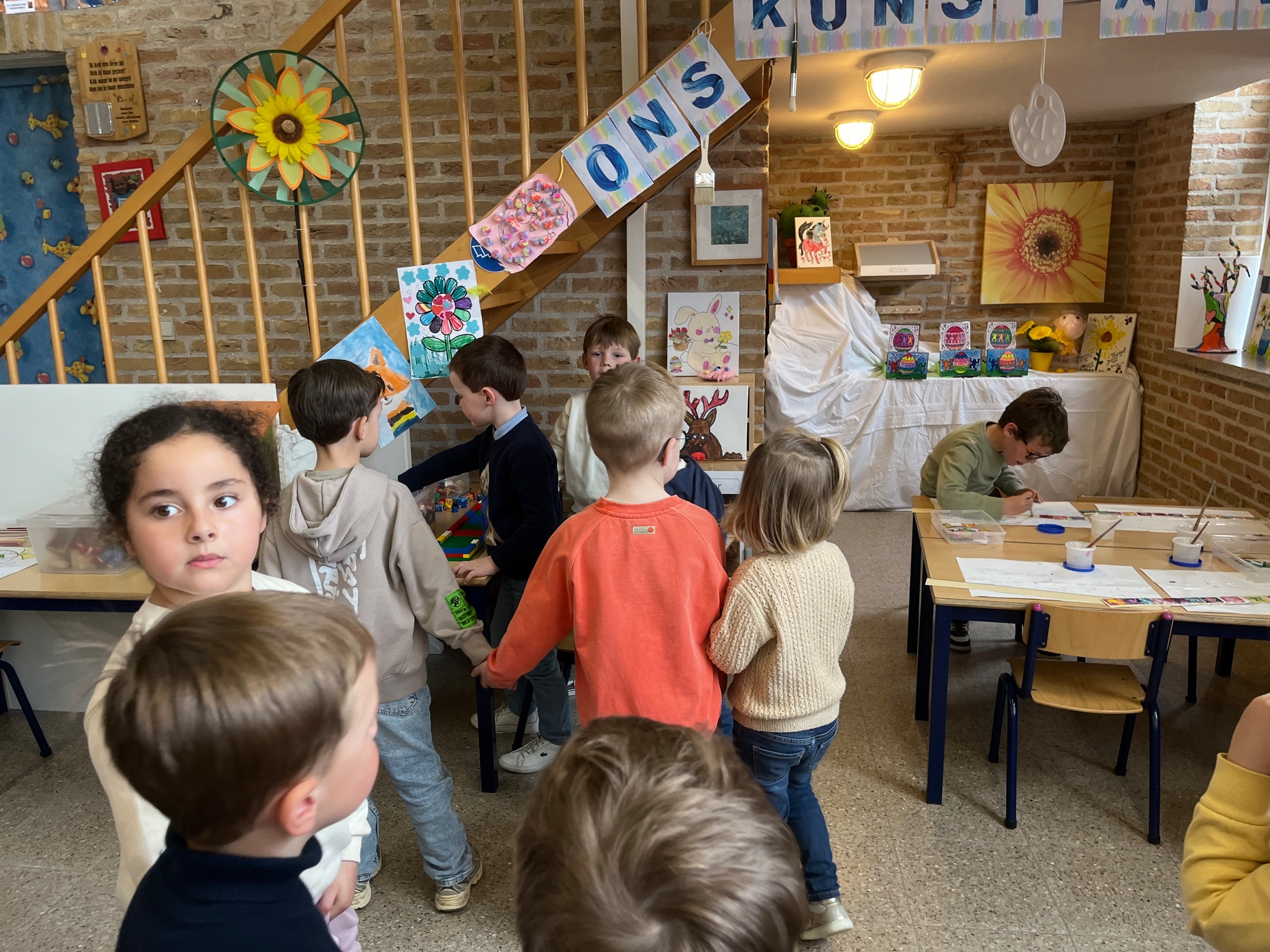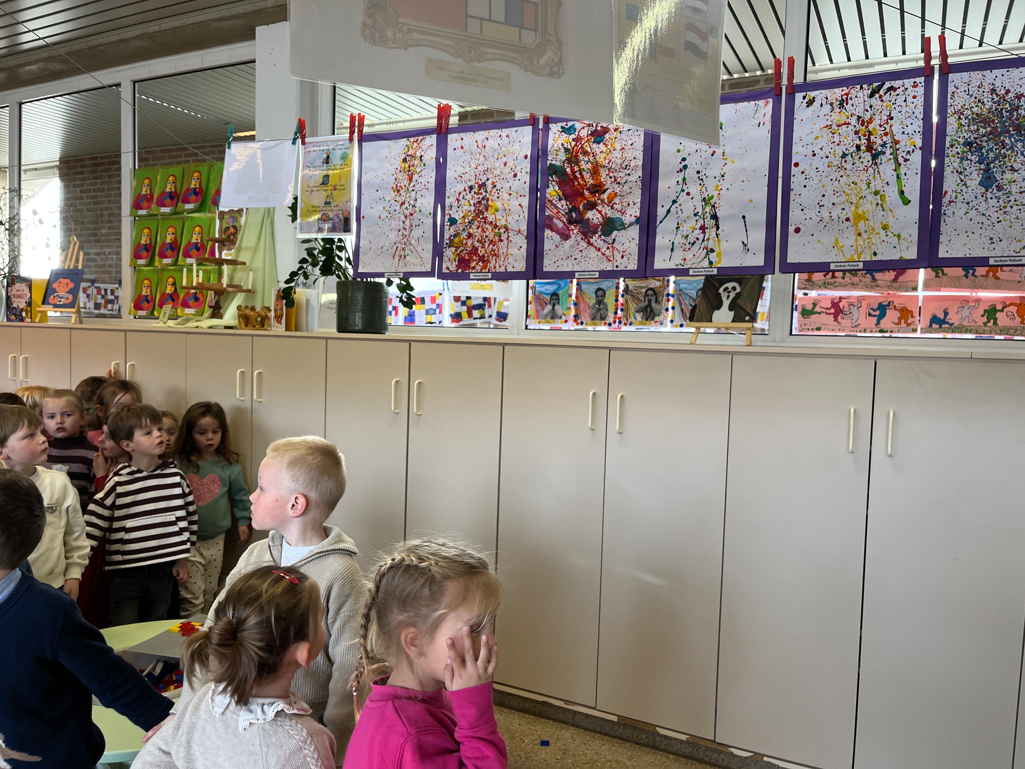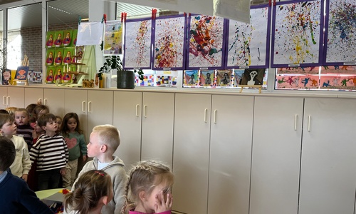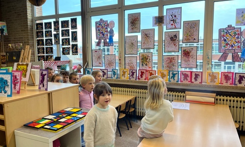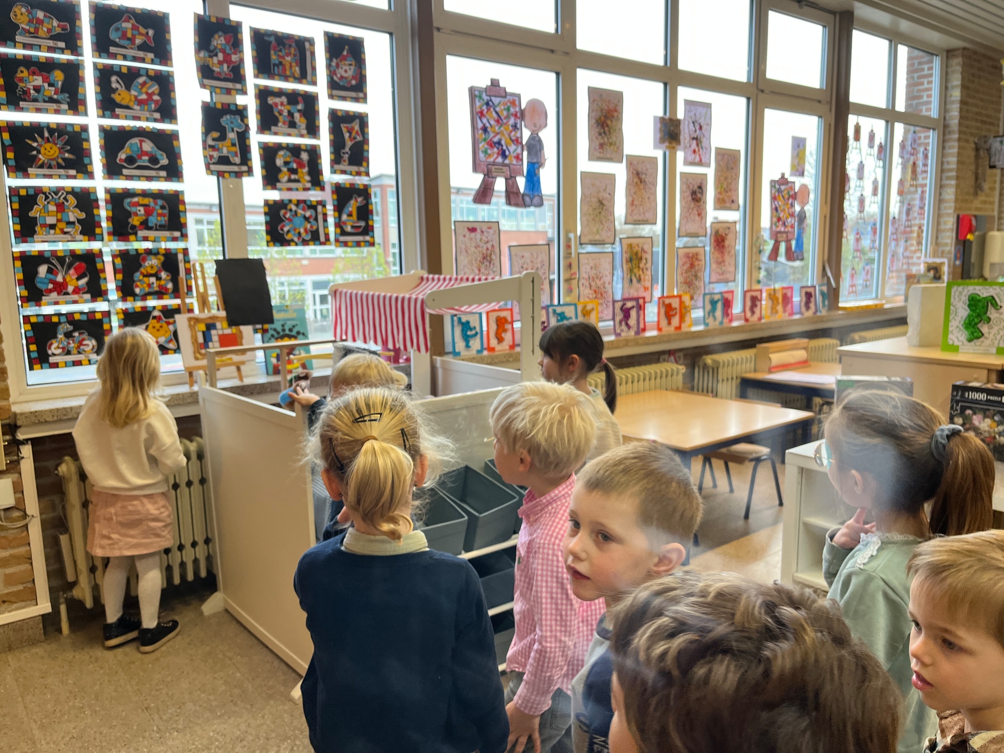 2KA: DE KUNSTENAARS VAN DE TWEEDE KLEUTERKLAS GINGEN OOK EENS BIJ ELKAAR OP BEZOEK.
