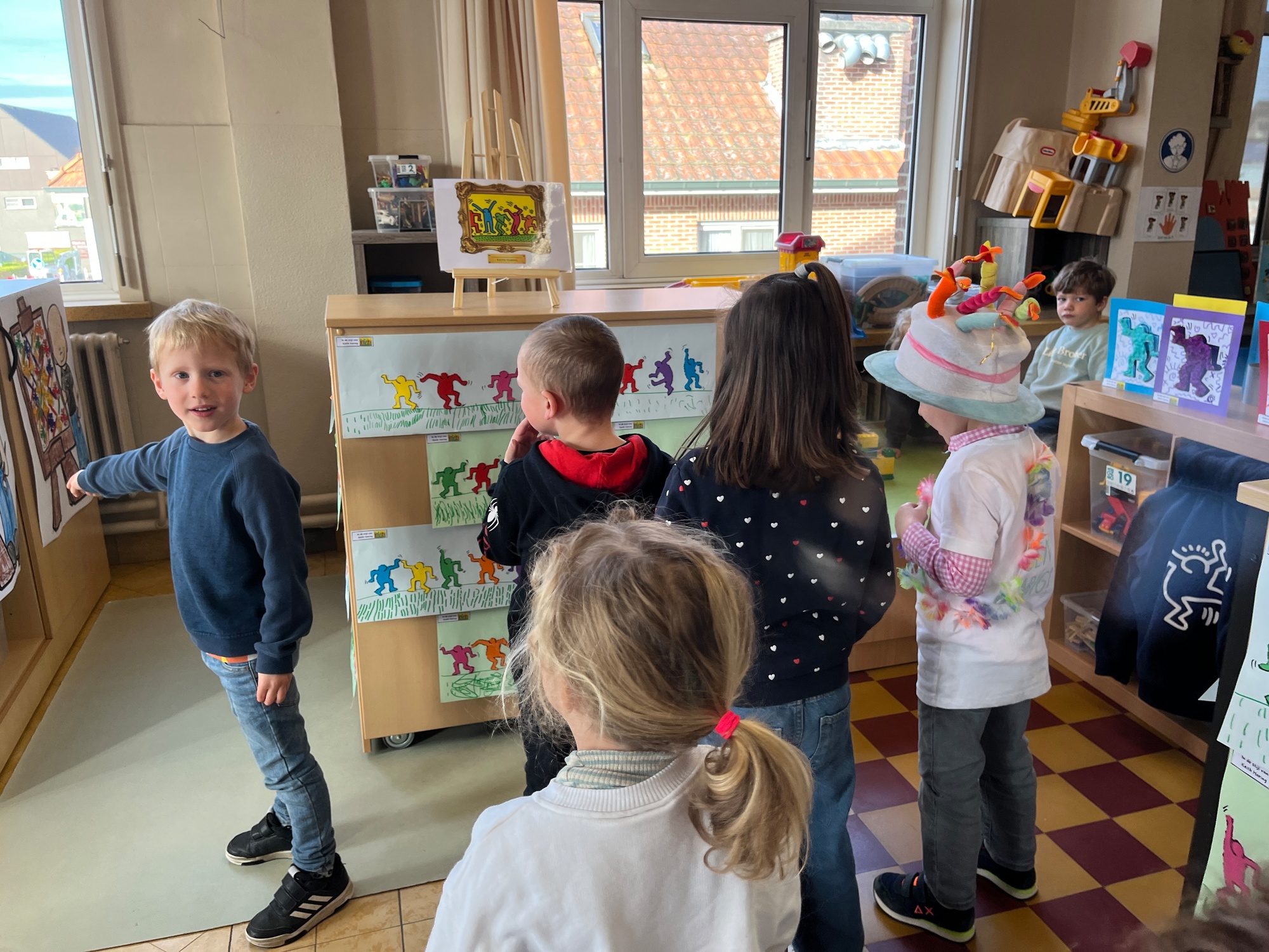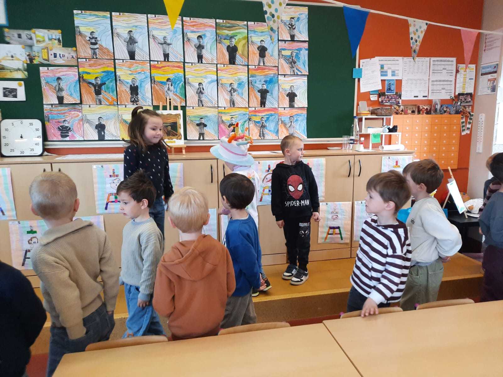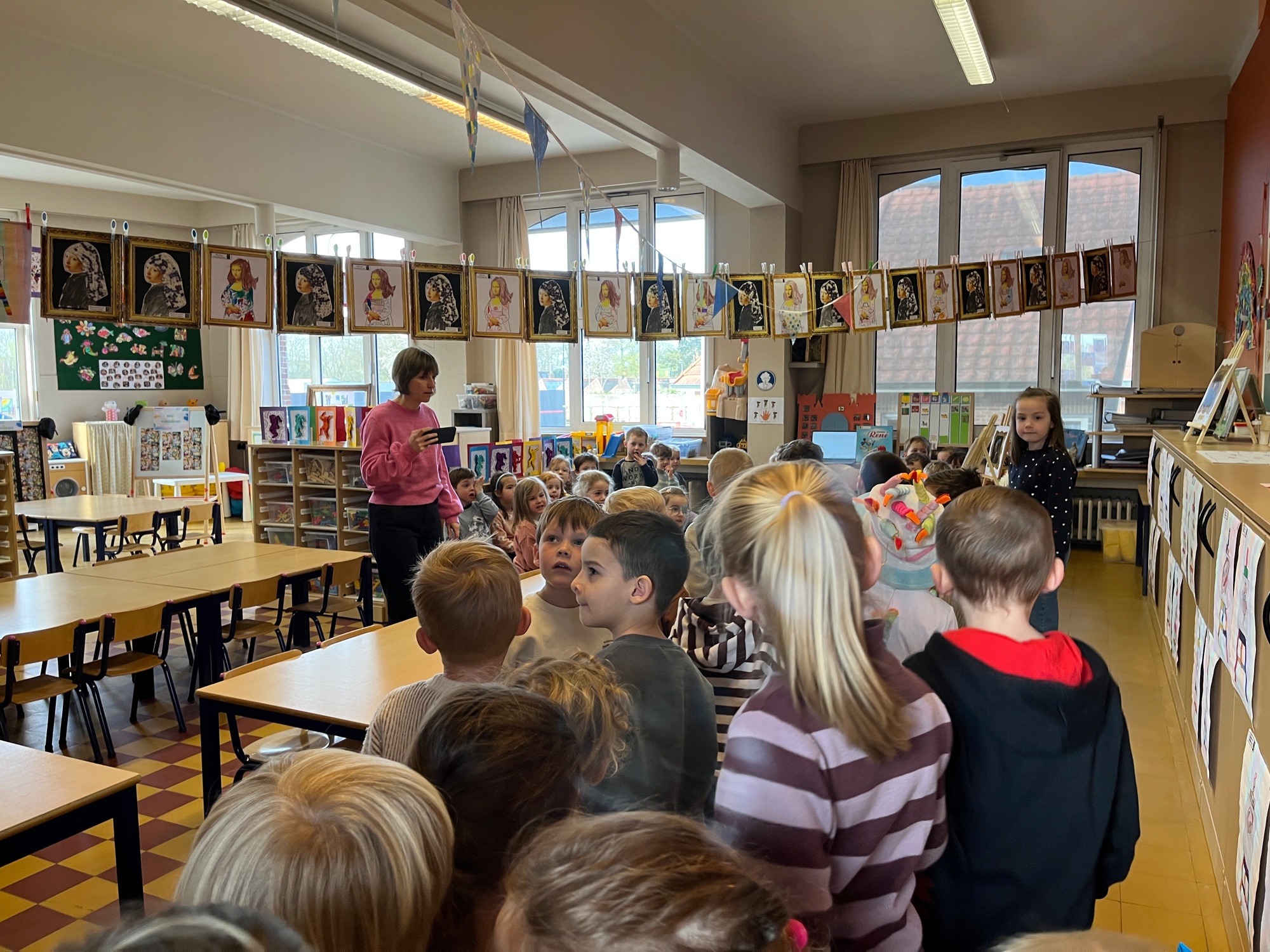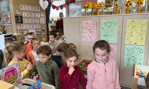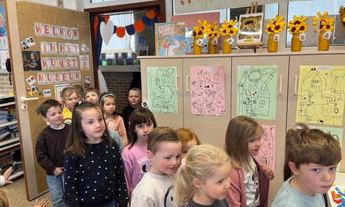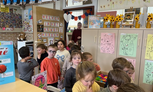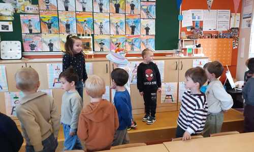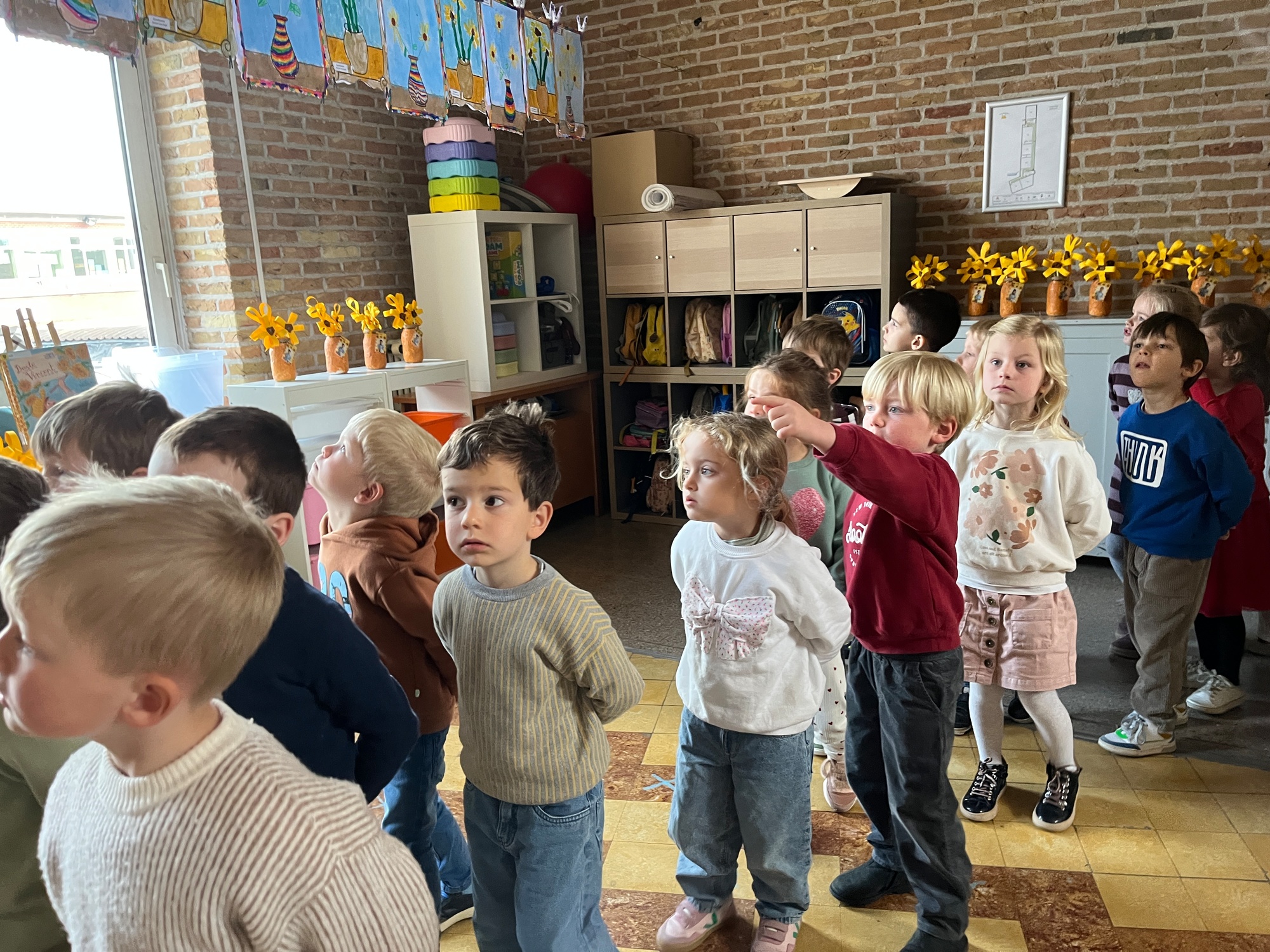 2KA: DE KUNSTENAARS VAN DE TWEEDE KLEUTERKLAS GINGEN OOK EENS BIJ ELKAAR OP BEZOEK.