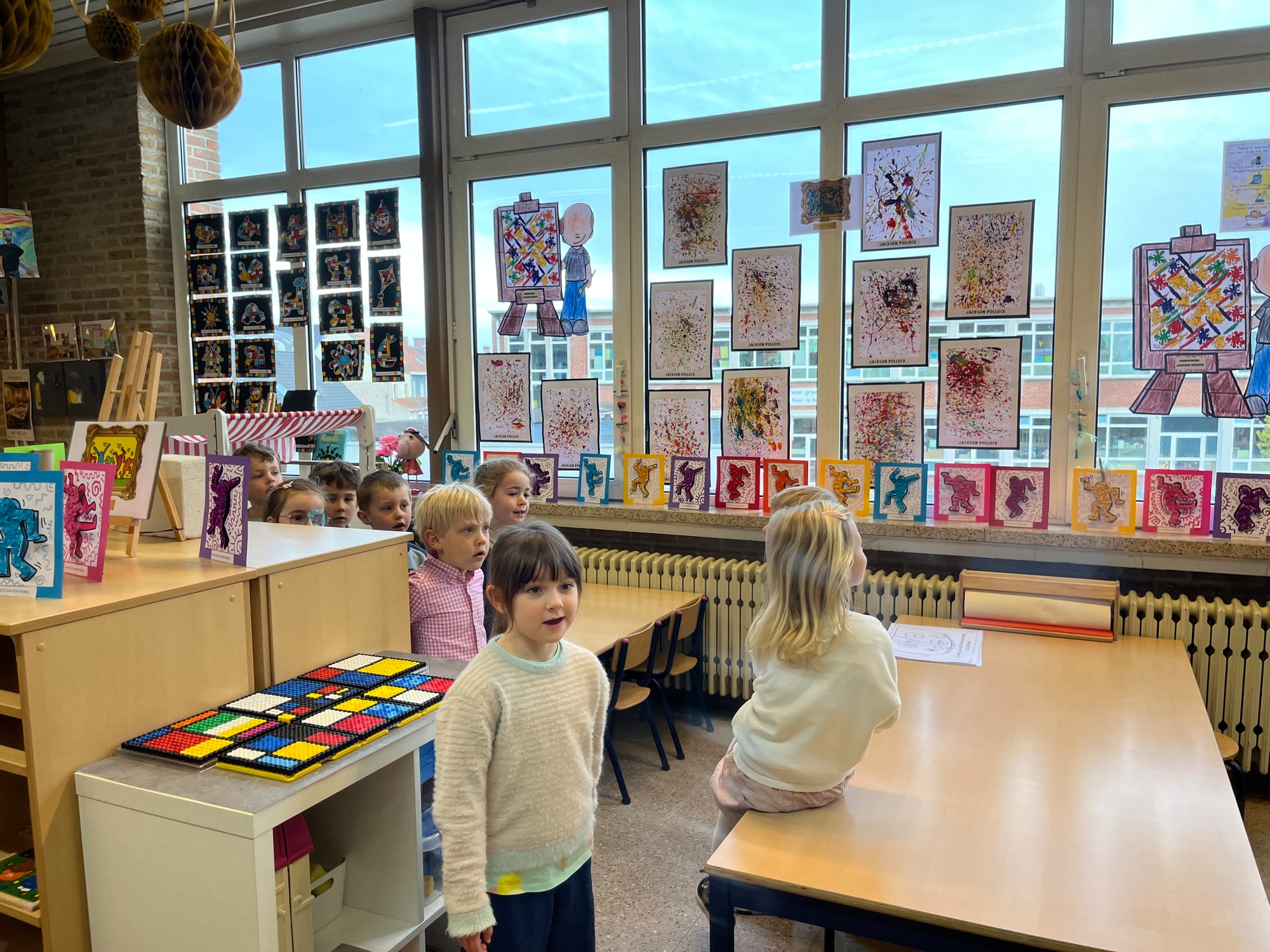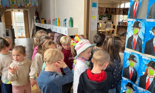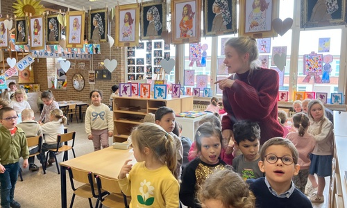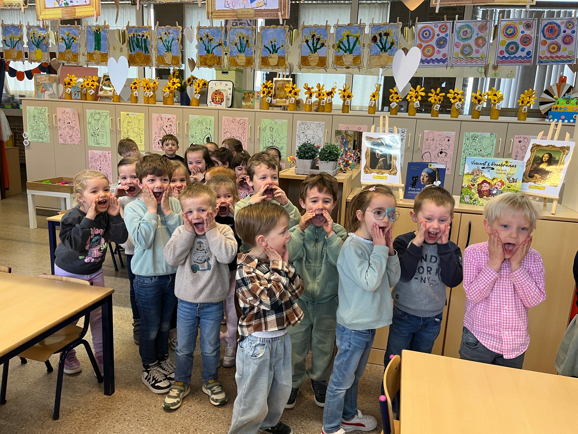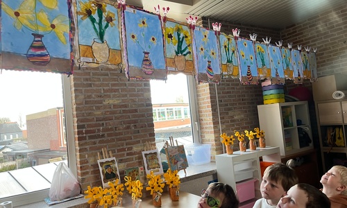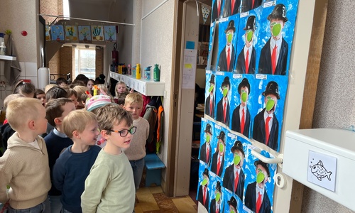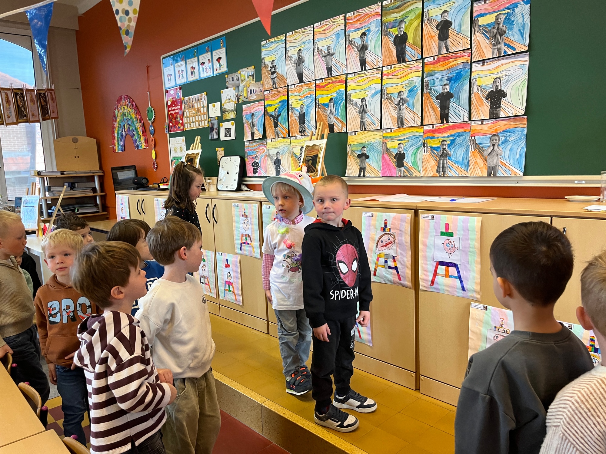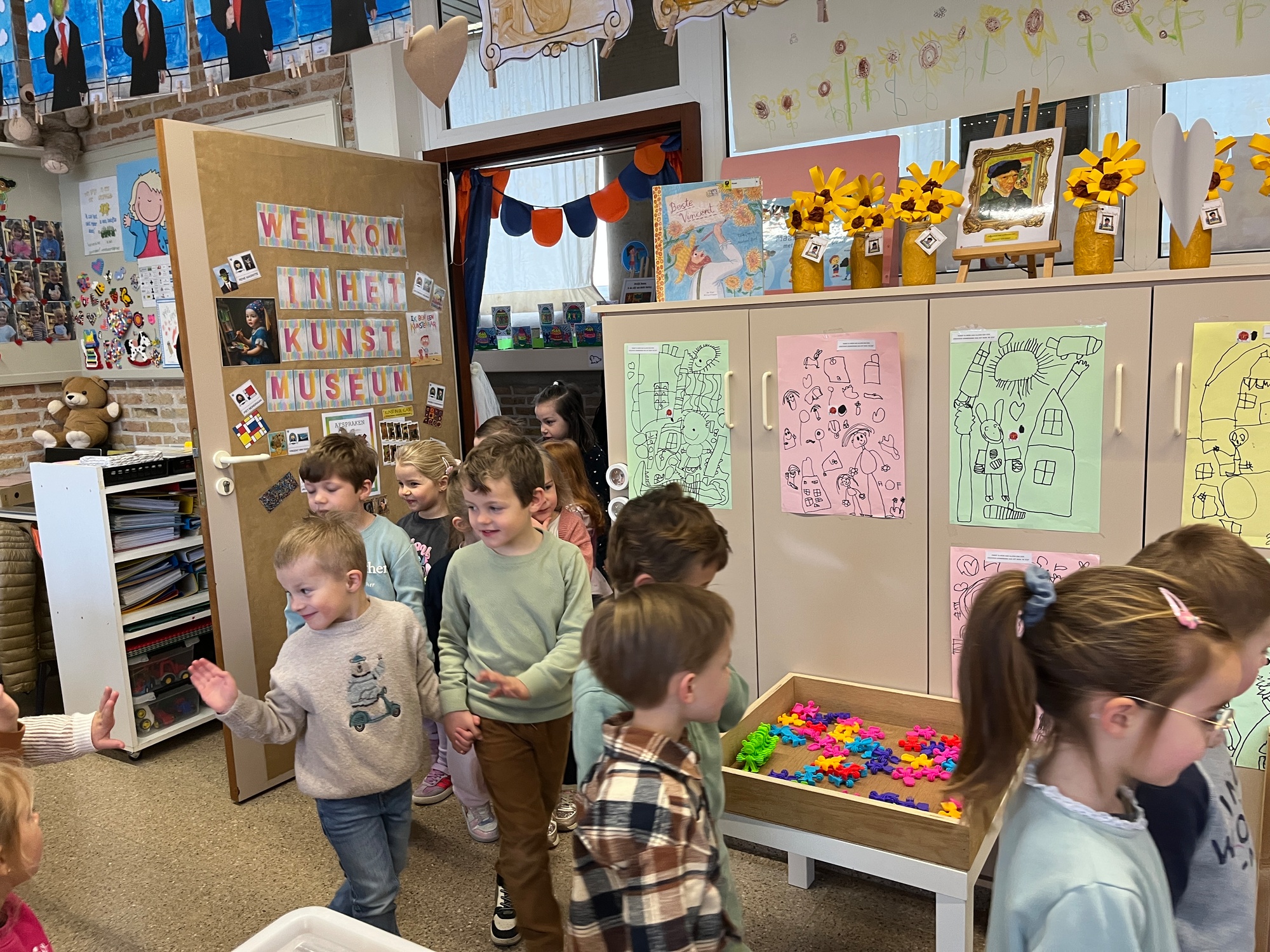 2KA: DE KUNSTENAARS VAN DE TWEEDE KLEUTERKLAS GINGEN OOK EENS BIJ ELKAAR OP BEZOEK.