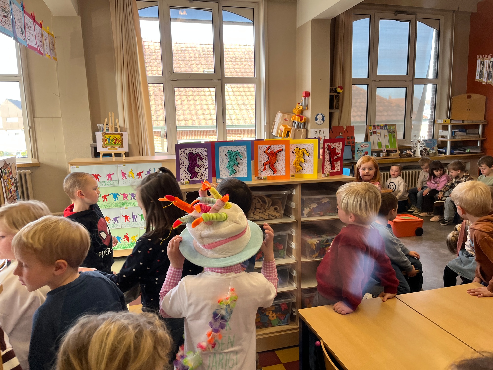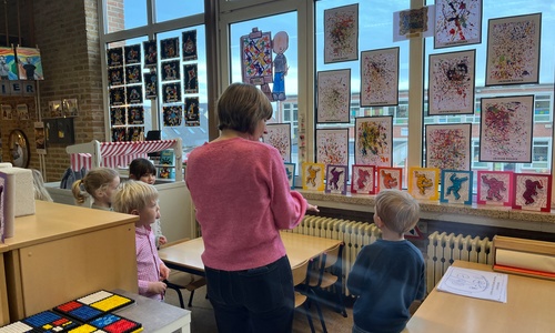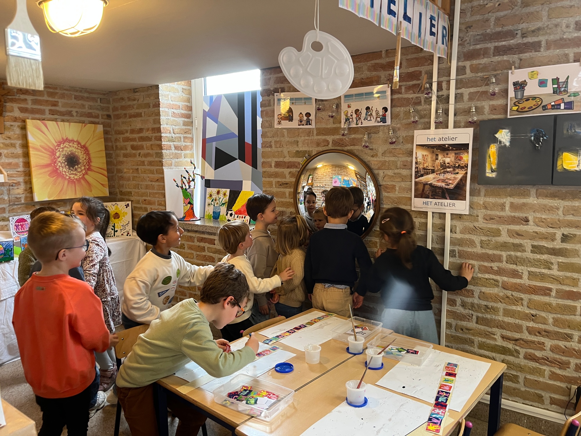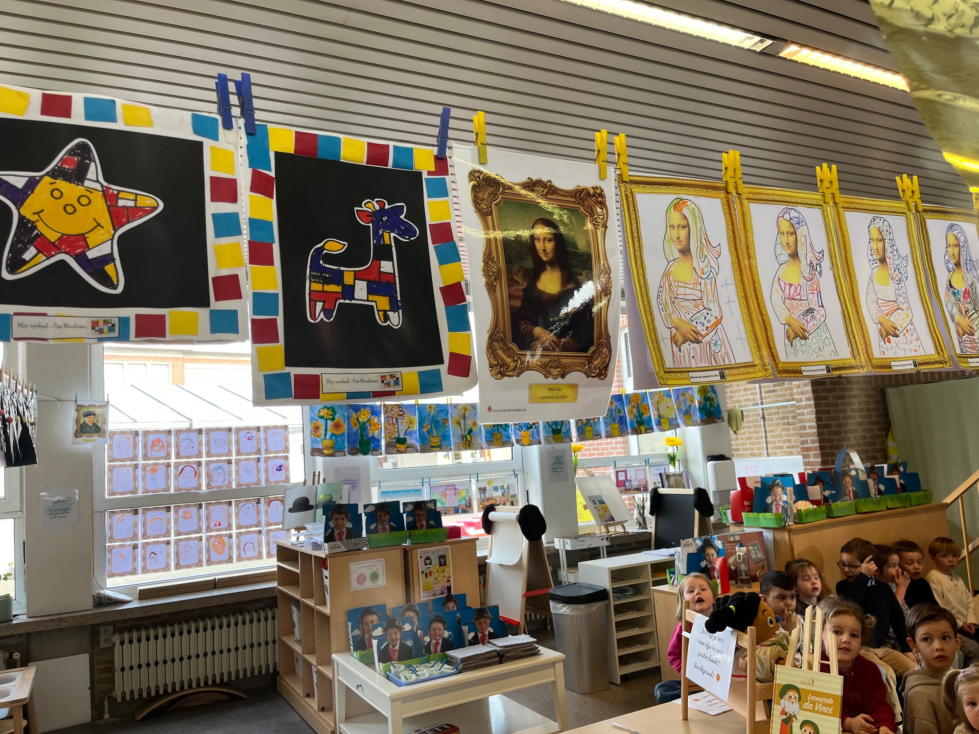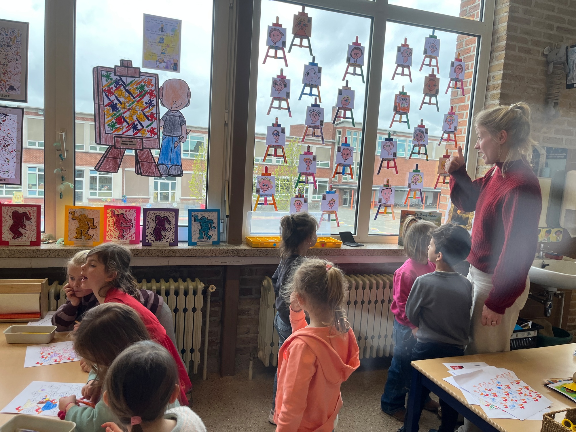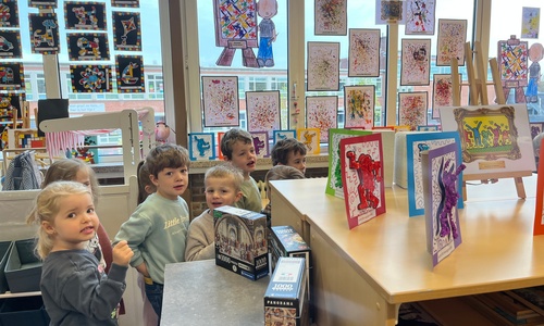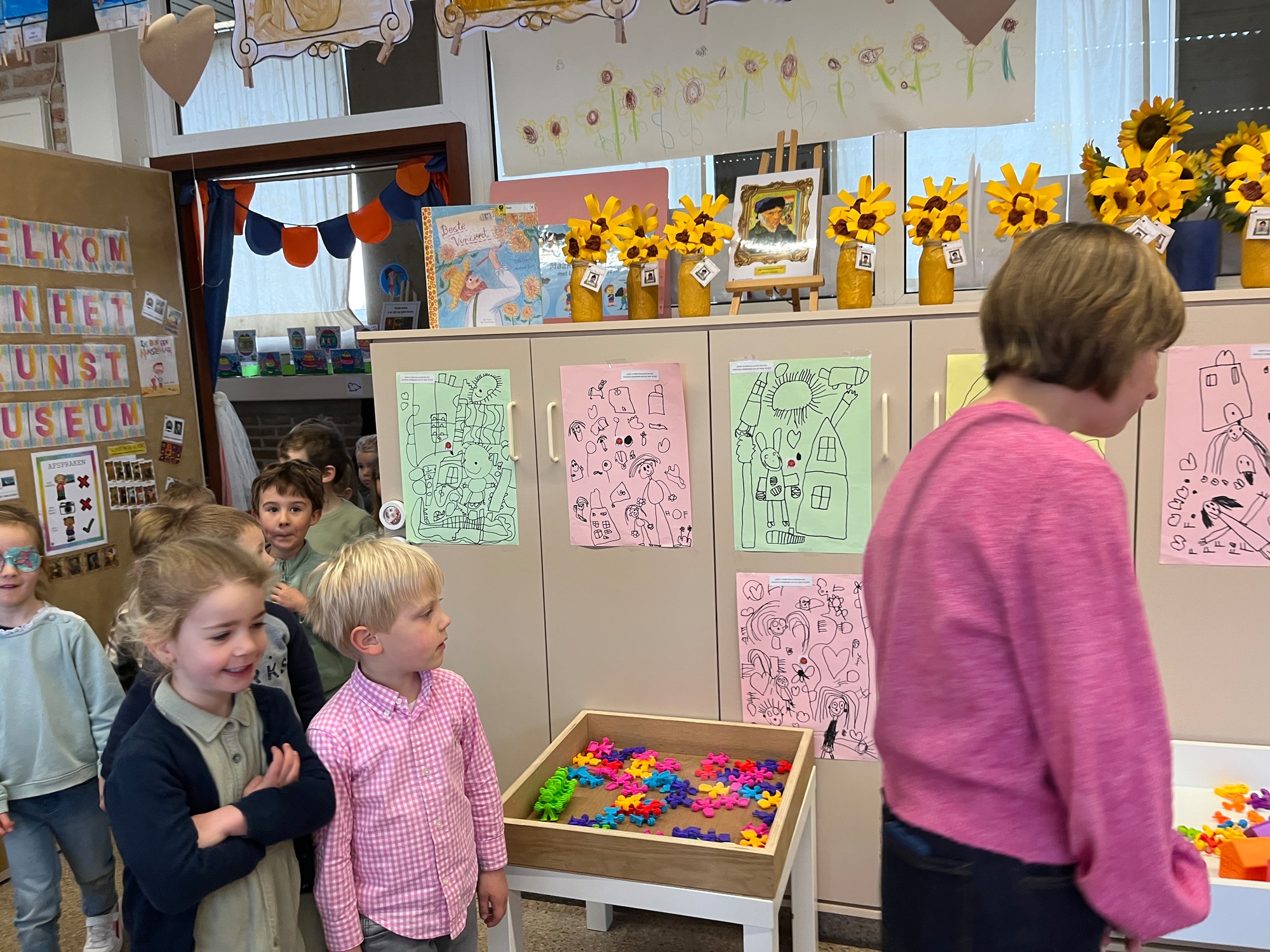2KA: DE KUNSTENAARS VAN DE TWEEDE KLEUTERKLAS GINGEN OOK EENS BIJ ELKAAR OP BEZOEK.