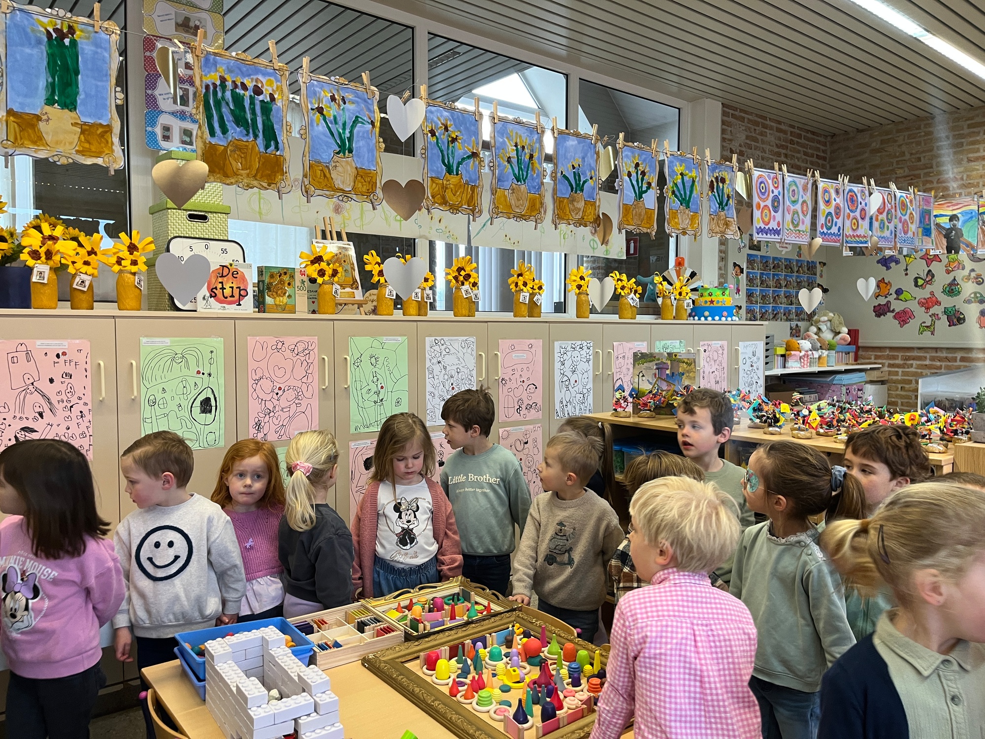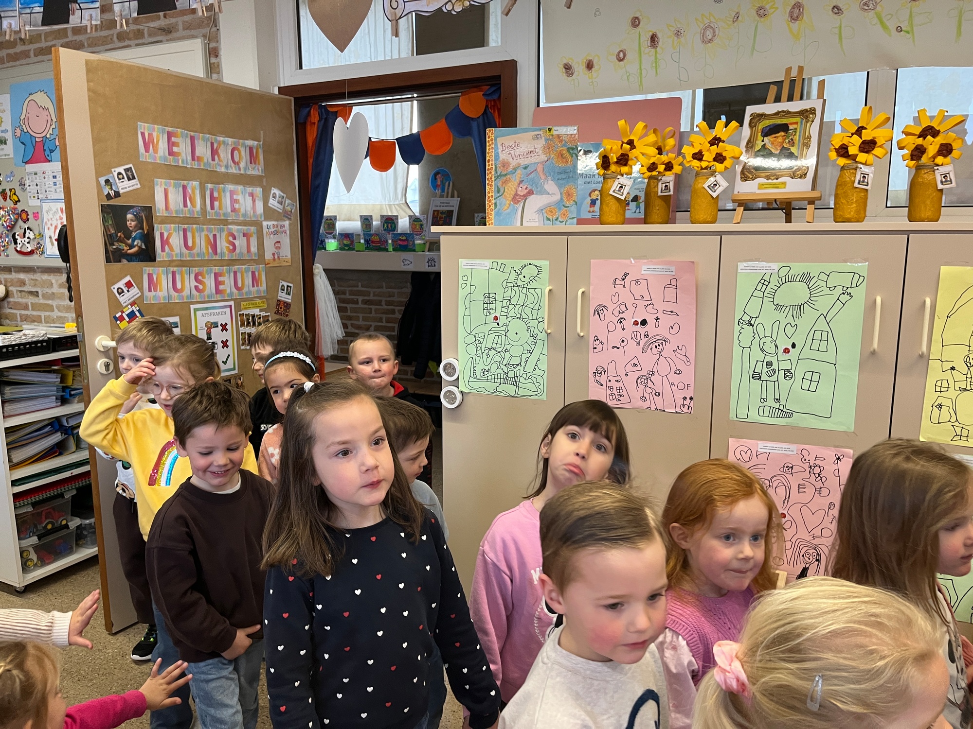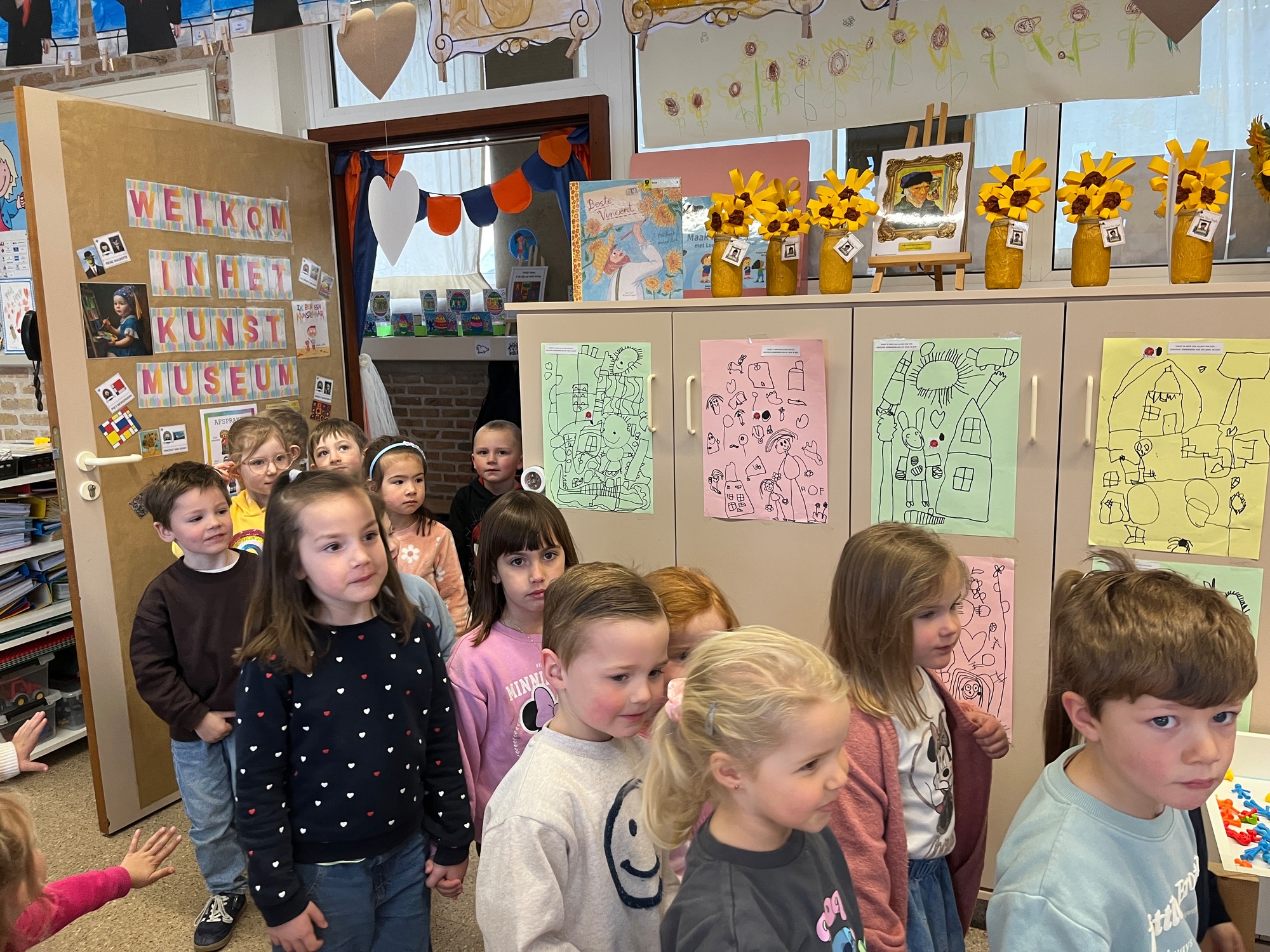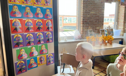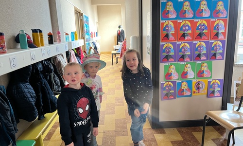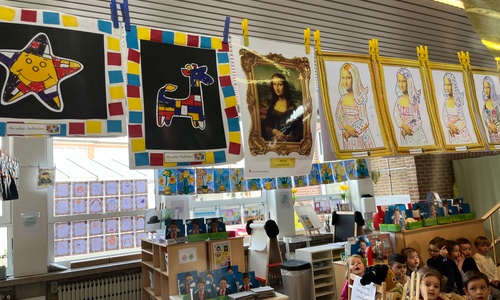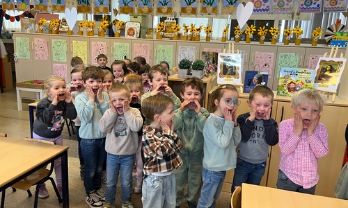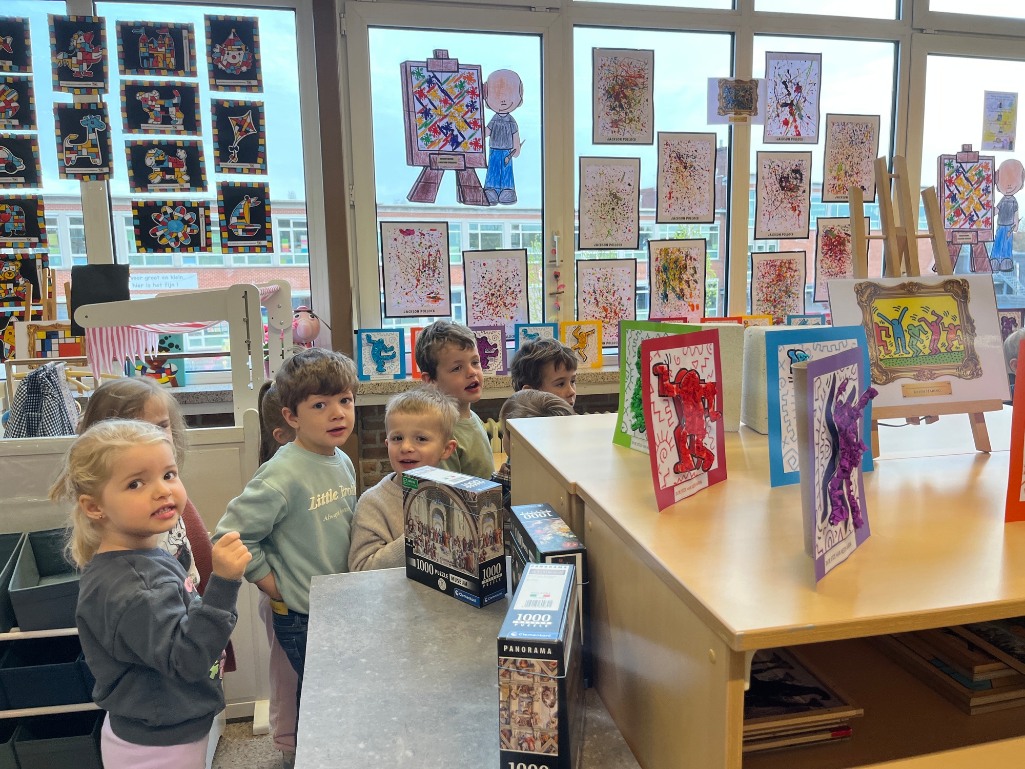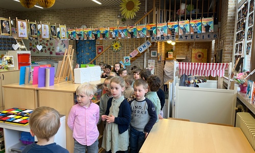 2KA: DE KUNSTENAARS VAN DE TWEEDE KLEUTERKLAS GINGEN OOK EENS BIJ ELKAAR OP BEZOEK.