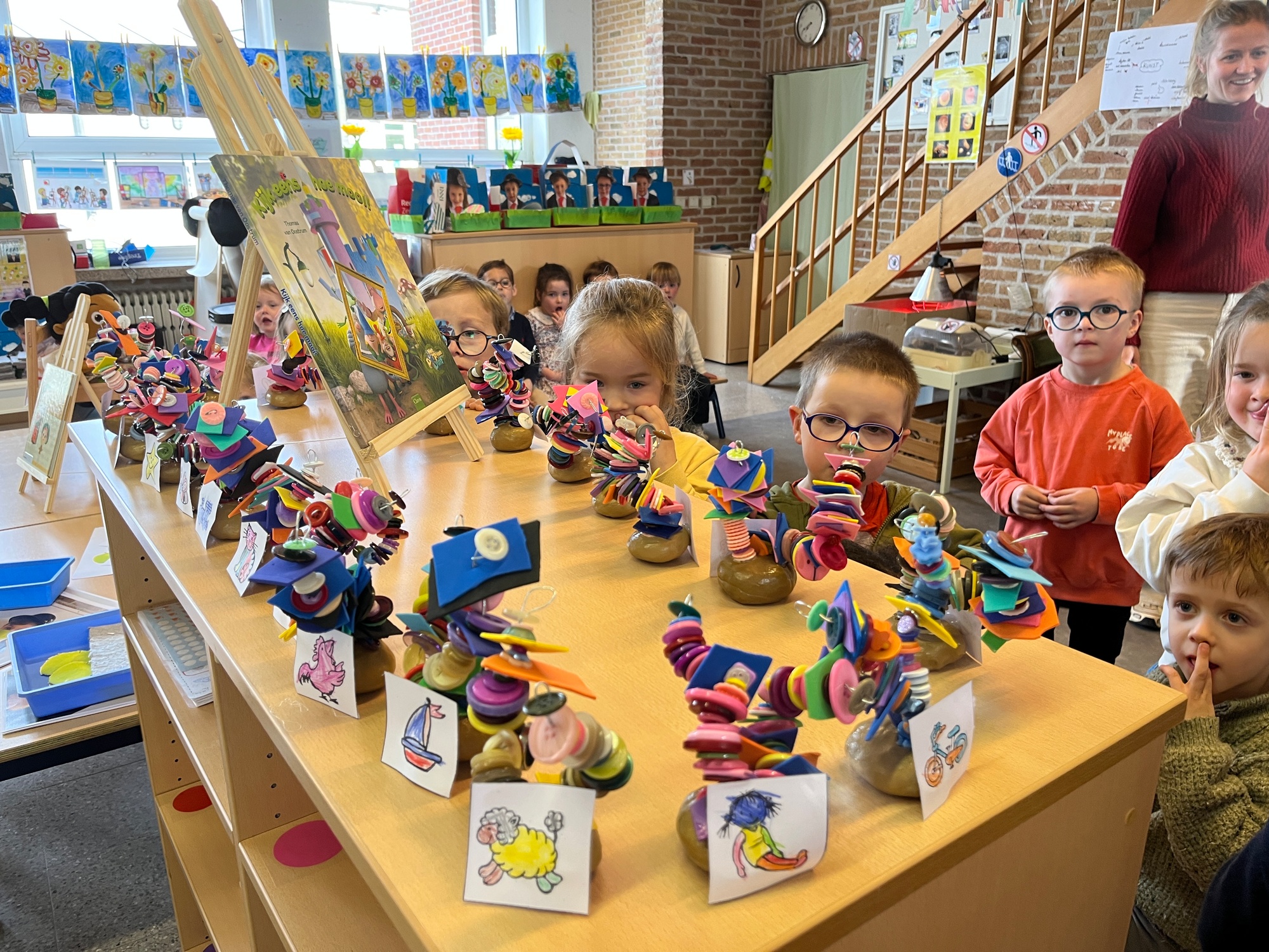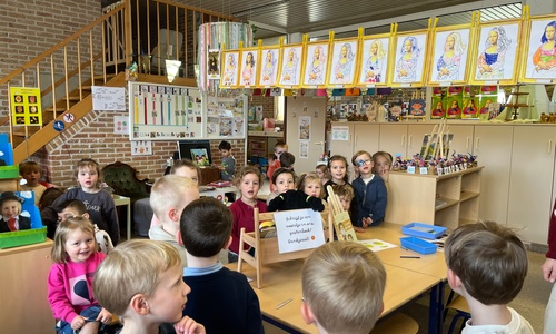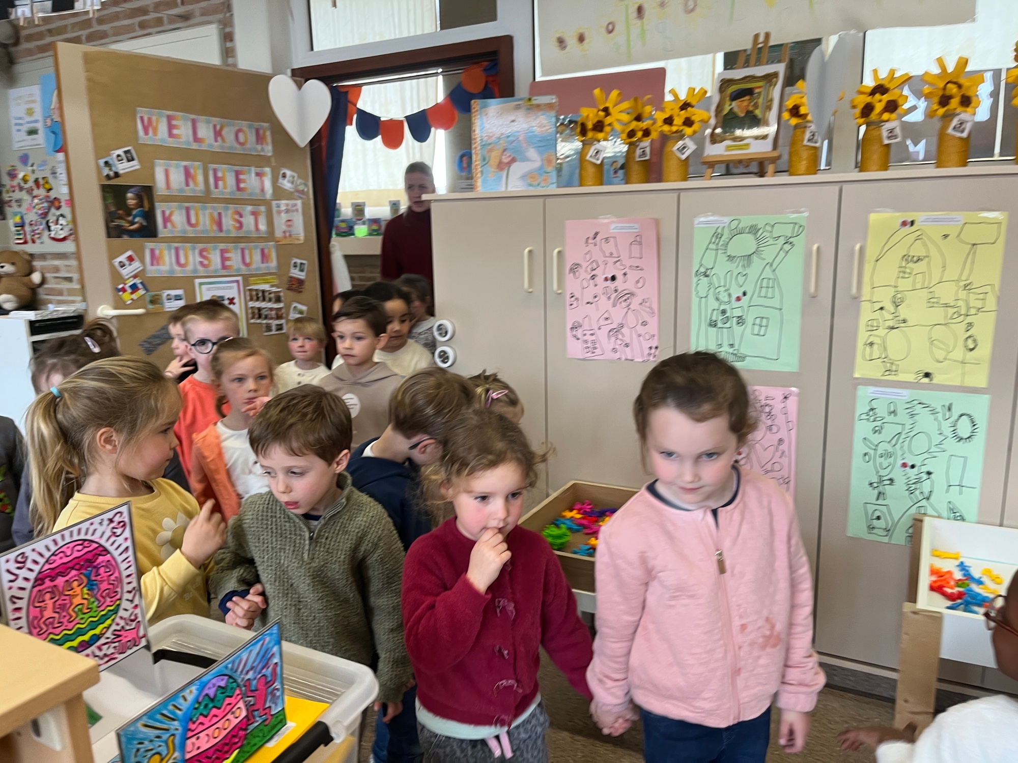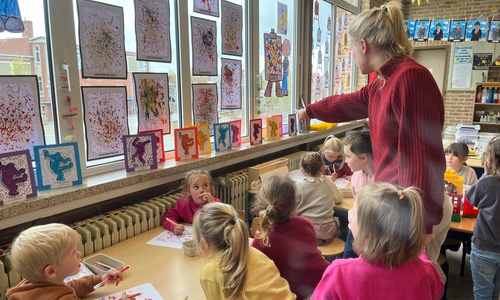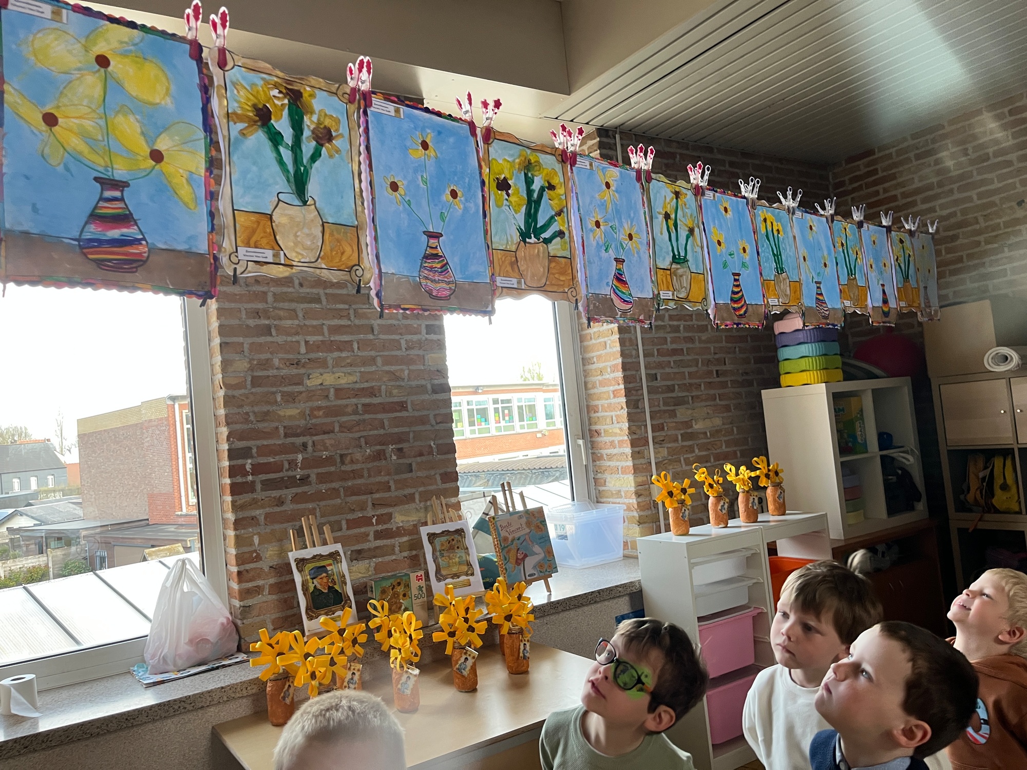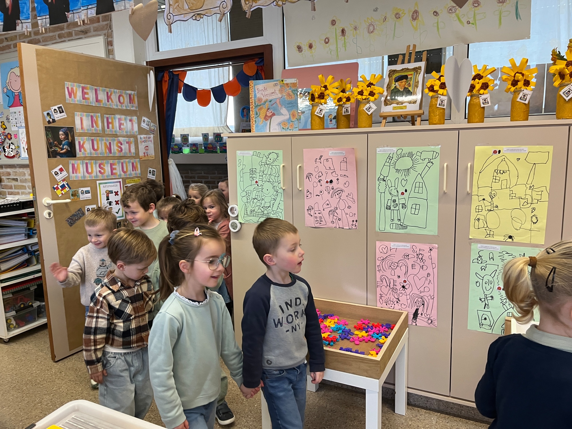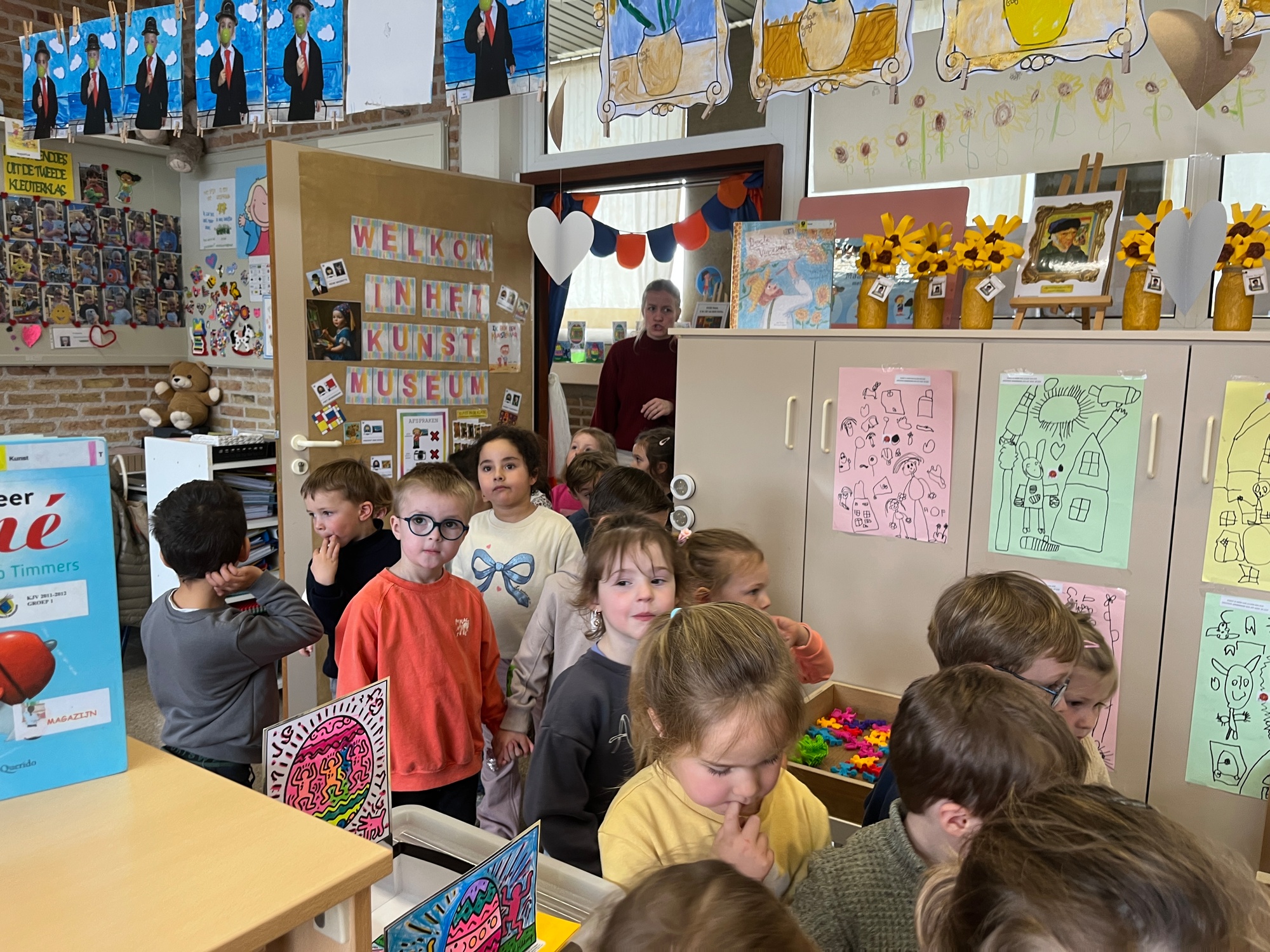 2KA: DE KUNSTENAARS VAN DE TWEEDE KLEUTERKLAS GINGEN OOK EENS BIJ ELKAAR OP BEZOEK.