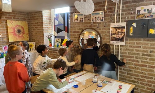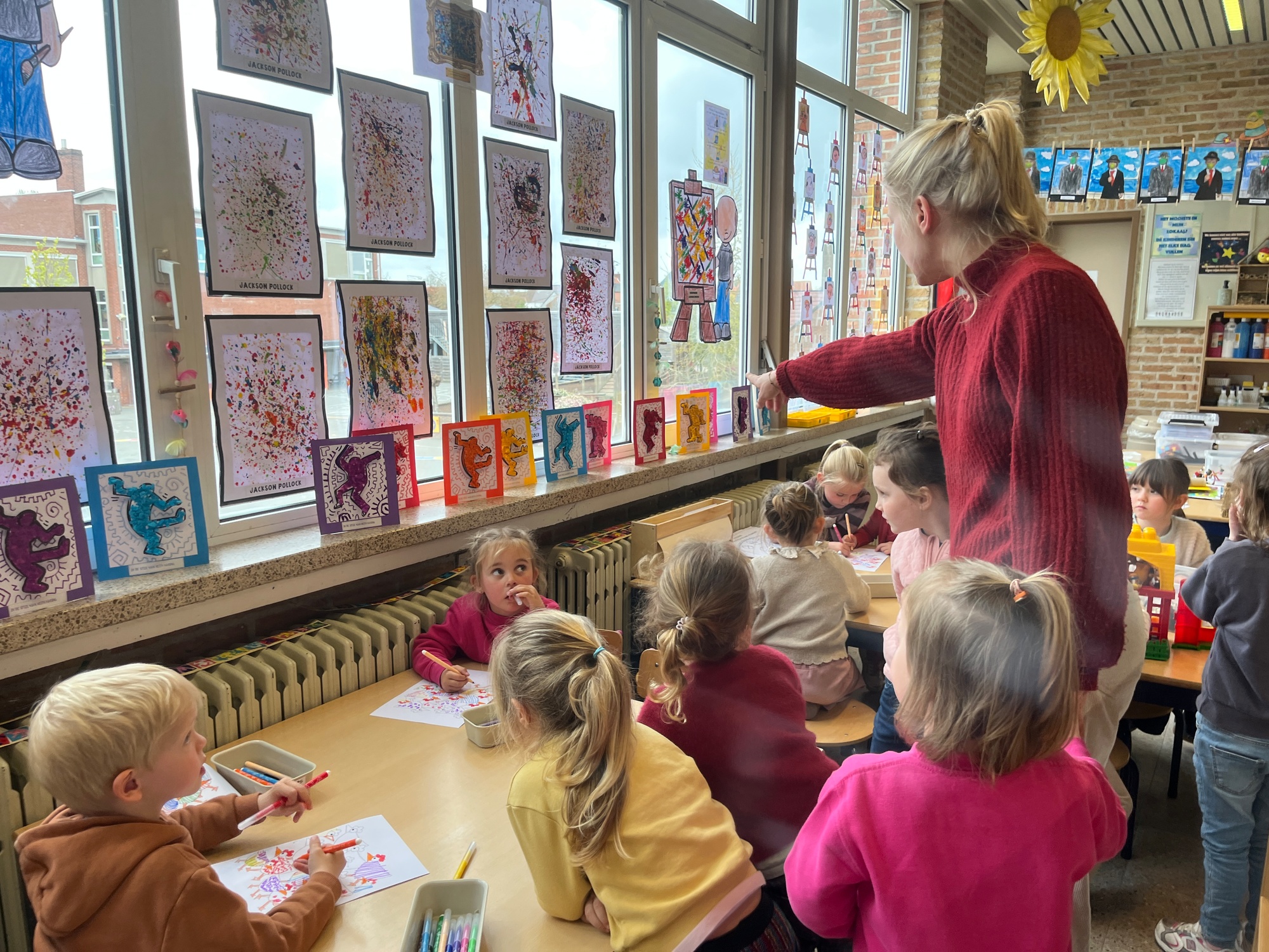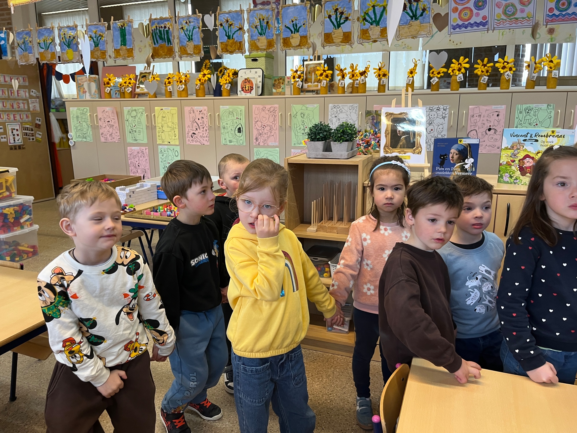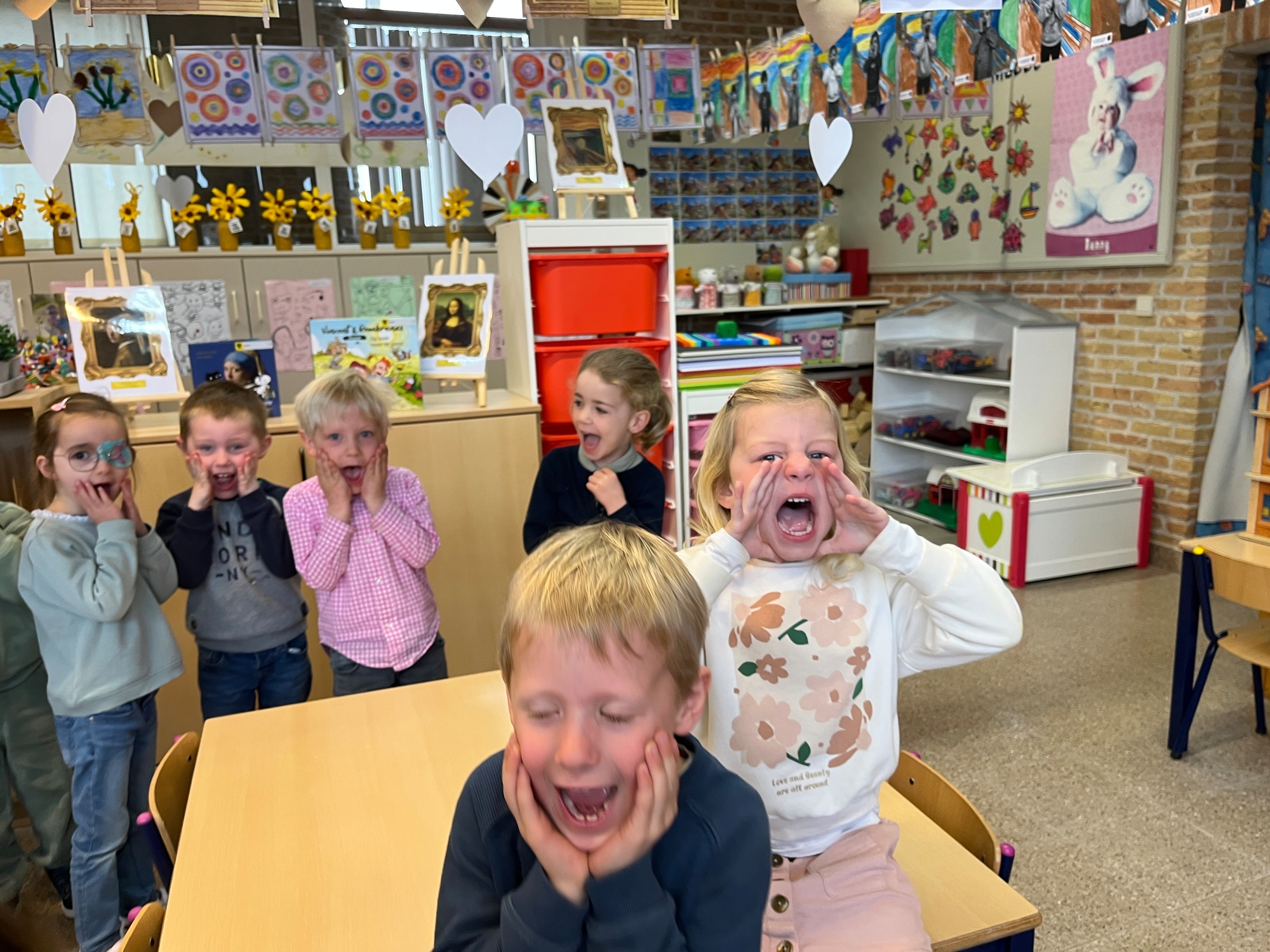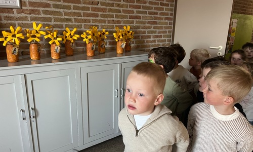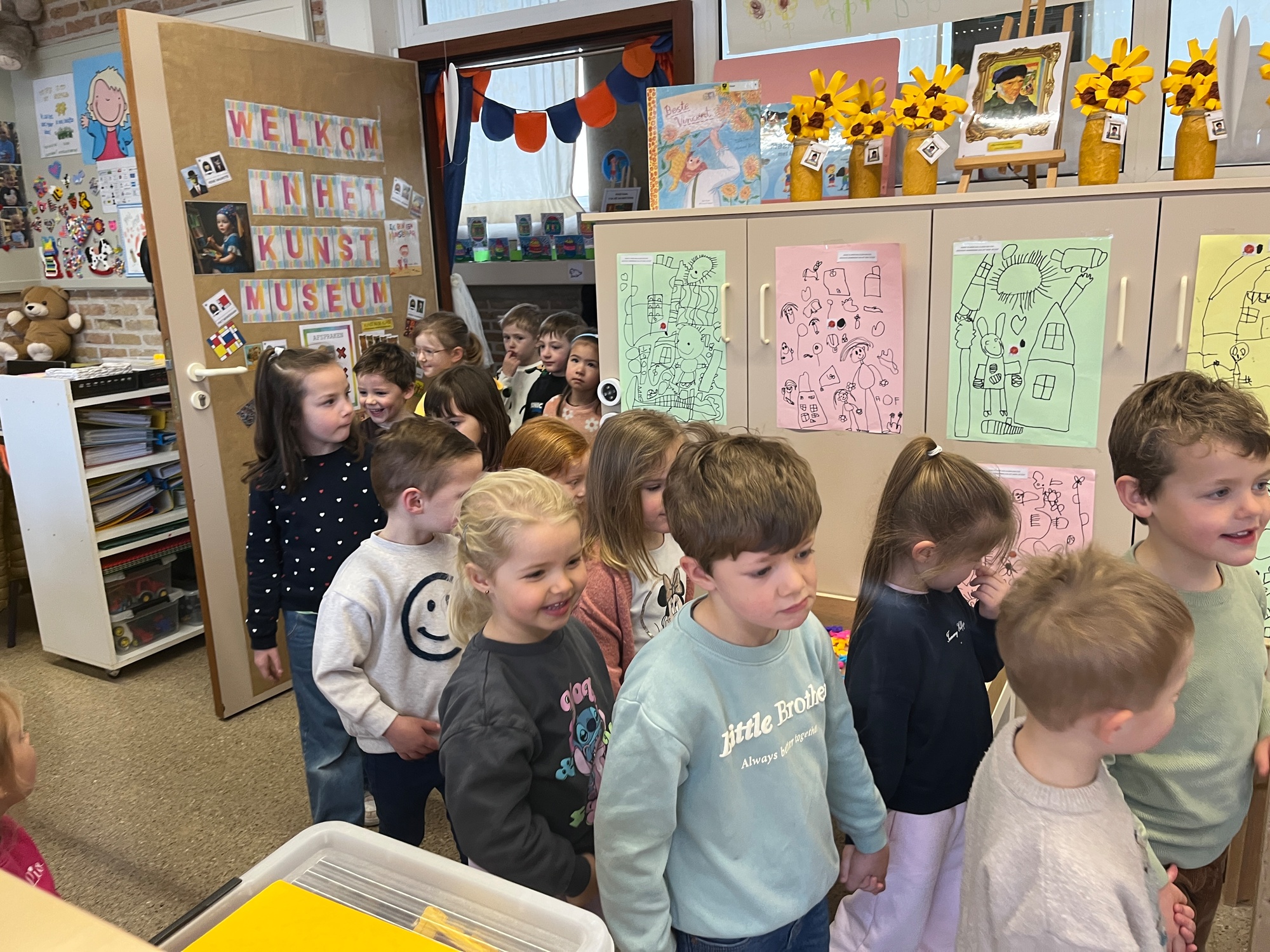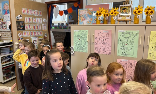2KA: DE KUNSTENAARS VAN DE TWEEDE KLEUTERKLAS GINGEN OOK EENS BIJ ELKAAR OP BEZOEK.