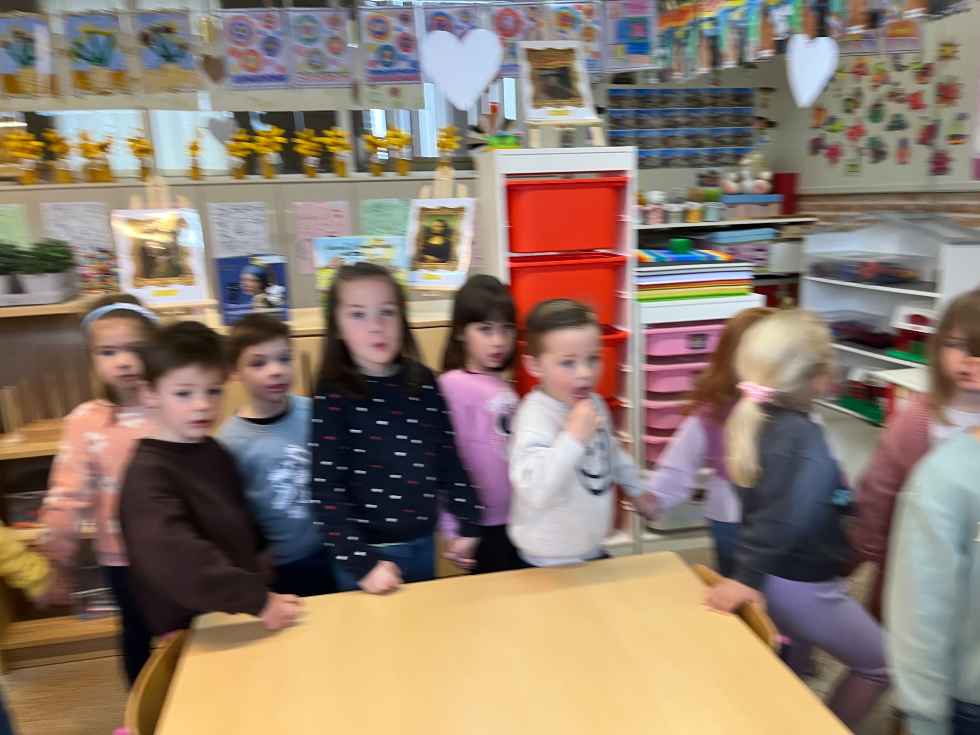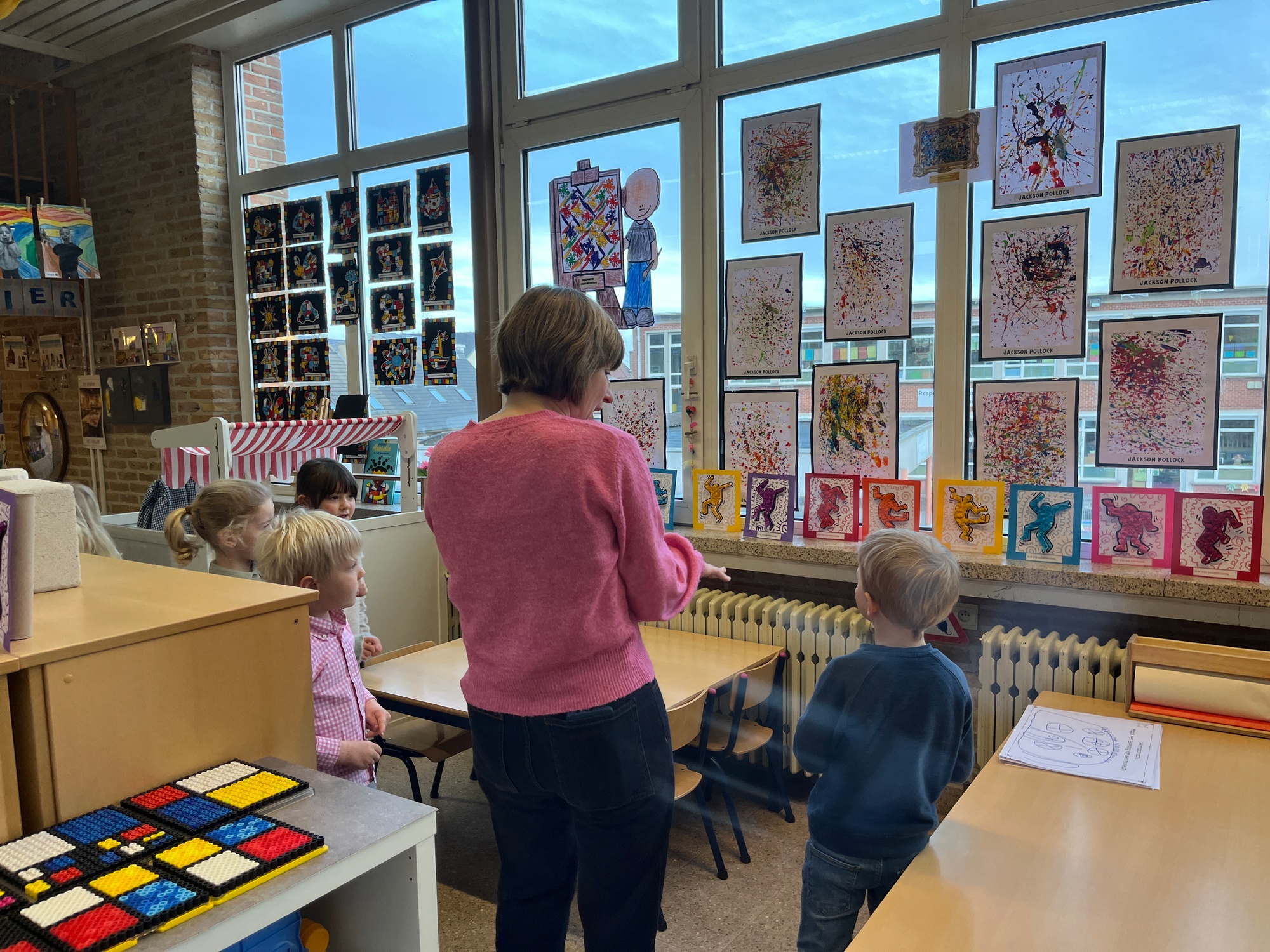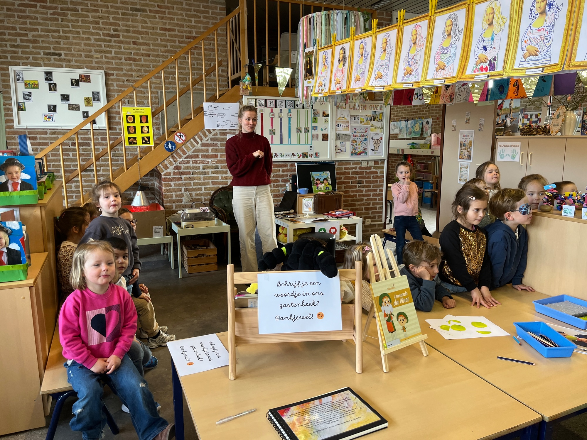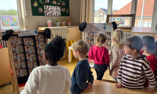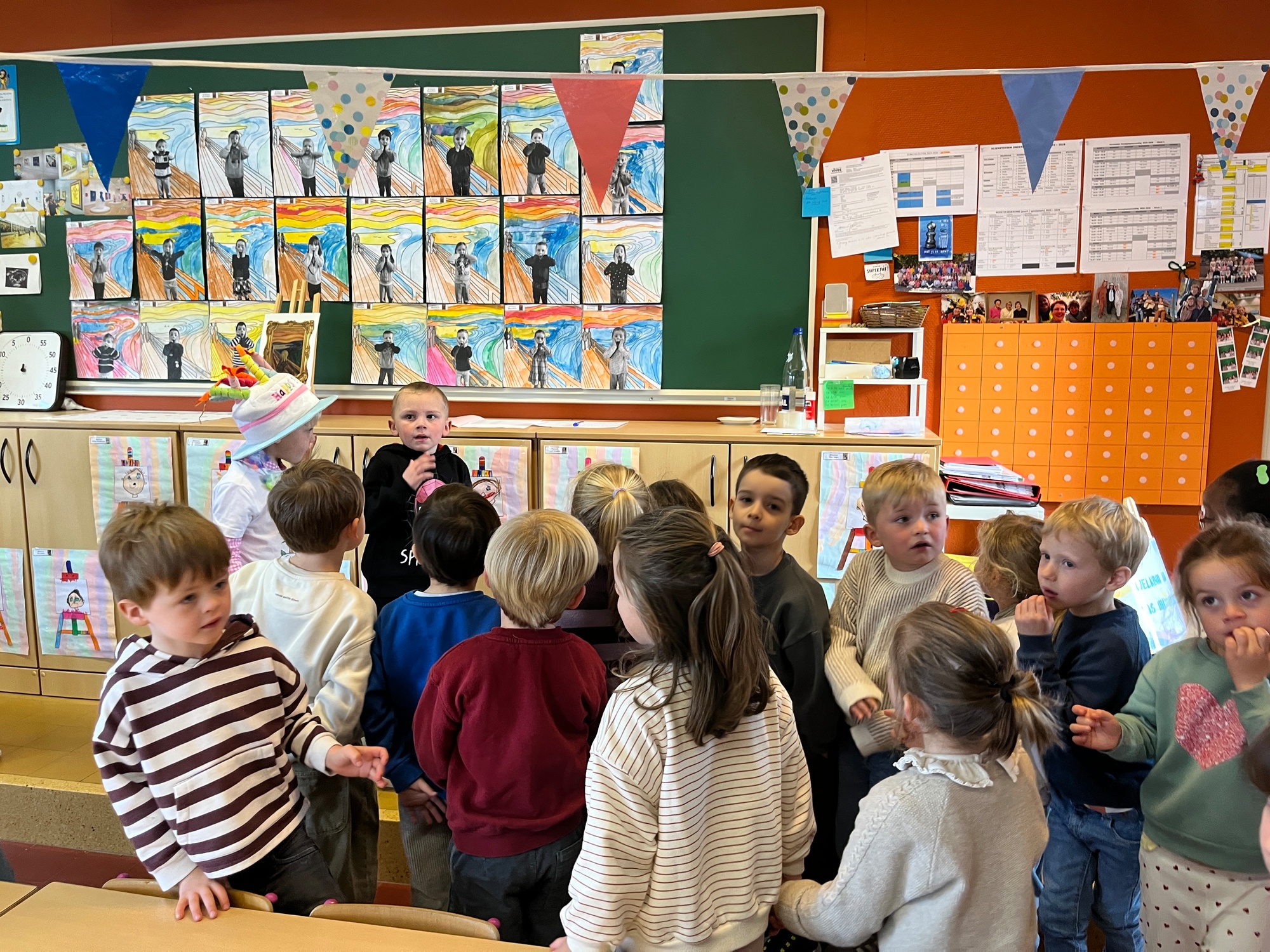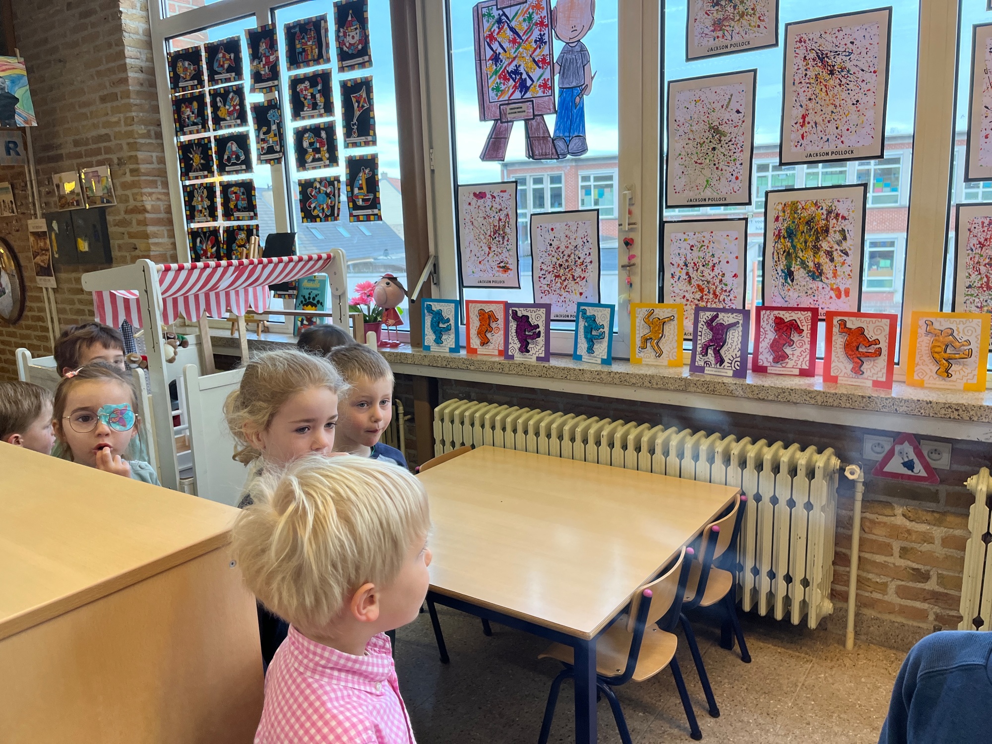2KA: DE KUNSTENAARS VAN DE TWEEDE KLEUTERKLAS GINGEN OOK EENS BIJ ELKAAR OP BEZOEK.