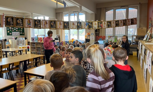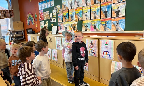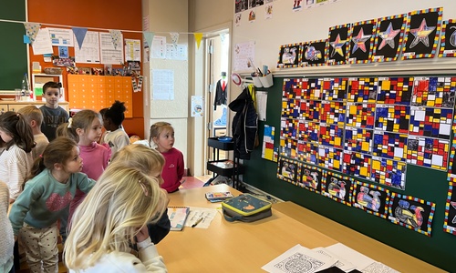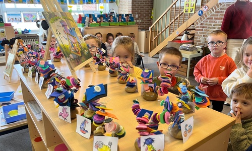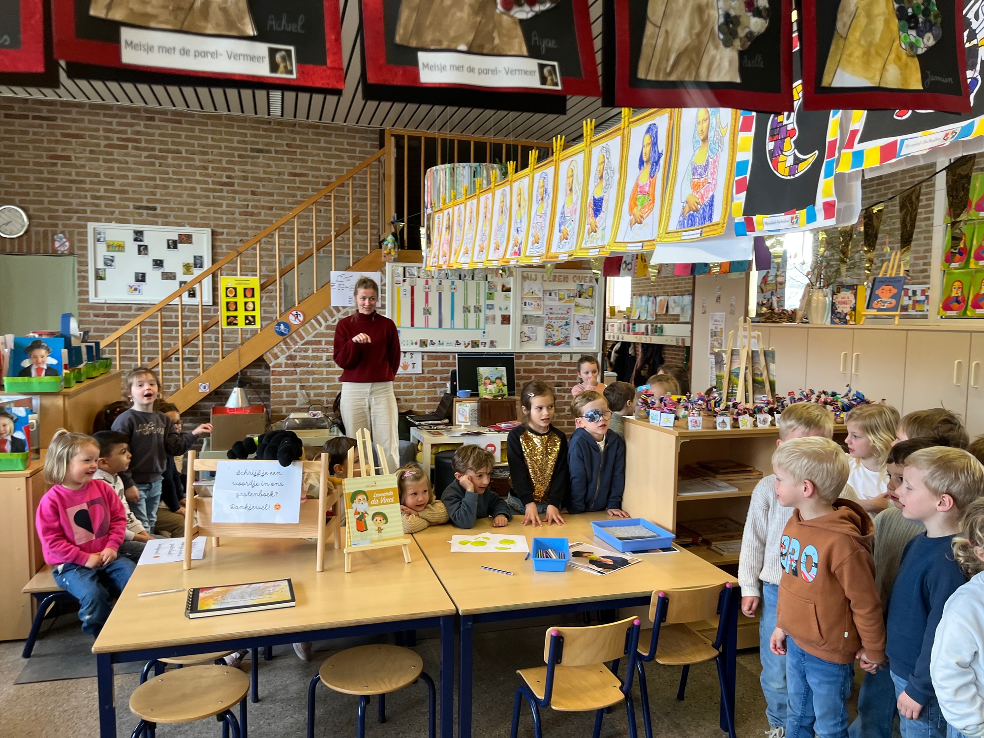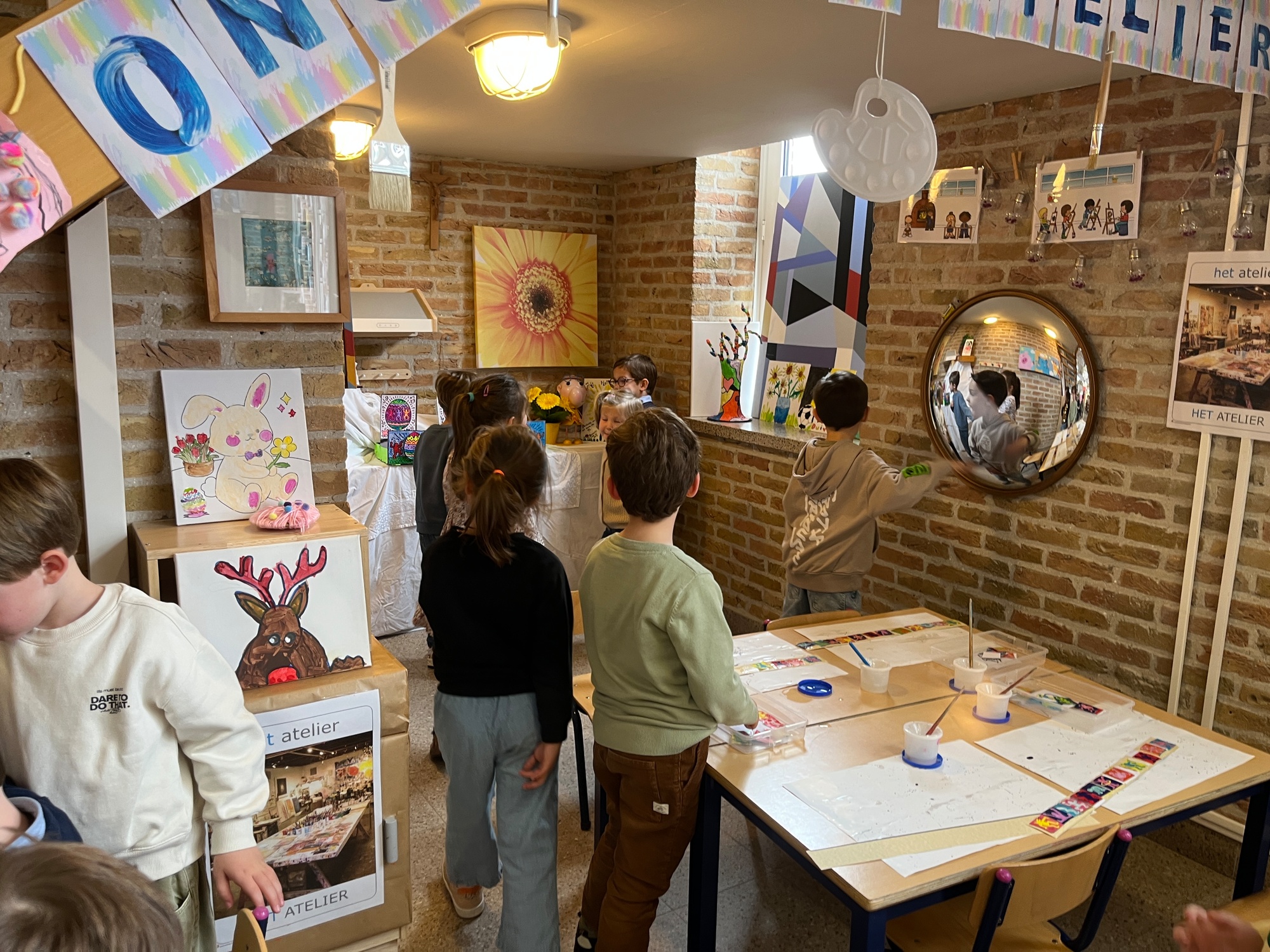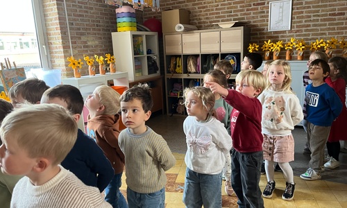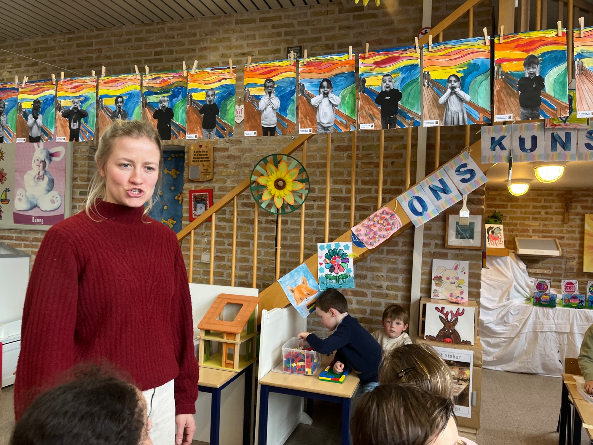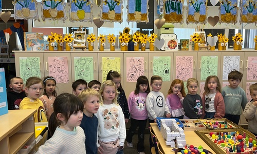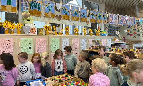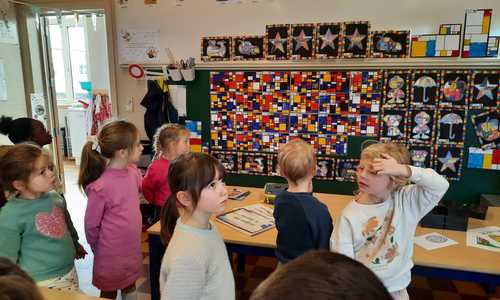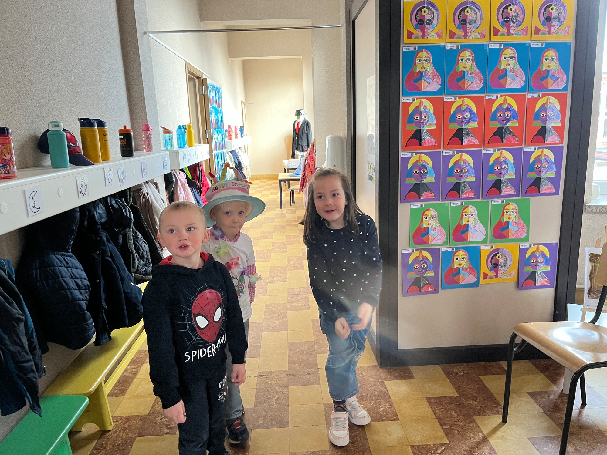 2KA: DE KUNSTENAARS VAN DE TWEEDE KLEUTERKLAS GINGEN OOK EENS BIJ ELKAAR OP BEZOEK.