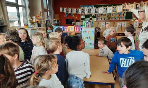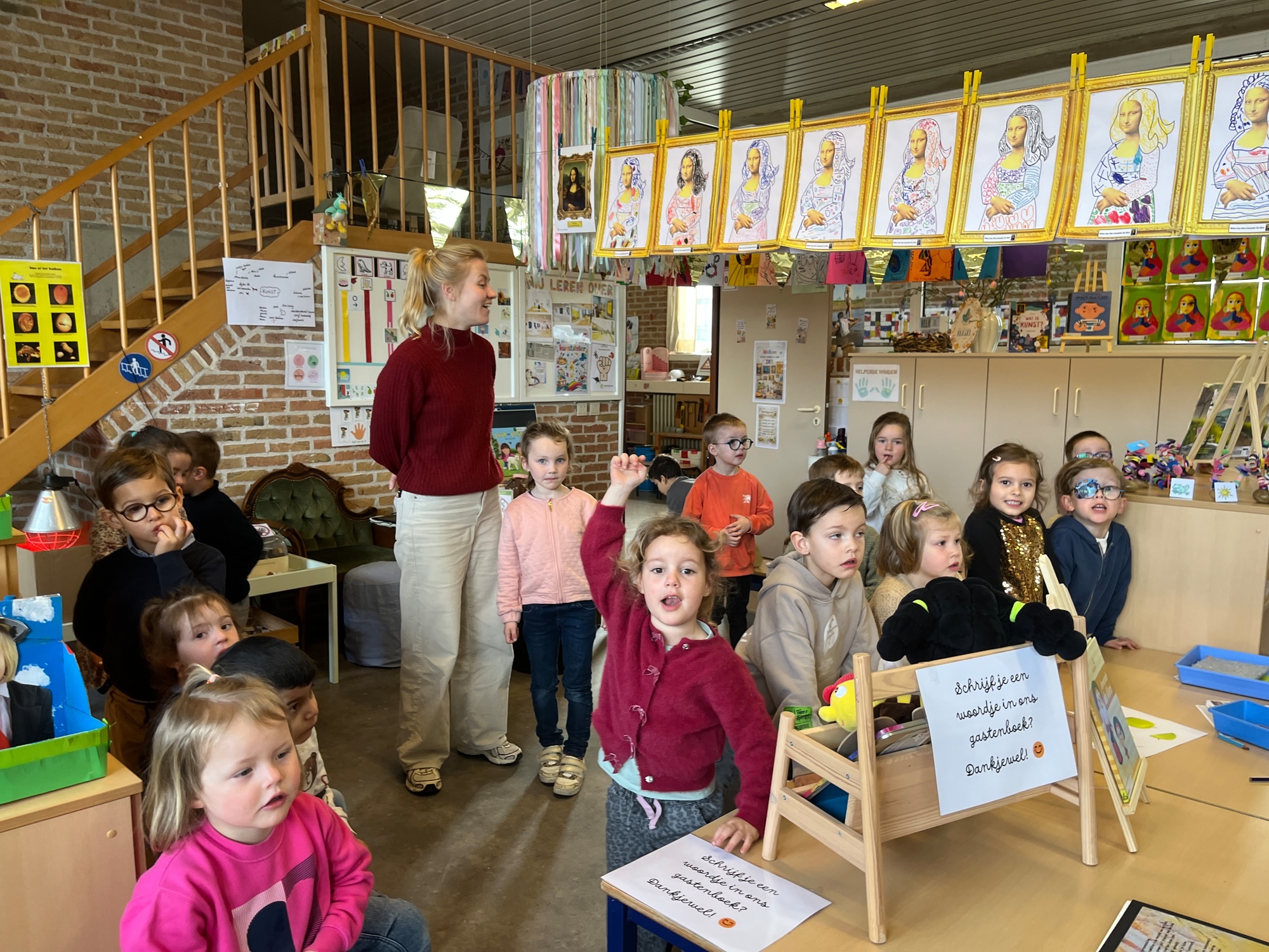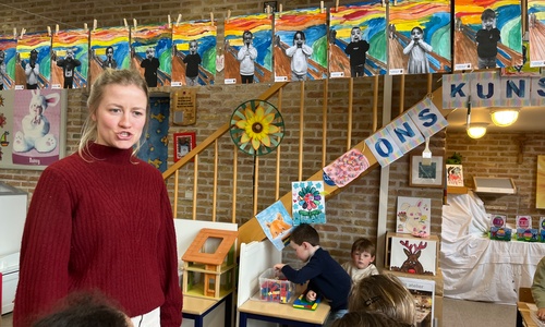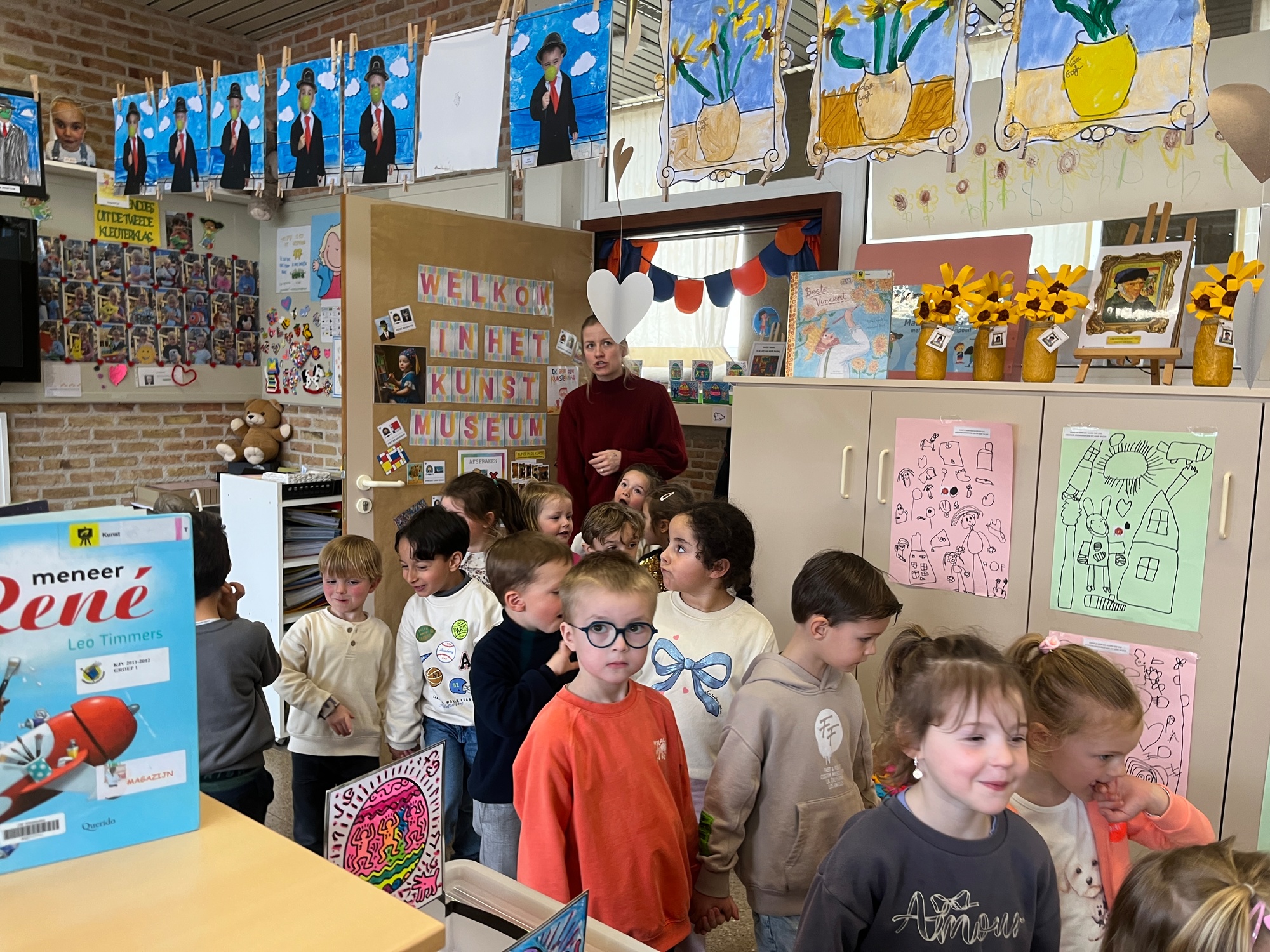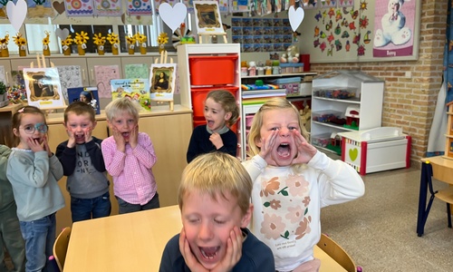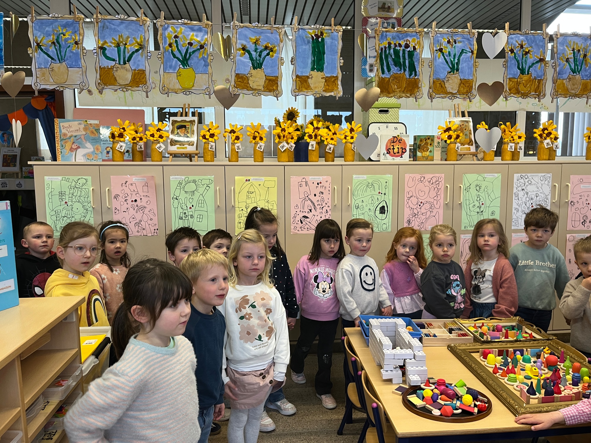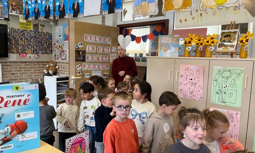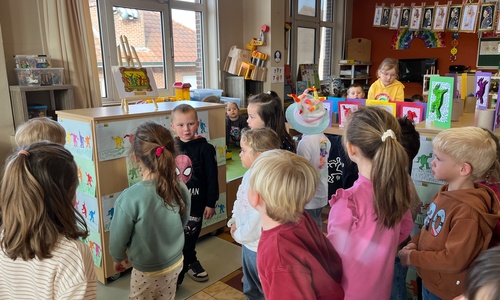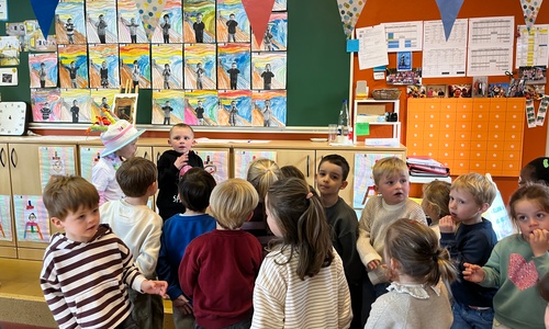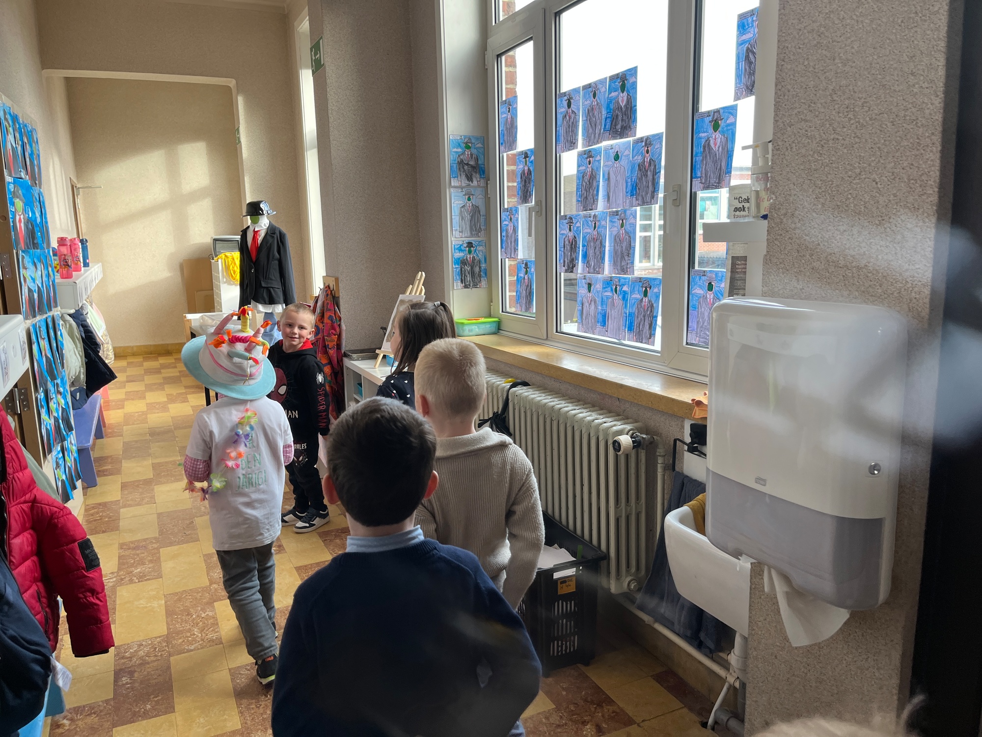2KA: DE KUNSTENAARS VAN DE TWEEDE KLEUTERKLAS GINGEN OOK EENS BIJ ELKAAR OP BEZOEK.