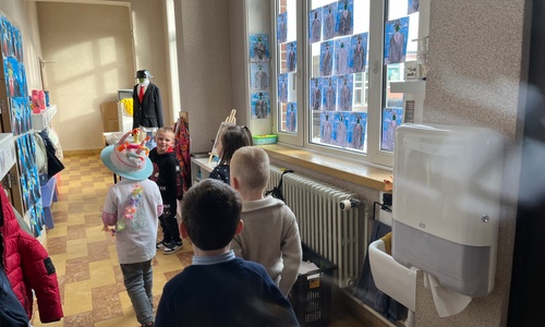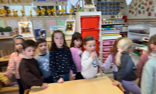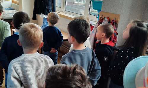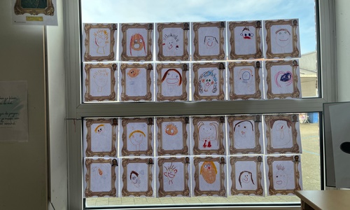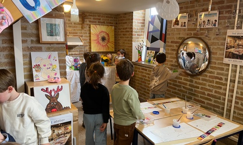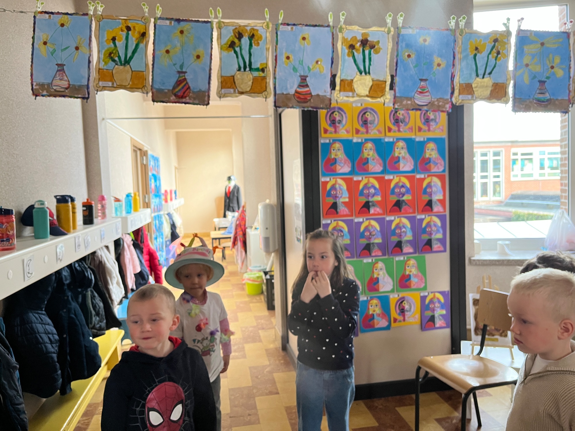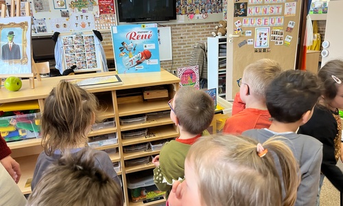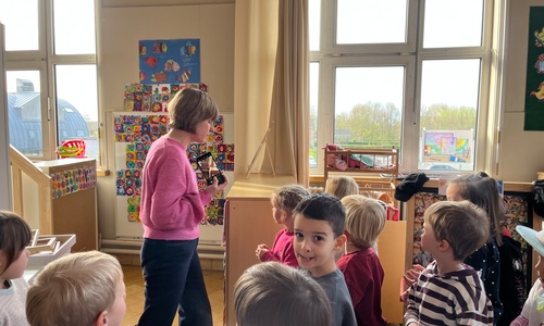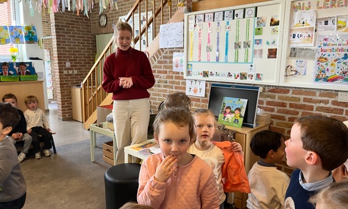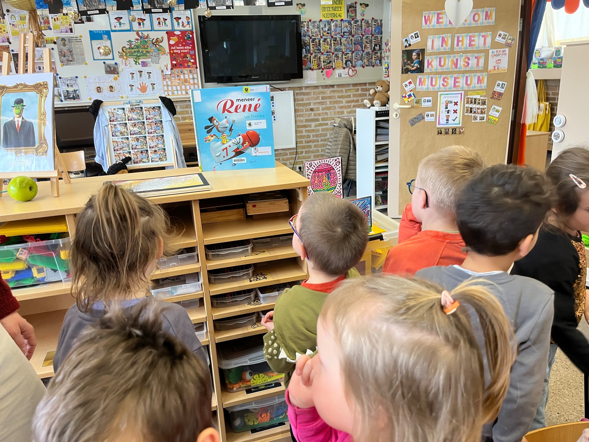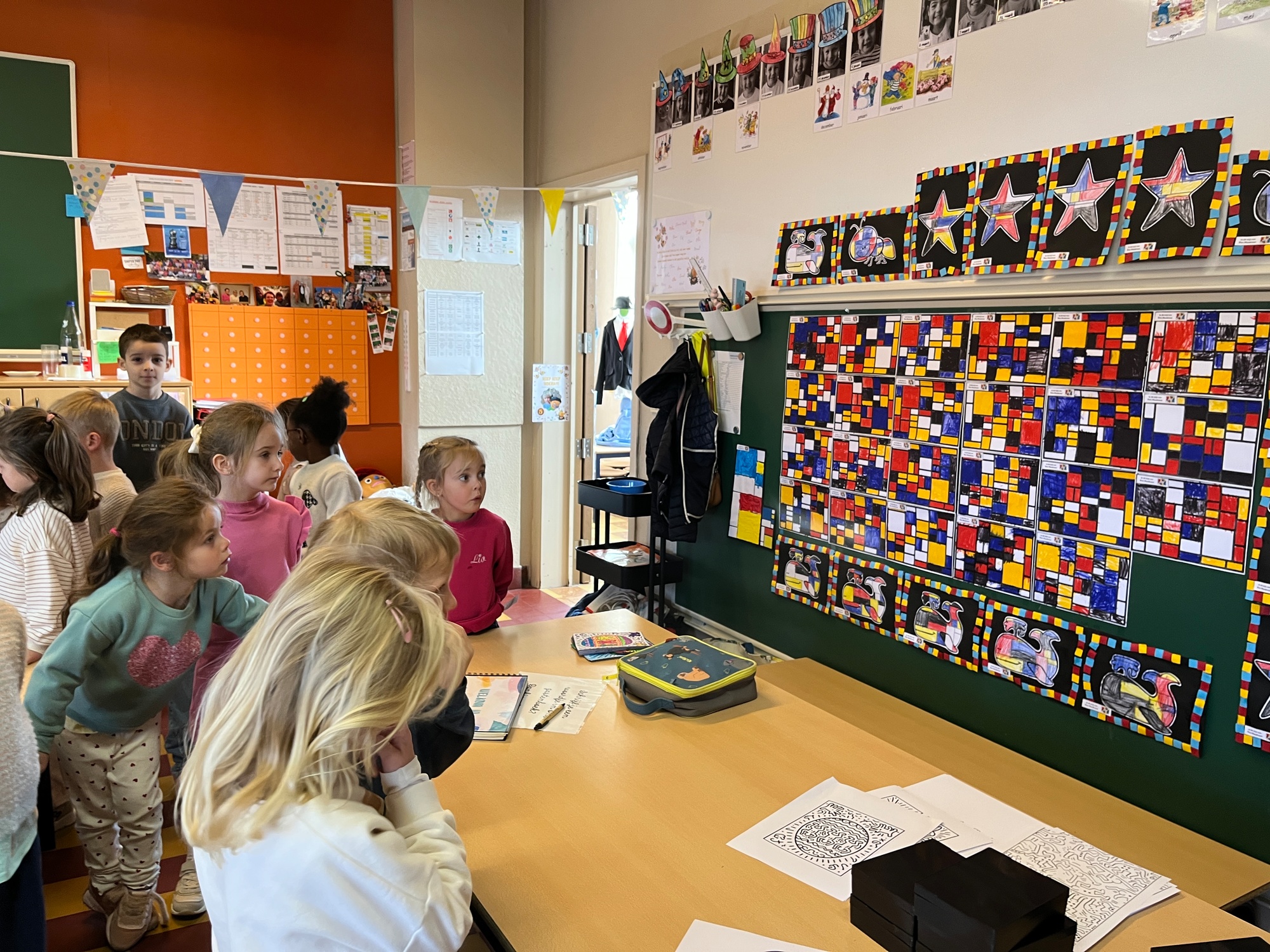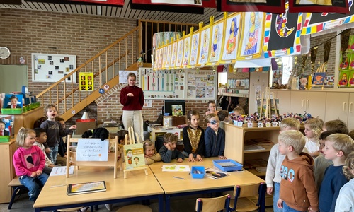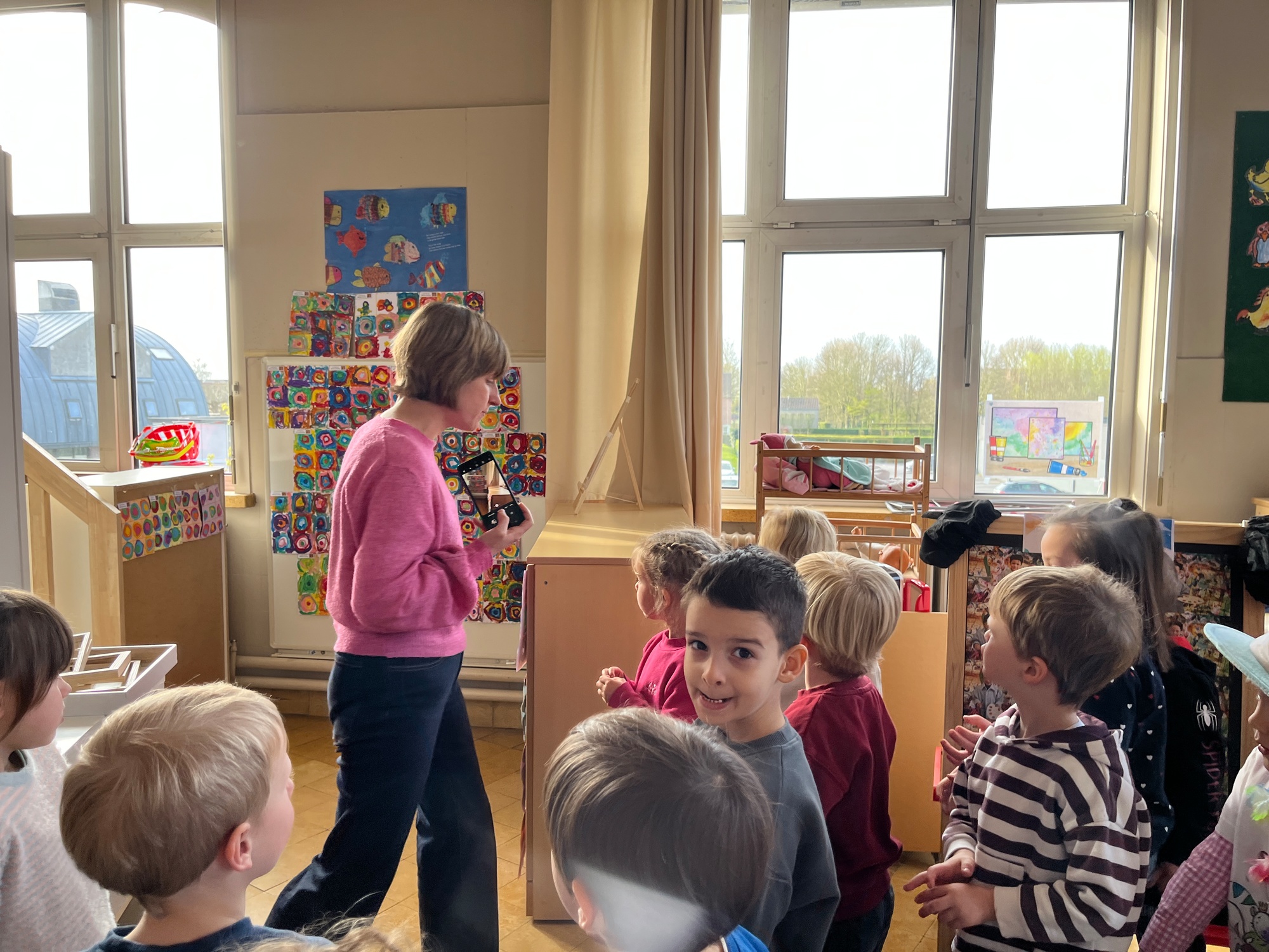 2KA: DE KUNSTENAARS VAN DE TWEEDE KLEUTERKLAS GINGEN OOK EENS BIJ ELKAAR OP BEZOEK.