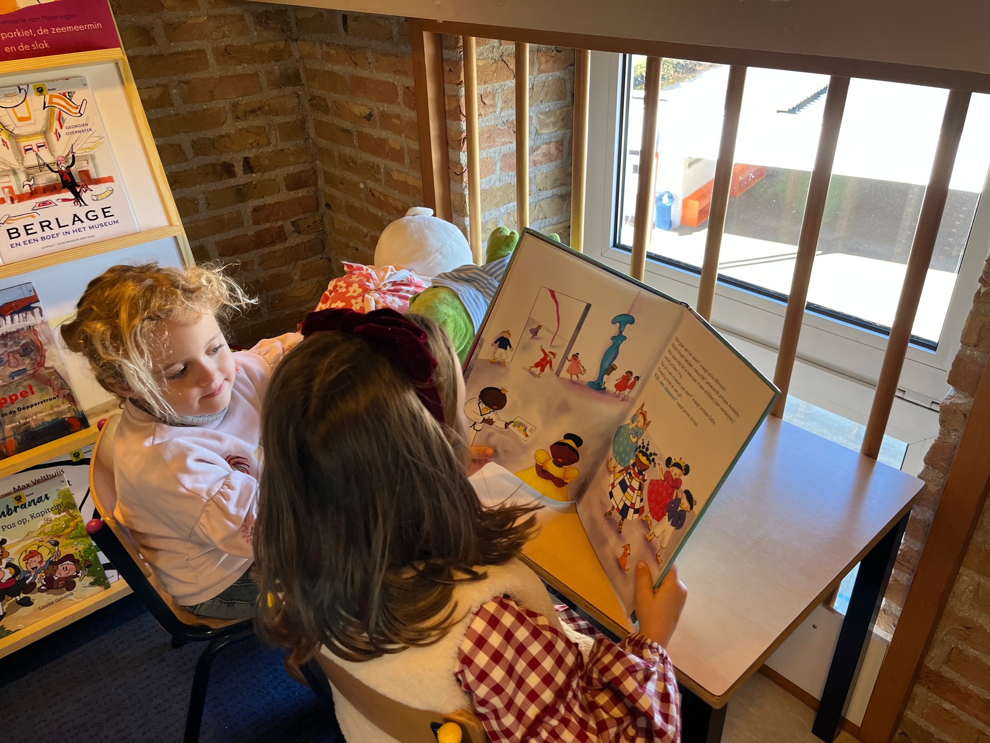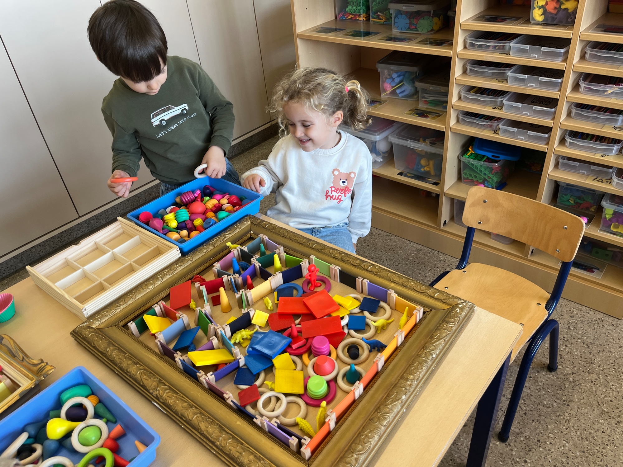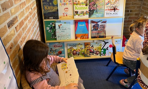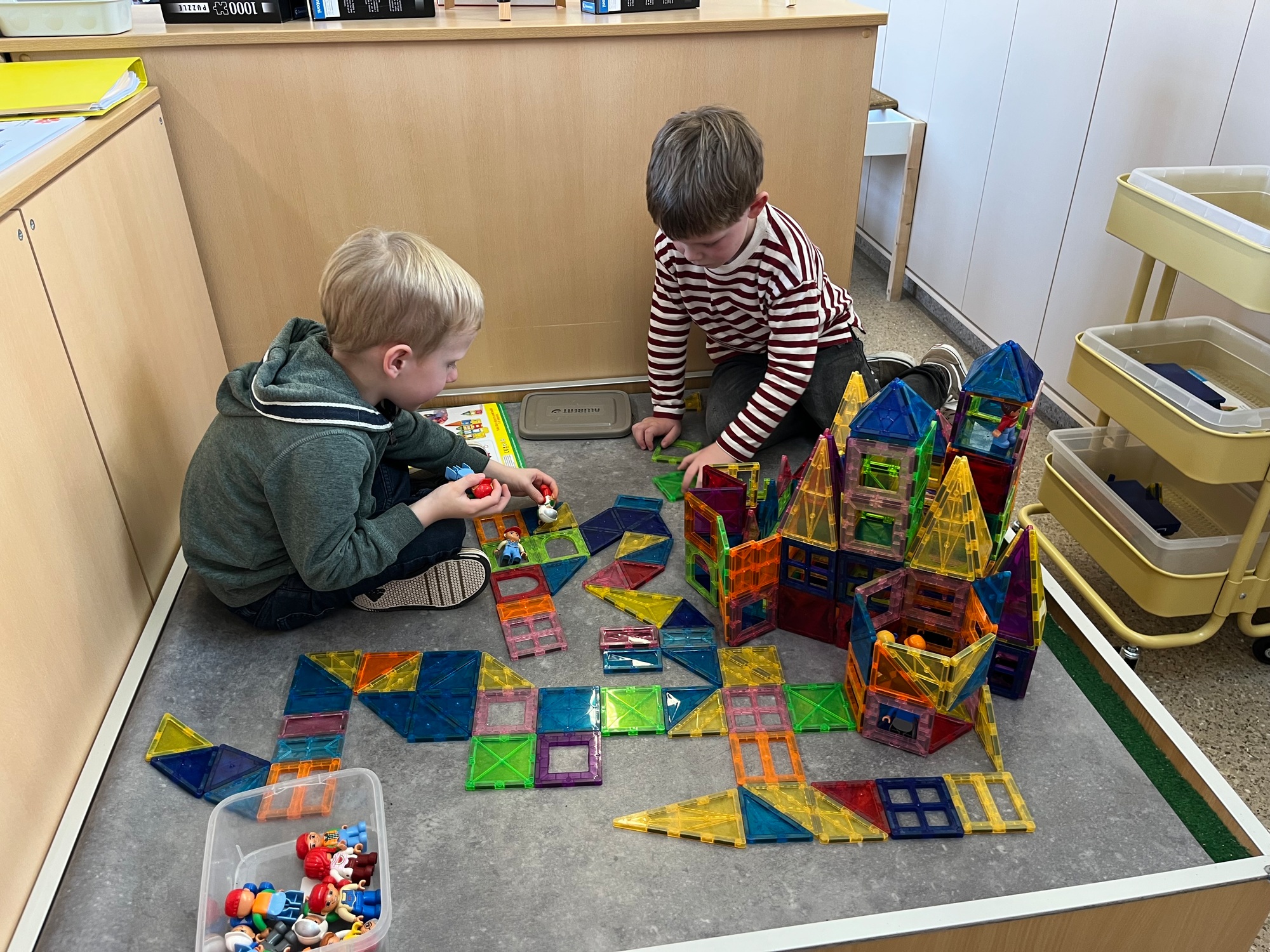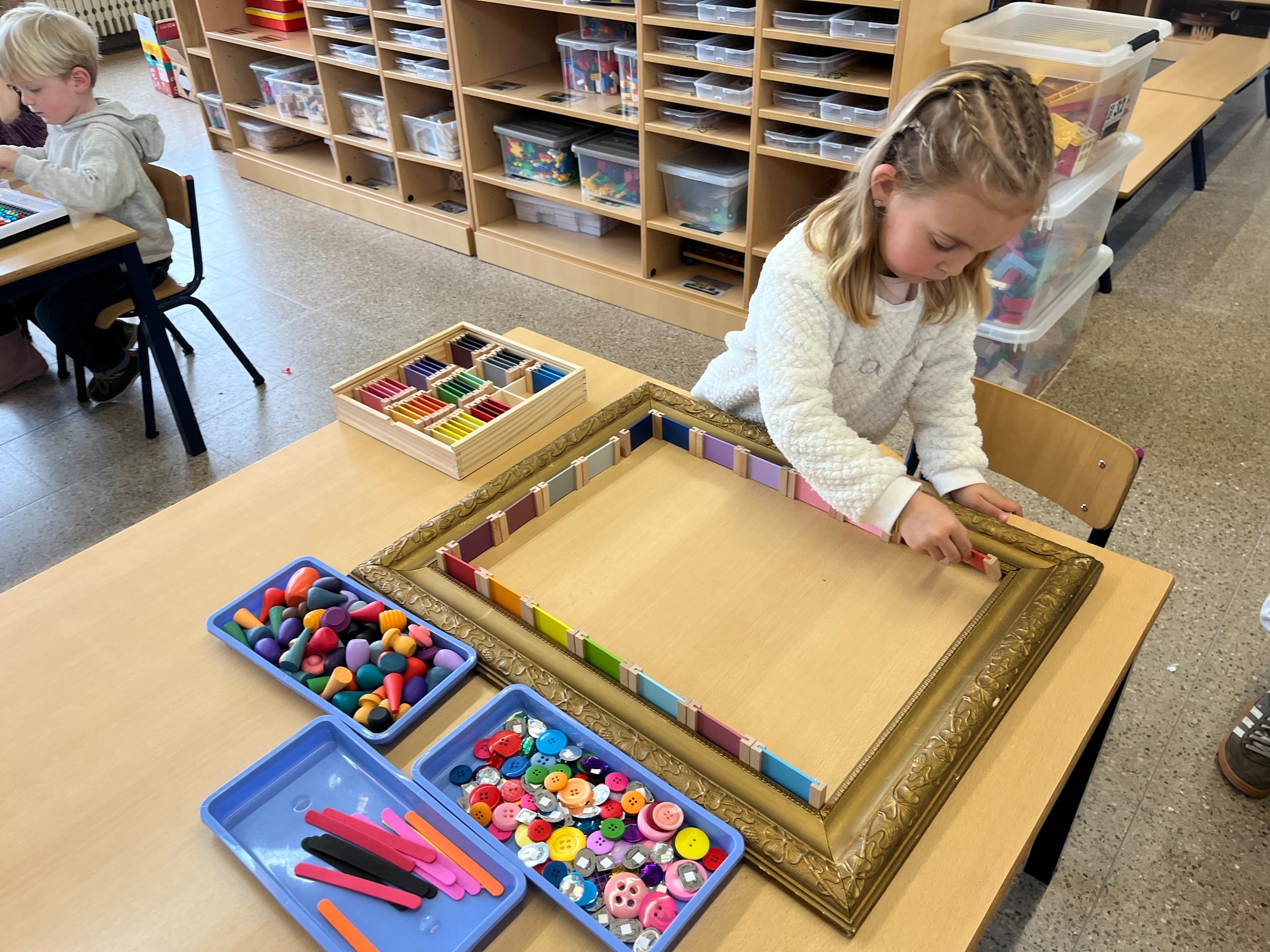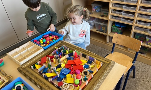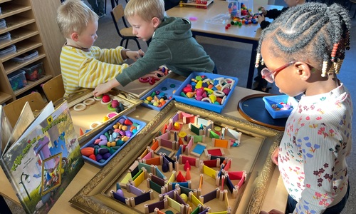 Kunstwerken maken met loose parts, museums bouwen met de magneten, kijken inboeken en vertellen aan elkaar in de boekenhoek