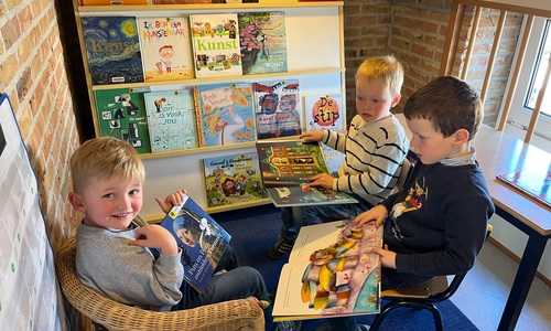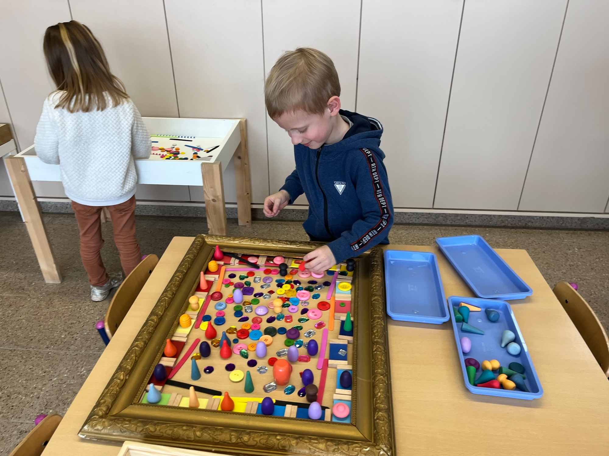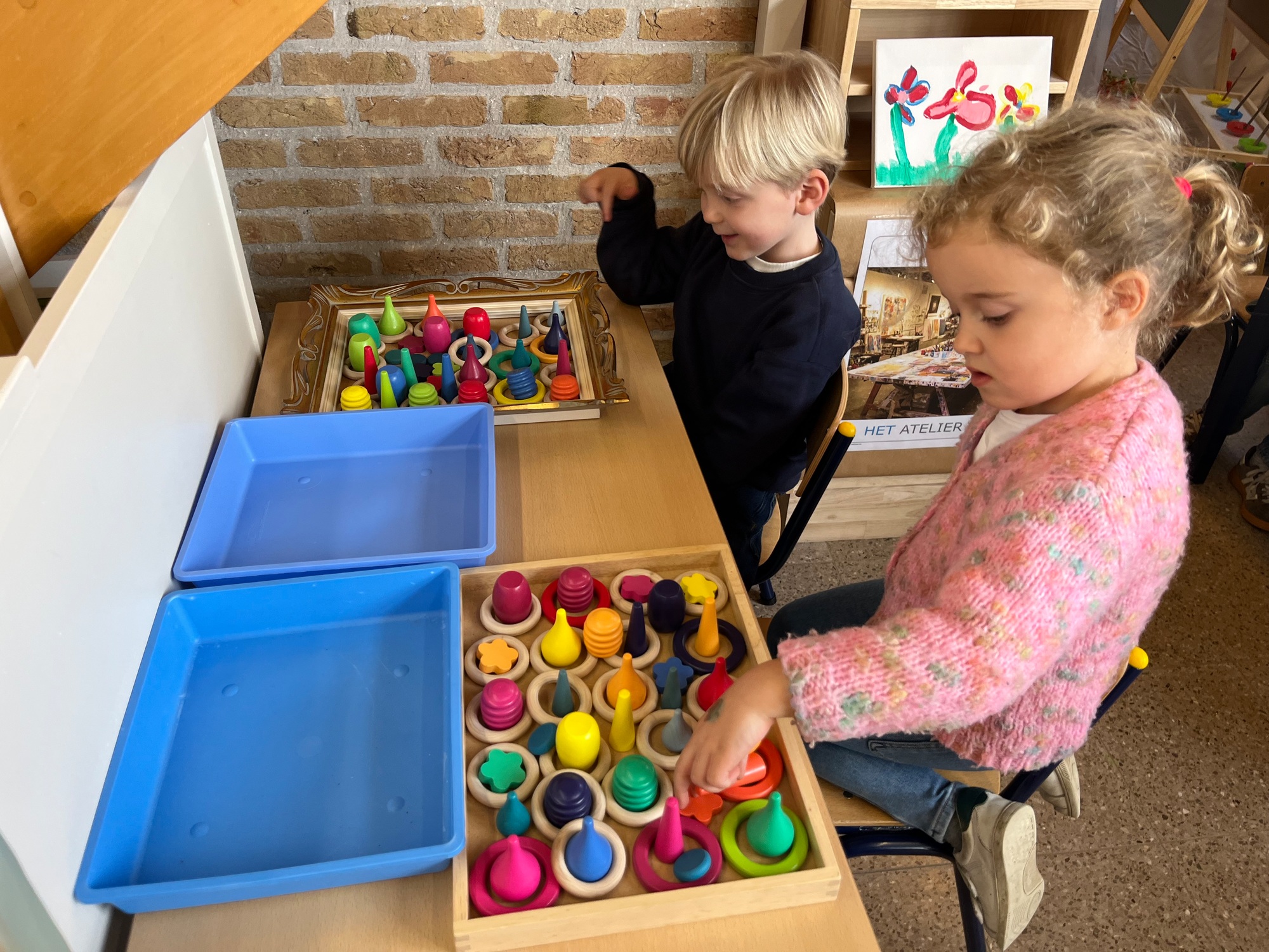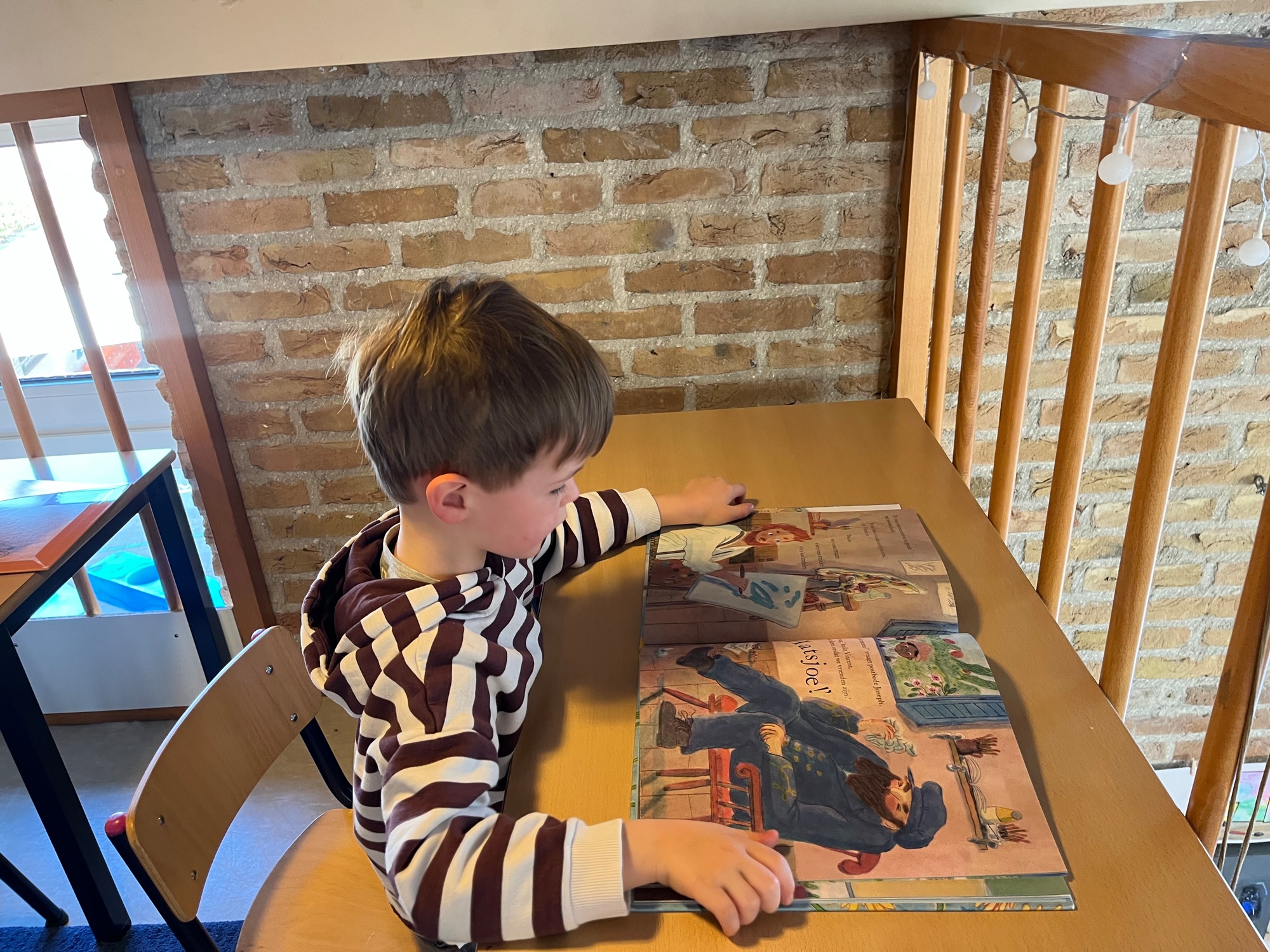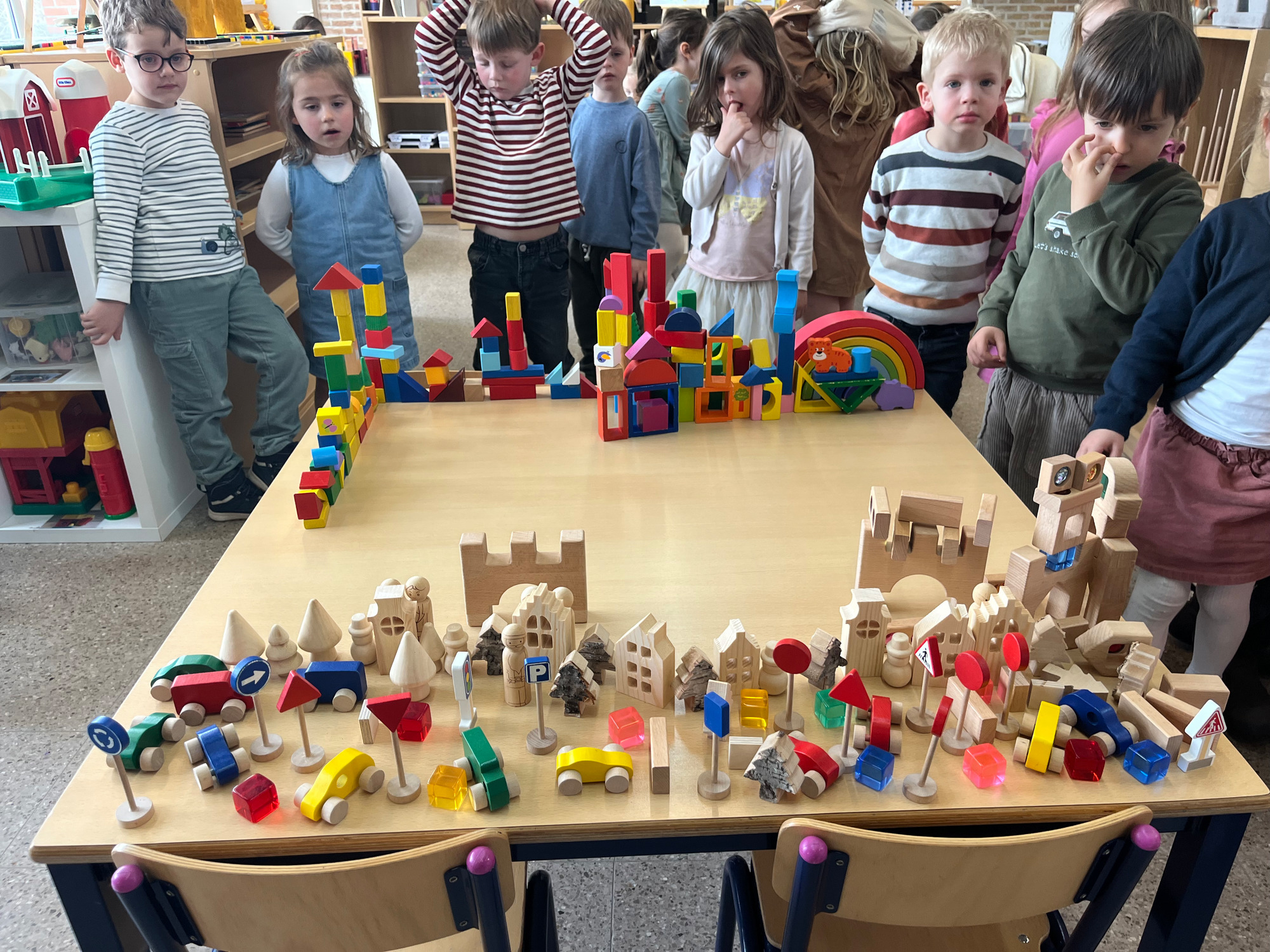 Kunstwerken maken met loose parts, museums bouwen met de magneten, kijken inboeken en vertellen aan elkaar in de boekenhoek