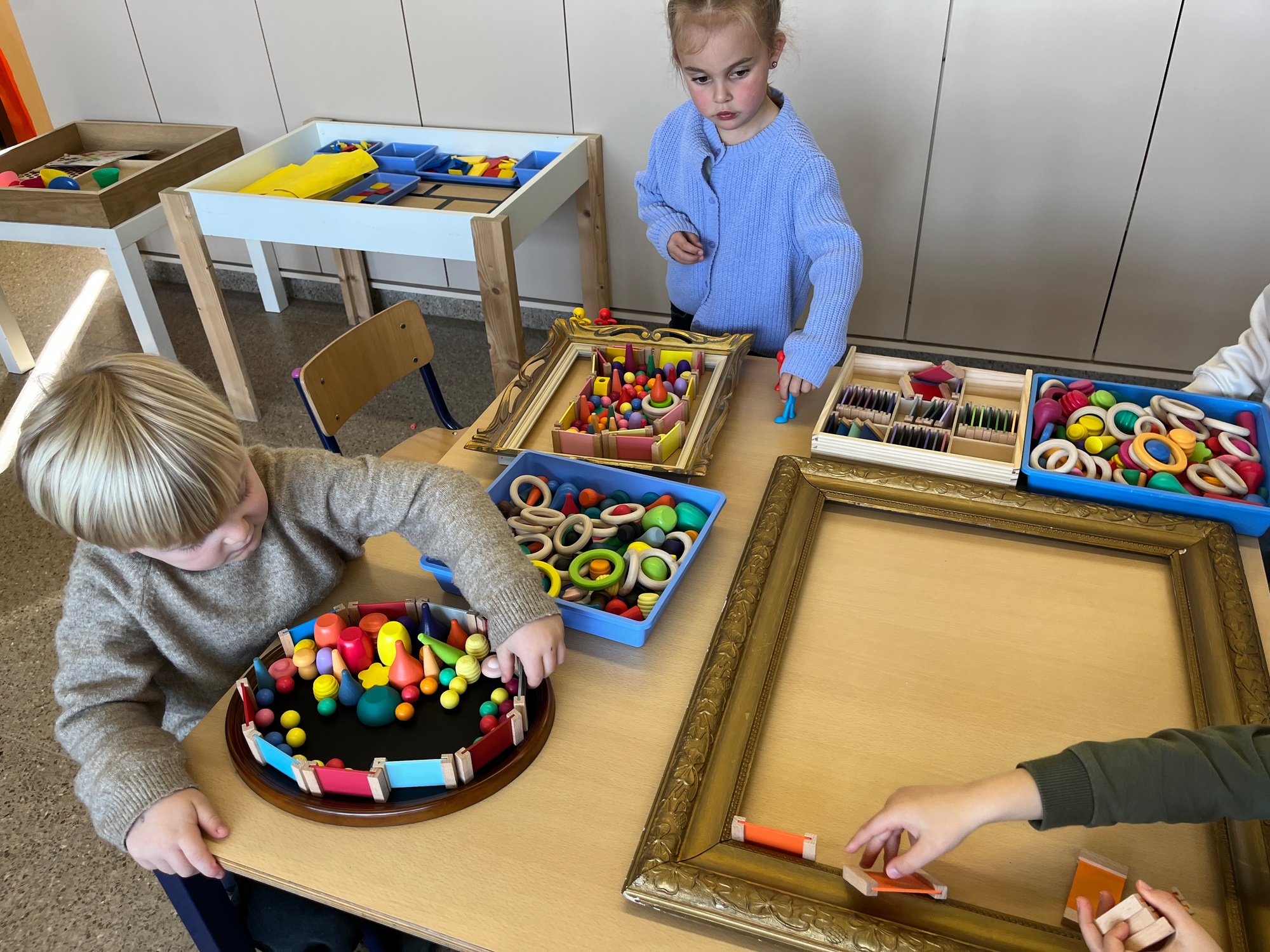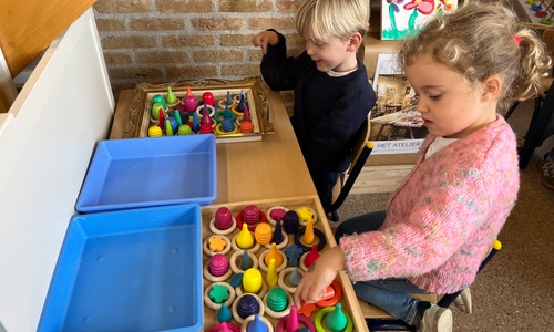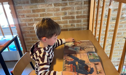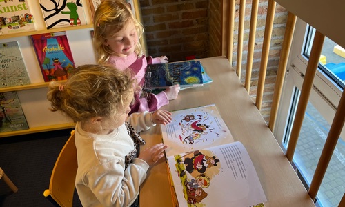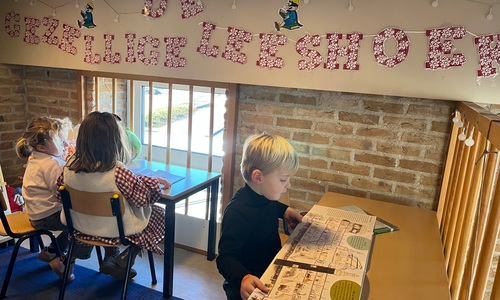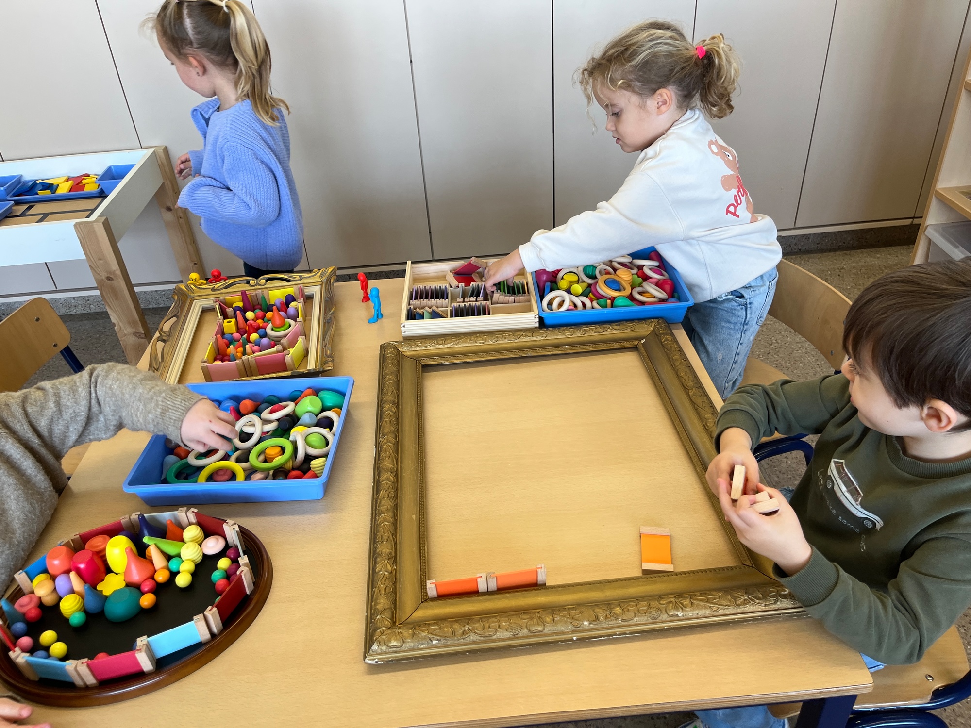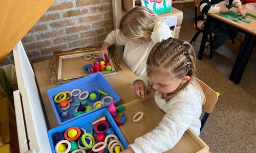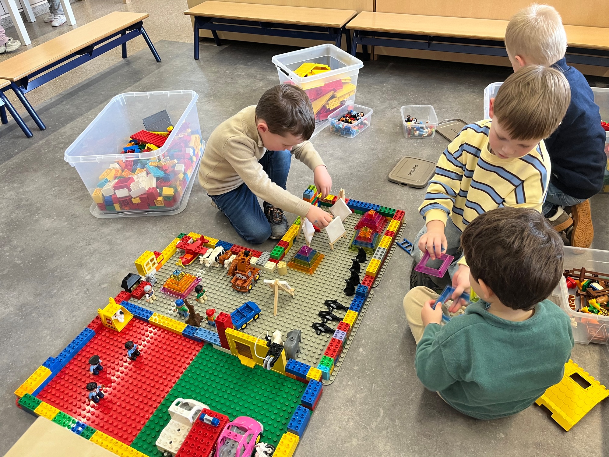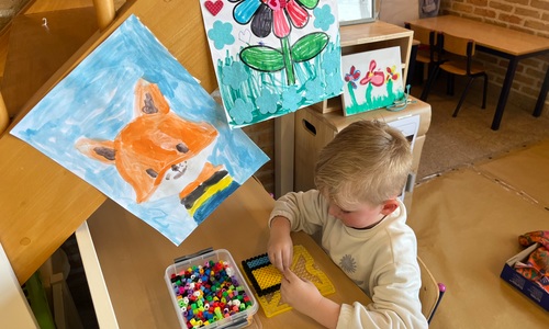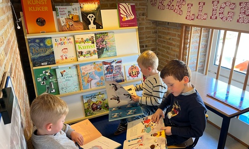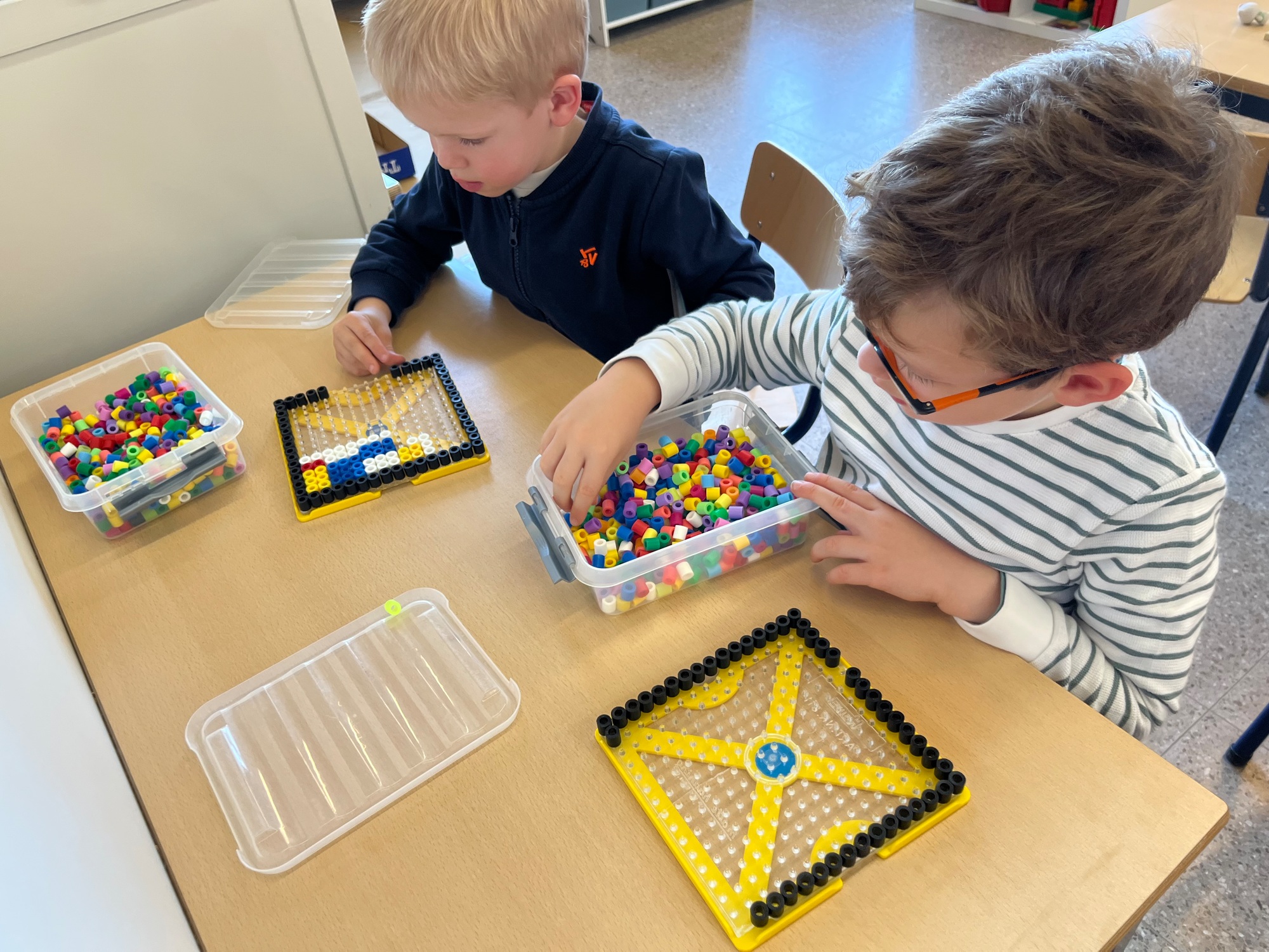 Kunstwerken maken met loose parts, museums bouwen met de magneten, kijken inboeken en vertellen aan elkaar in de boekenhoek