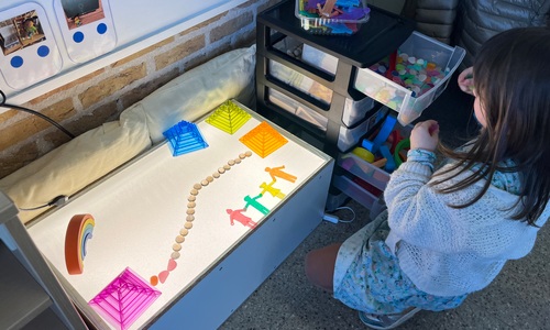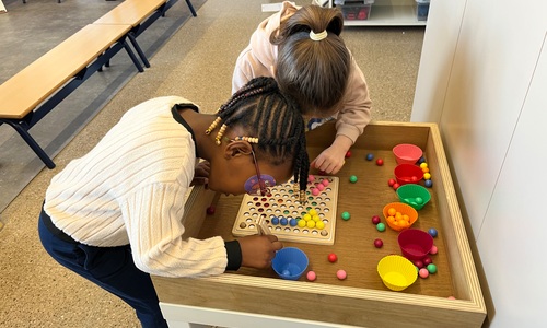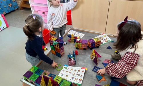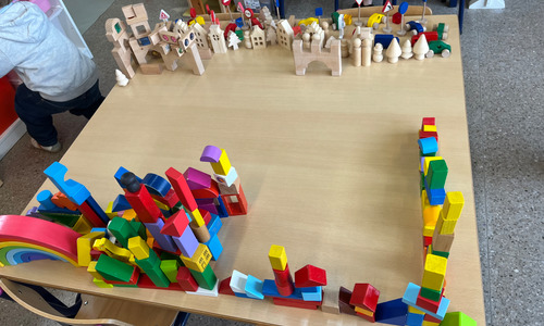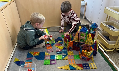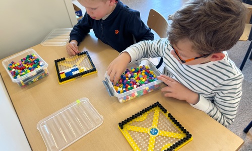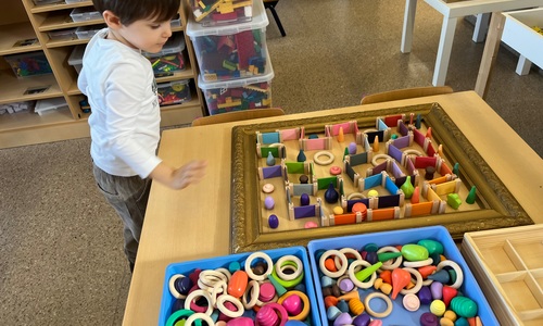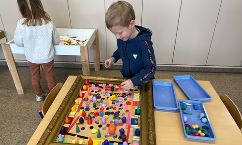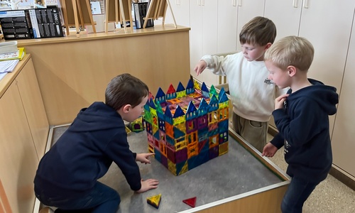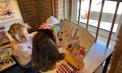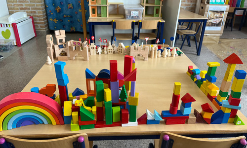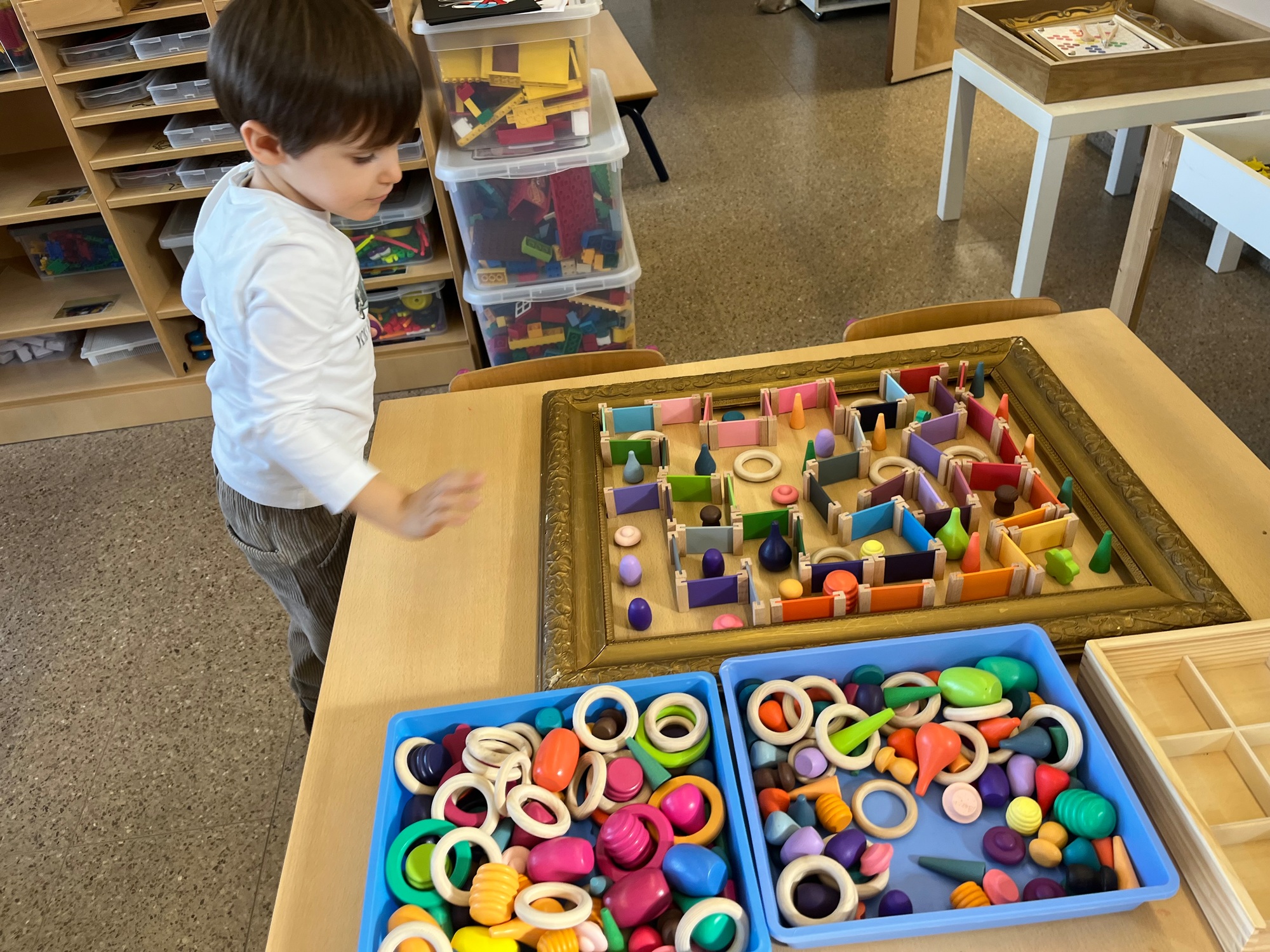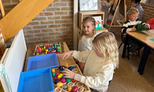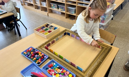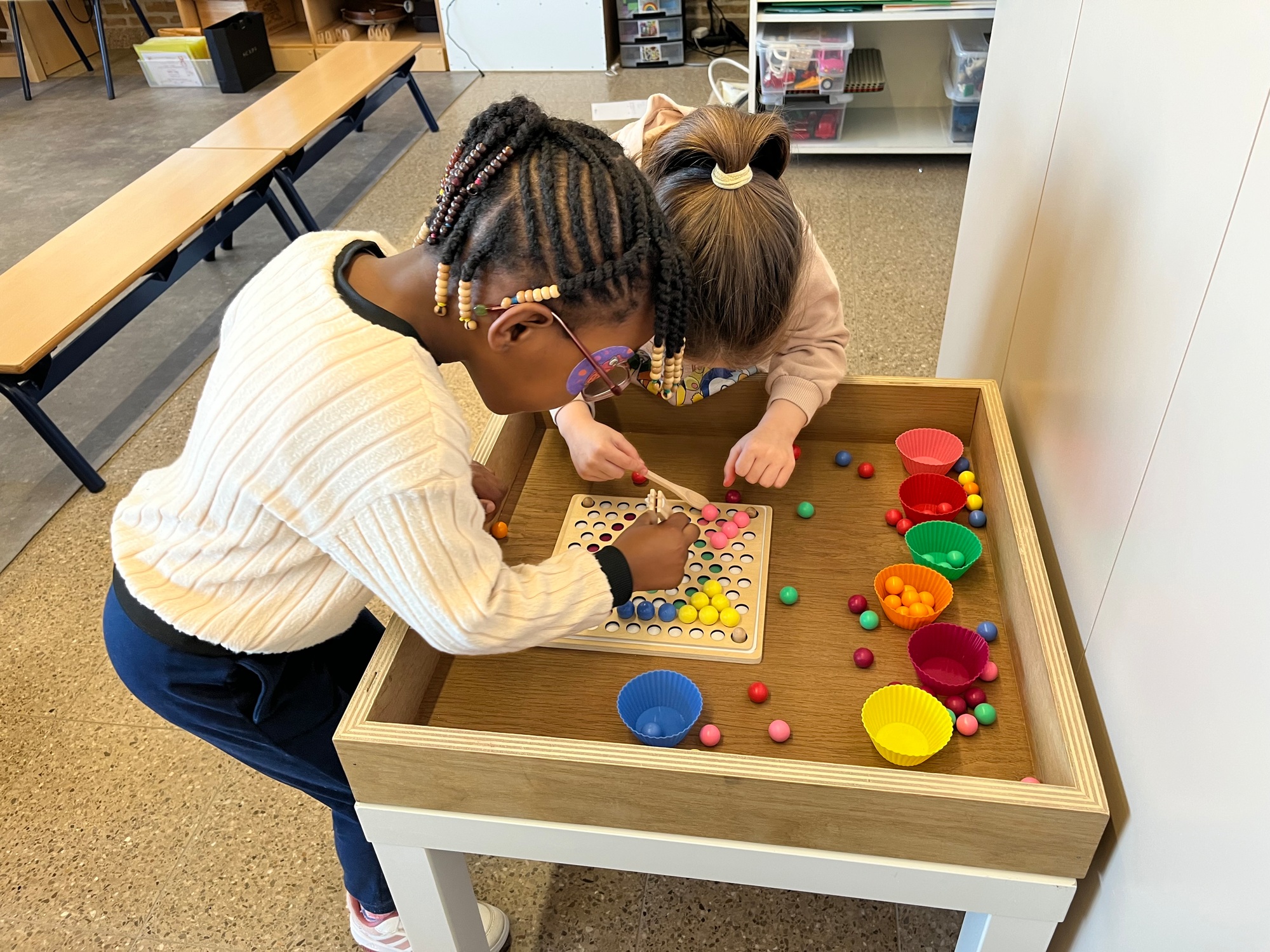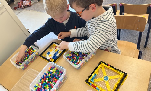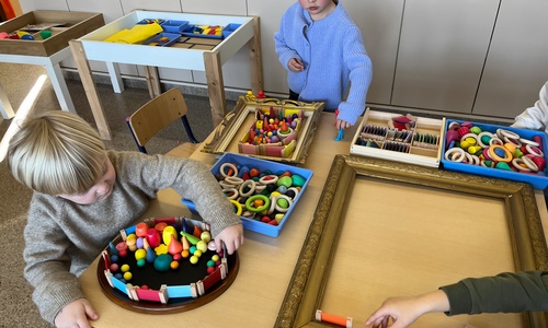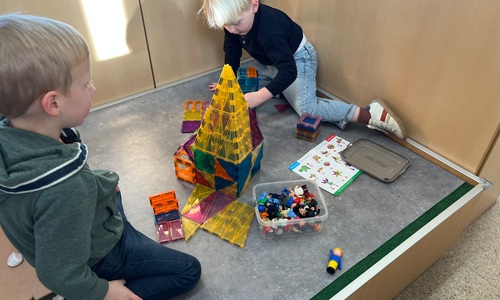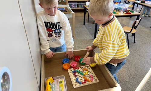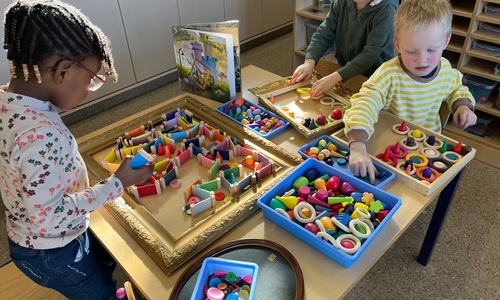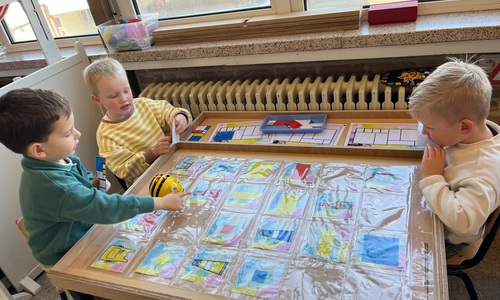 Kunstwerken maken met loose parts, museums bouwen met de magneten, kijken inboeken en vertellen aan elkaar in de boekenhoek