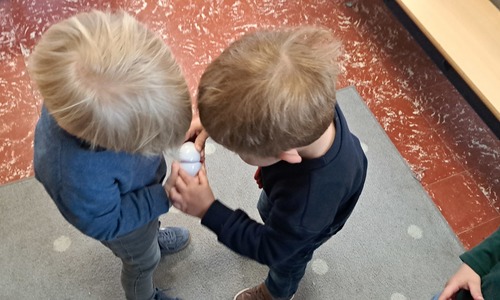 2KA: DE KUNSTENAARS VAN DE TWEEDE KLEUTERKLAS GINGEN OOK EENS BIJ ELKAAR OP BEZOEK.